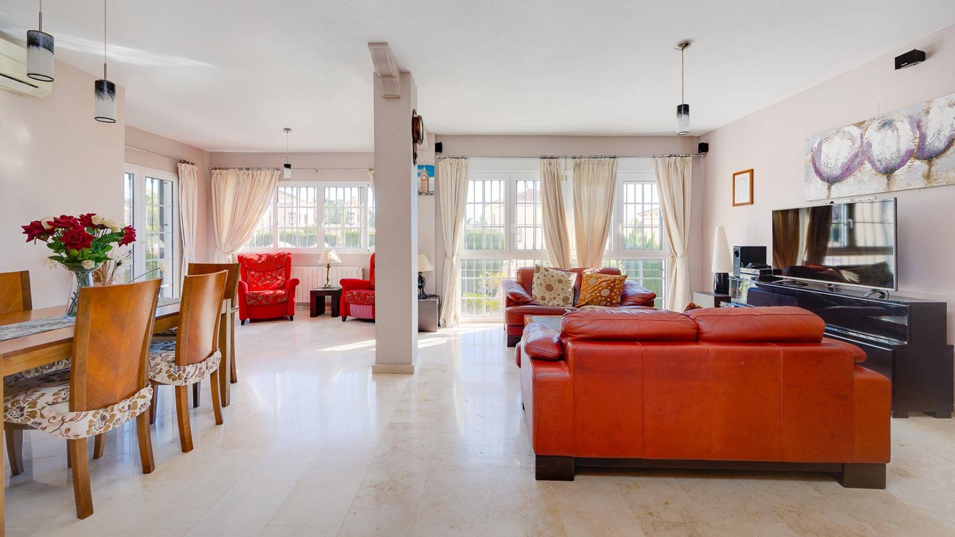 Magnifique villa individuelle de 3 chambres idéalement située, en première ligne du golf de Las Ramblas , à Orihuela Costa (Alicante) . Un cadre paisible et naturel, idéal pour les amateurs de golf et de style de vie méditerranéen , à quelques minutes des plages et de toutes les commodités. La maison, située sur un spacieux terrain privé de 424 m² , offre un agencement fonctionnel comprenant 3 chambres , une salle de bain complète, des toilettes invités, une cuisine séparée , un grand salon et une salle à manger. À l'extérieur, elle dispose d'un magnifique jardin privé avec piscine et parking. La villa est vendue meublée , équipée de la climatisation et prête à emménager, ce qui en fait une opportunité idéale à la fois comme résidence permanente ou comme résidence secondaire sur la Costa Blanca . Son emplacement sur le parcours de golf de Las Ramblas garantit un cadre privilégié, en pleine nature et à proximité de prestigieux parcours de golf tels que Villamartín Golf, Campoamor Golf et Las Colinas Golf . De plus, les plages d'Orihuela Costa , le centre commercial La Zenia Boulevard et un large éventail de restaurants, boutiques et lieux de divertissement sont accessibles en quelques minutes en voiture. Les aéroports d'Alicante et de Murcie-Corvera sont à moins d'une heure, offrant d'excellentes connexions avec le reste de l'Europe. Cette villa allie emplacement, intimité et confort dans un cadre incomparable. Contactez-nous dès aujourd'hui pour organiser une visite.