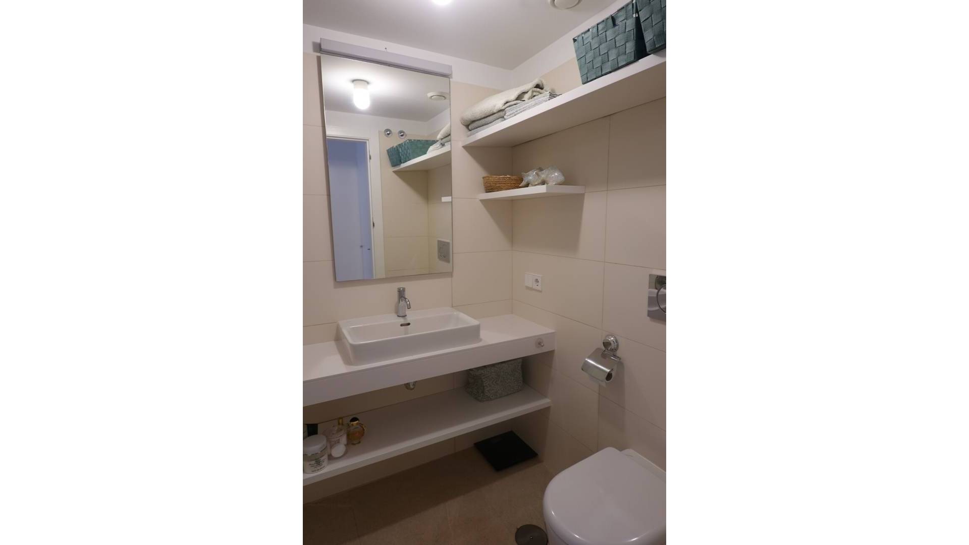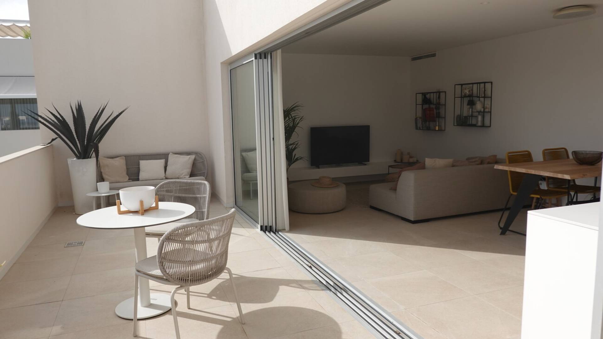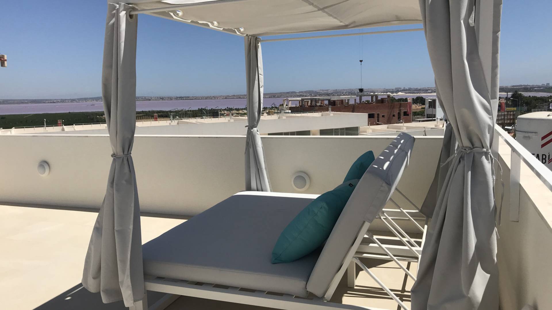 Vous recherchez une maison moderne, prête à emménager, avec une vue unique ?Dans le quartier résidentiel calme de Los Balcones, vous trouverez ce magnifique appartement d'angle qui allie à la perfection design, confort et emplacement.Depuis l'appartement, vous profiterez d'une vue imprenable sur le célèbre lac salé de Torrevieja - chaque jour, vous aurez l'impression d'être en vacances.L'appartement d'angle dispose de 3 chambres et 2 salles de bains, est prêt à emménager et offre, grâce aux terrasses à l'avant et à l'arrière, le soleil du matin et du soir.Le joyau absolu ?Une impressionnante terrasse sur le toit de 74 m² avec une cuisine extérieure entièrement équipée - l'endroit idéal pour se détendre, recevoir des amis ou profiter du coucher de soleil.Les autres atouts sont la baie vitrée coulissante (5 mètres) du salon, la place de parking et le débarras.La résidence est entourée de verdure et dispose d'une grande piscine commune. Vous pourrez vous y détendre complètement, entouré du meilleur du soleil espagnol.À quelques minutes à pied, vous trouverez des magasins tels que Mercadona, Aldi et Carrefour Express, ainsi que des restaurants agréables.Le centre commercial La Zenia Boulevard se trouve à quelques minutes en voiture, et les plages de Torrevieja et Orihuela Costa sont accessibles en moins d'un quart d'heure.Grâce à la proximité de l'autoroute (sortie Torrevieja Sud), vous êtes également très bien relié au reste de la Costa Blanca.