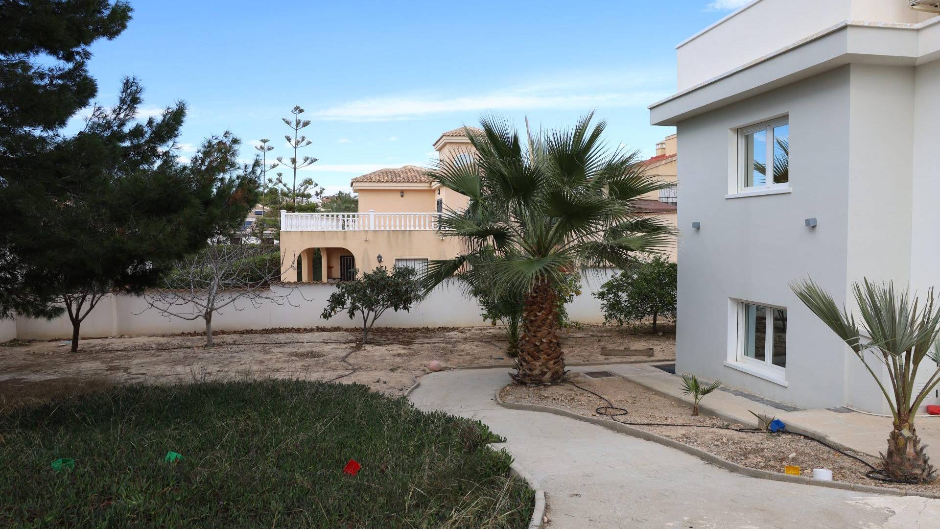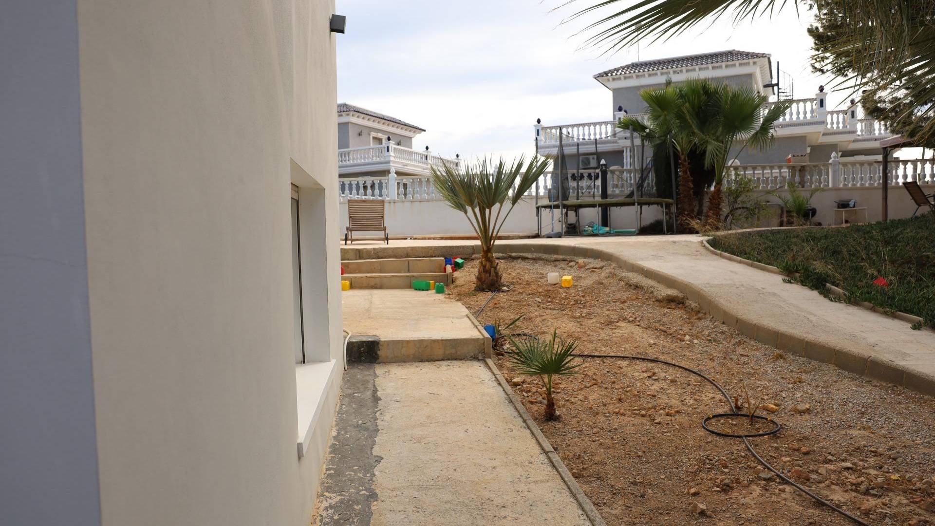 Chalet avec piscine et 5 chambres à Ciudad Quesada (Rojales) Chalet spacieux et lumineux, dont la rénovation principale a débuté en 2020 et s’est achevée en 2024 (document Final de obra disponible). Situé dans la très prisée urbanisation Ciudad Quesada à Rojales. La propriété se trouve sur un terrain d’environ 1 100 m² (800 m² enregistrés). Niveau principal : – 5 chambres, y compris la chambre principale avec dressing et salle de bain en suite ; – 3 salles de bain et 1 WC invité ; – Salon lumineux avec cheminée ; – Cuisine ouverte entièrement équipée. Sous-sol (semi-enterré) : – Grande pièce, débarras, WC invité et branchements pour cuisine — idéal pour créer des appartements d’invités avec accès indépendant ; – Actuellement utilisé comme salon de massage et coiffure avec entrée séparée. Espace extérieur : – Piscine privée, la terrasse est à remettre en état ; – Solarium sur le toit ; – Terrain permettant jardin, zone détente et abri pour voiture ; – Portail d’accès et possibilité de stationner près de la maison. La villa est en excellent état et offre de nombreuses possibilités de personnalisation. Emplacement : – À seulement 6 km de la plage ; – Zone calme et verdoyante avec commerces, cafés, parc et lagune à proximité. PRINCIPAUX ATOUTS : – Rénovation complète achevée en 2024 – Grande villa lumineuse avec 5 chambres – Chambre principale avec dressing et salle de bain – Potentiel d’appartements indépendants pour invités – Piscine privée et solarium – Parking près de la maison, possibilité de carport – Quartier calme proche nature et urbanisation – Nouveaux climatiseurs dans toutes les pièces Parfait pour une vie familiale, des vacances ou un investissement — espace, qualité et emplacement réunis. Contactez-nous pour plus d’informations ou pour organiser une visite — service multilingue disponible.
