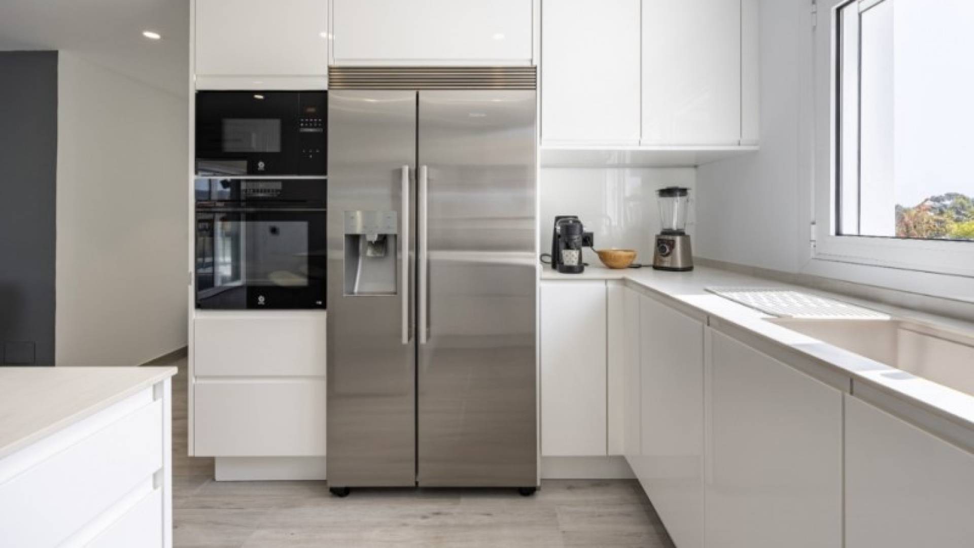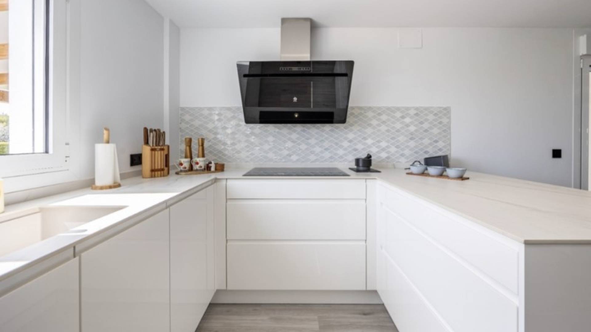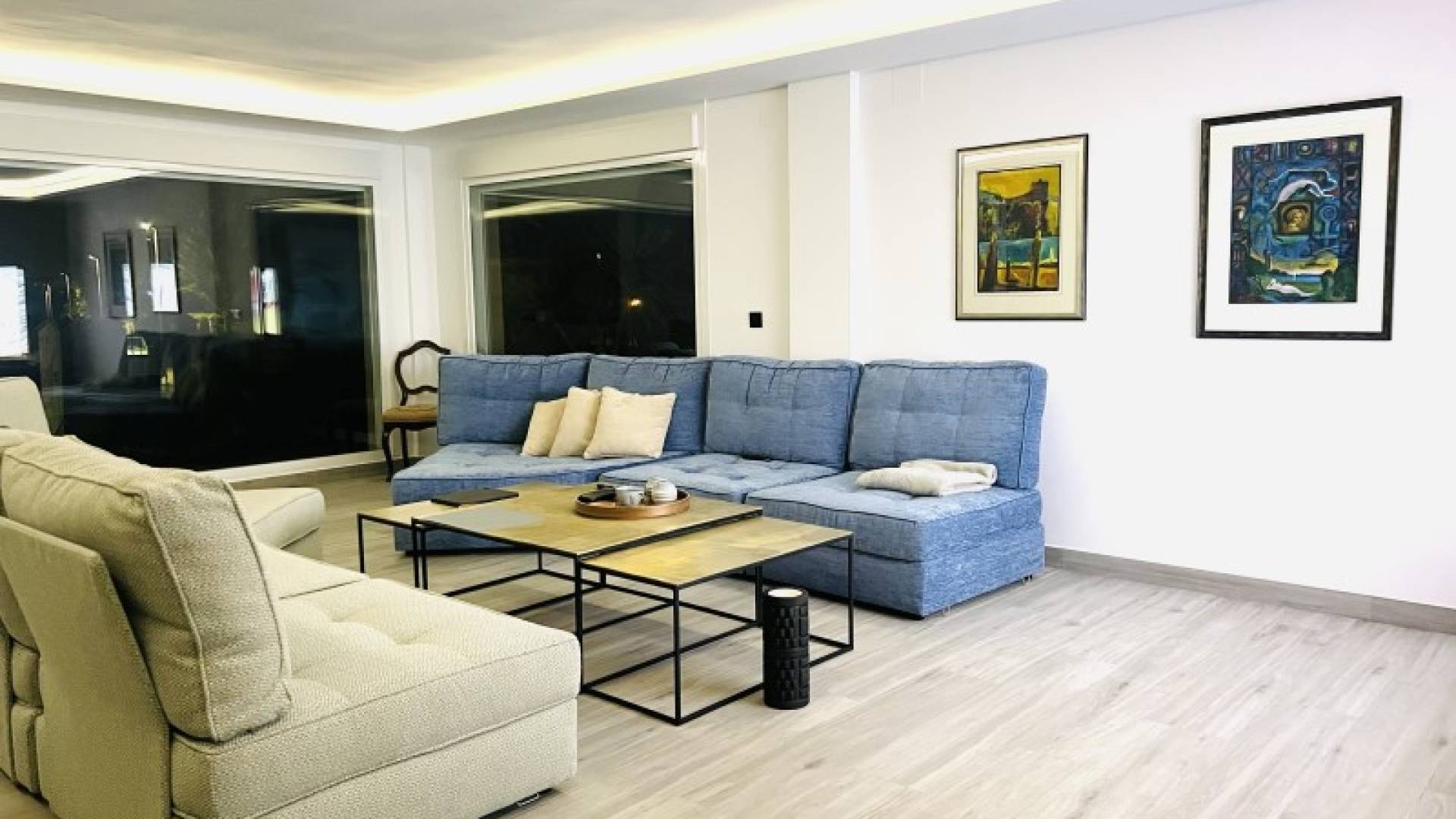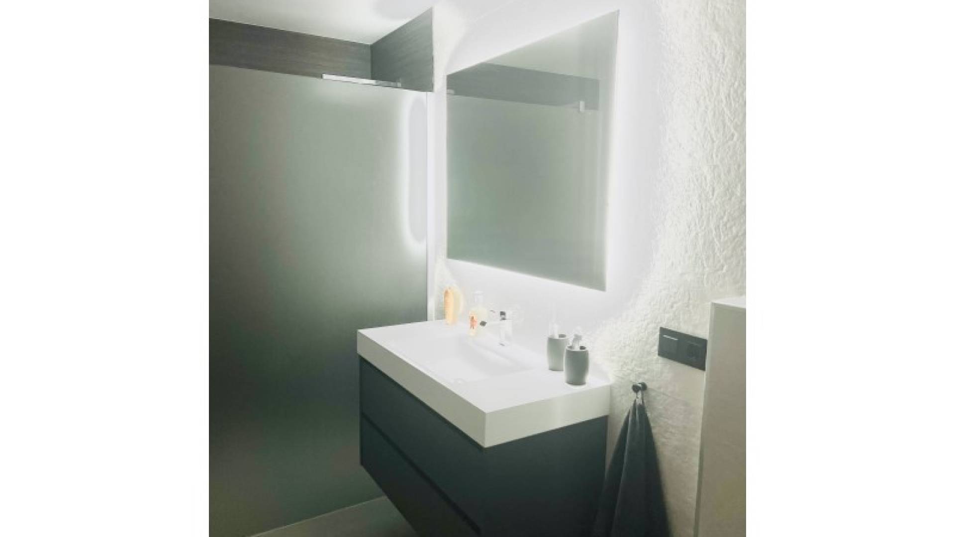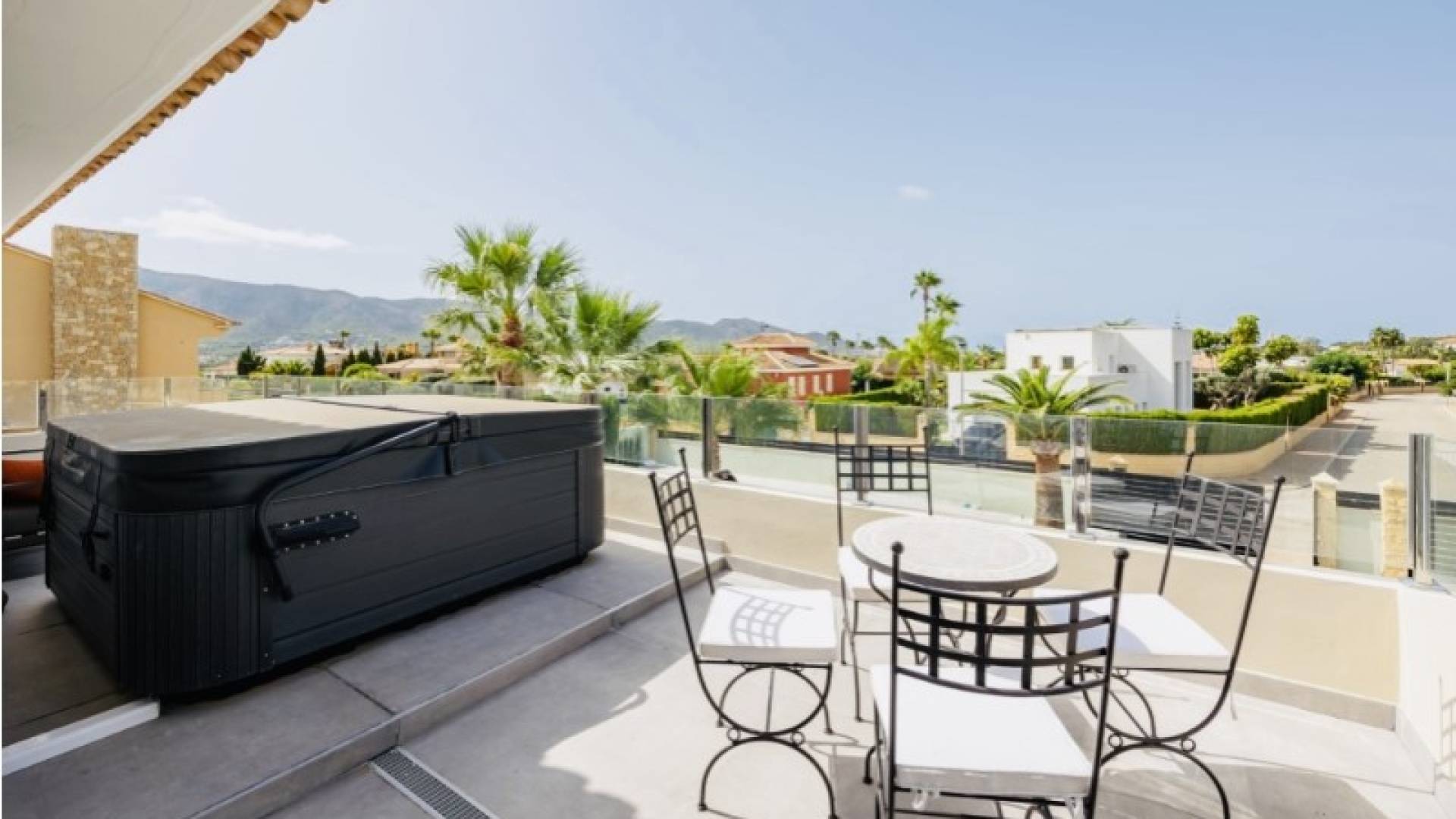 Stunning Modern Villa in Alfaz del PiKey Features:Prime Location: Nestled in the tranquil area of Pueblo-Urbanzaciones in Alfaz del Pi, just 10 minutes from the beach and 15 minutes from Benidorm, with easy access to local amenities and attractions.Spacious and Bright Living Areas: Boasting a built area of 347 m² on a 1,250 m² plot, this villa offers an open-plan, modern design that seamlessly connects the living, dining, and kitchen areas.Functional Layout: The property is spread over two floors and a basement. The main floor features a spacious living-dining room with large windows, a high-end open kitchen, one bedroom/office, and a full bathroom. The upper floor comprises three bedrooms, two of which are en-suite, with private terrace access.Spectacular Outdoor Area: A large 11x5 metre swimming pool with night lighting, landscaped gardens, a terrace with an outdoor dining area, a pergola with seating space, and an outdoor kitchen with a barbecue. Additionally, there is a pétanque court with LED lighting and a mini putting green for golf enthusiasts.Comfort and Sustainability: Equipped with underfloor heating, air conditioning, filtered drinking water, electric blinds, double glazing, a security system, and solar panels for energy efficiency and self-sufficiency.Garage and Storage: The basement includes a garage for one car, ample storage space, and direct access to the house.Detailed Description:This villa, fully renovated in 2023, combines modern design with comfort and functionality. On the main floor, large windows allow for plenty of natural light, while integrated LED lighting creates a cosy ambiance in the evening. The high-end open kitchen, complete with a central island, is perfect for daily living and entertaining.The upper floor offers privacy and exclusivity, with spacious bedrooms. The master bedroom stands out with its walk-in wardrobe, en-suite bathroom, and access to a private terrace featuring a jacuzzi and stunning views of Benidorm's skyline.The exterior is designed to embrace the Mediterranean lifestyle, with numerous spaces to relax and entertain. From the illuminated pool to the games area, every detail has been carefully crafted for maximum enjoyment and comfort.This move-in ready property represents the best of Mediterranean living.Don't miss the opportunity to visit this exceptional villa! Contact us for more information or to arrange a viewing. ref:VIL_1