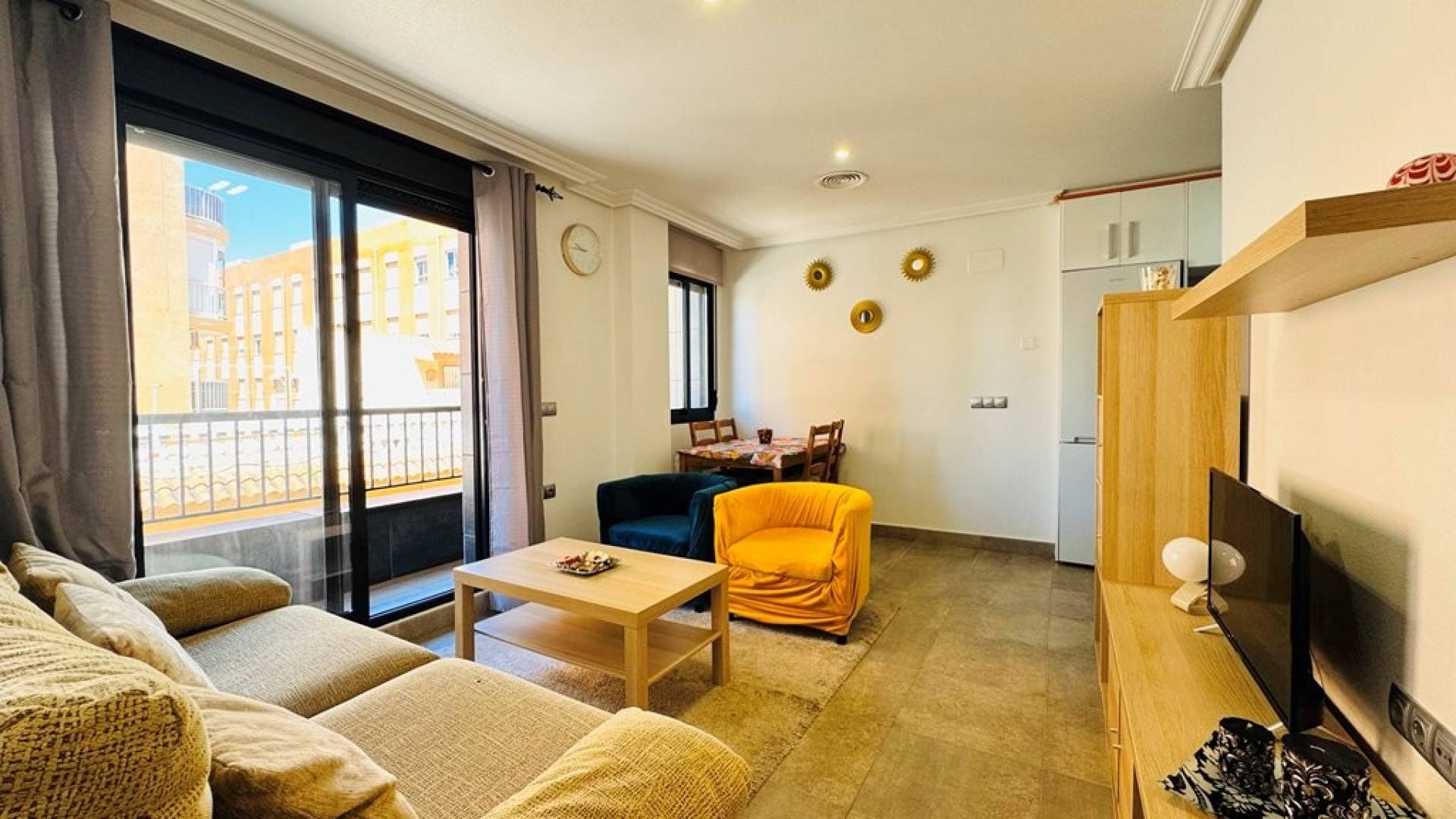 Cette maison est située à seulement 200 mètres de la plage de La Mata, au cœur de la ville.C'est un bâtiment moderne, construit en 2007 - 2008.Il a une superficie construite de 51 m2 répartis en un salon-salle à manger, une cuisine ouverte, 2 chambres et une salle de bain.Il dispose d'une terrasse extérieure de 5 m2 exposée ouest.Il est situé au 1er étage de l'immeuble. (Il y a un ascenseur)La maison est vendue meublée et en parfait état.Climatisation gainable dans toute la maison.Communauté : 300 € par anIBI : 184 €