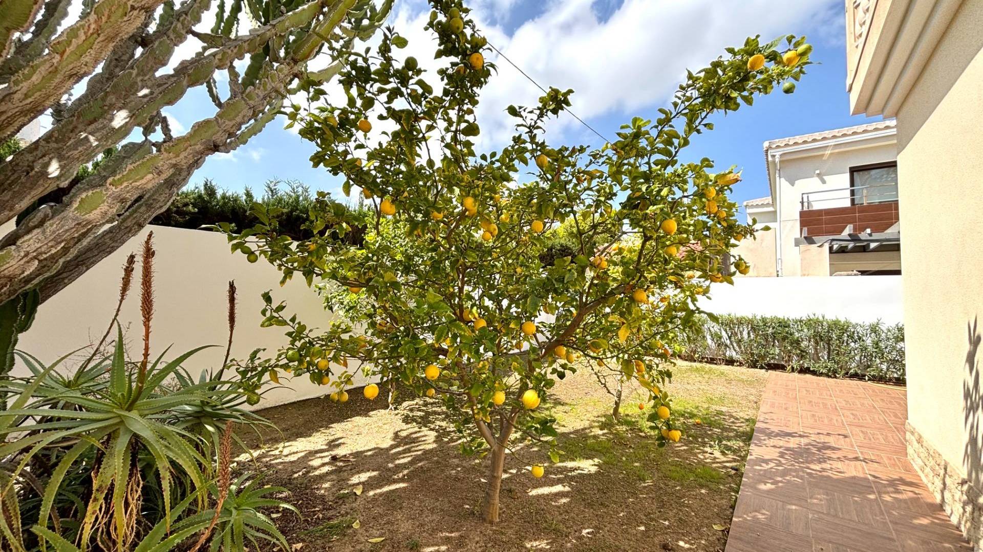 Cette magnifique villa entièrement rénovée est située sur un vaste terrain de 518 m², dans l’un des quartiers les plus prestigieux de Cabo Roig, à seulement 400 mètres de la plage. Conçue et finie avec un niveau d’exigence exceptionnel, la propriété dispose de chauffage au sol dans toutes les salles de bains, de la climatisation intégrale et de sols élégants en granite céramique. À l’extérieur, la villa offre une intimité optimale grâce à de hauts murs périphériques, des surfaces antidérapantes, une élégante piscine à débordement, une douche extérieure et un local de rangement en briques. Il y a un parking privé sécurisé pouvant accueillir jusqu’à trois véhicules ainsi qu’un vaste espace idéal pour créer une cuisine ou un espace repas en plein air. À l’intérieur, le salon lumineux et accueillant est doté d’une cheminée à bois avec entourage en marbre et s’ouvre sur une terrasse parfaite pour les repas en extérieur. La cuisine entièrement équipée comprend des appareils Bosch haut de gamme, des meubles de style shaker, des plans de travail et crédences en granite, ainsi qu’un accès direct au jardin — parfait pour installer une cuisine extérieure. Une pièce polyvalente au rez-de-chaussée peut faire office de bureau, de salle à manger ou de chambre supplémentaire. Elle est équipée de la climatisation et d’un câblage de communication préinstallé. La salle de bains au rez-de-chaussée, moderne et raffinée, est dotée d’un chauffage au sol, d’une douche à l’italienne, d’un bidet, de toilettes et d’un meuble vasque contemporain. Une autre chambre dispose également de la climatisation et d’un accès à un balcon privé. À l’étage, trois chambres en suite bénéficient chacune de leur propre balcon privé, de la climatisation, et de salles de bains modernes avec douches ou baignoires, bidets, chauffage au sol et meubles vasques élégants. Au deuxième étage se trouve un solarium ensoleillé et intime avec vue sur la mer, balustrades en pierre et sol carrelé — idéal pour se détendre ou recevoir. Tous les équipements et finitions de la maison sont neufs et de qualité supérieure. Il s’agit d’une opportunité rare d’acquérir une villa de luxe prête à emménager dans l’un des lieux côtiers les plus recherchés de la Costa Blanca. Contactez-nous dès aujourd’hui pour organiser votre visite privée.