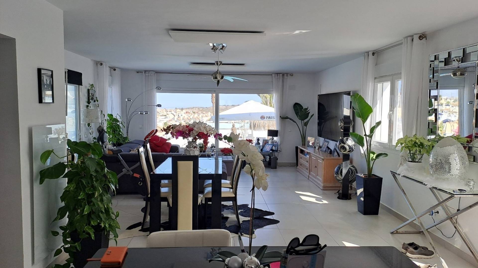 Villa luxueuse pour grande famillePropriété composée de 4 constructions, une villa principale et 3 appartements sur un terrain de 1 000 m2 1)Avec une villa spacieuse de 150m² avec grand séjour et pleine vue sur la vallée et la piscine et cuisine ouverte avec îlot, 2 chambres, toutes deux avec salles de bains en suite. 2)Studio d'angle derrière la villa avec 1 chambre et coin petit-déjeuner, salle de bain, TV, réfrigérateur, climatisation et chauffage infrarouge et terrasse 3)Appartement sous le côté de la villa avec terrasse et séjour/salon, petite cuisine, salle de bain et chambre double, TV, réfrigérateur, climatisation et chauffage infrarouge. Climatisation chaud et froid partout et chauffage avec panneaux infrarouges. 4)Appartement au rez-de-chaussée avec grand jardin, séjour/salon, cuisine, salle de bain, chambre, climatisation et belle vue, jardin de 100m avec bar. Détails de l'équipement Toit-terrasse avec installation de panneaux solaires et terrasse suffisante pour un salon et une vue panoramique sur la mer.Parking pour 3 voitures avec possibilités d'agrandissement, portail automatique.Piscine avec carrelage spécial, fontaine, chauffage et jacuzzi dans la piscine. Tout cela avec un éclairage LED.Belles plantes et décoration et cuisine extérieure avec réfrigérateur et congélateur.Venez visiter cette opportunité