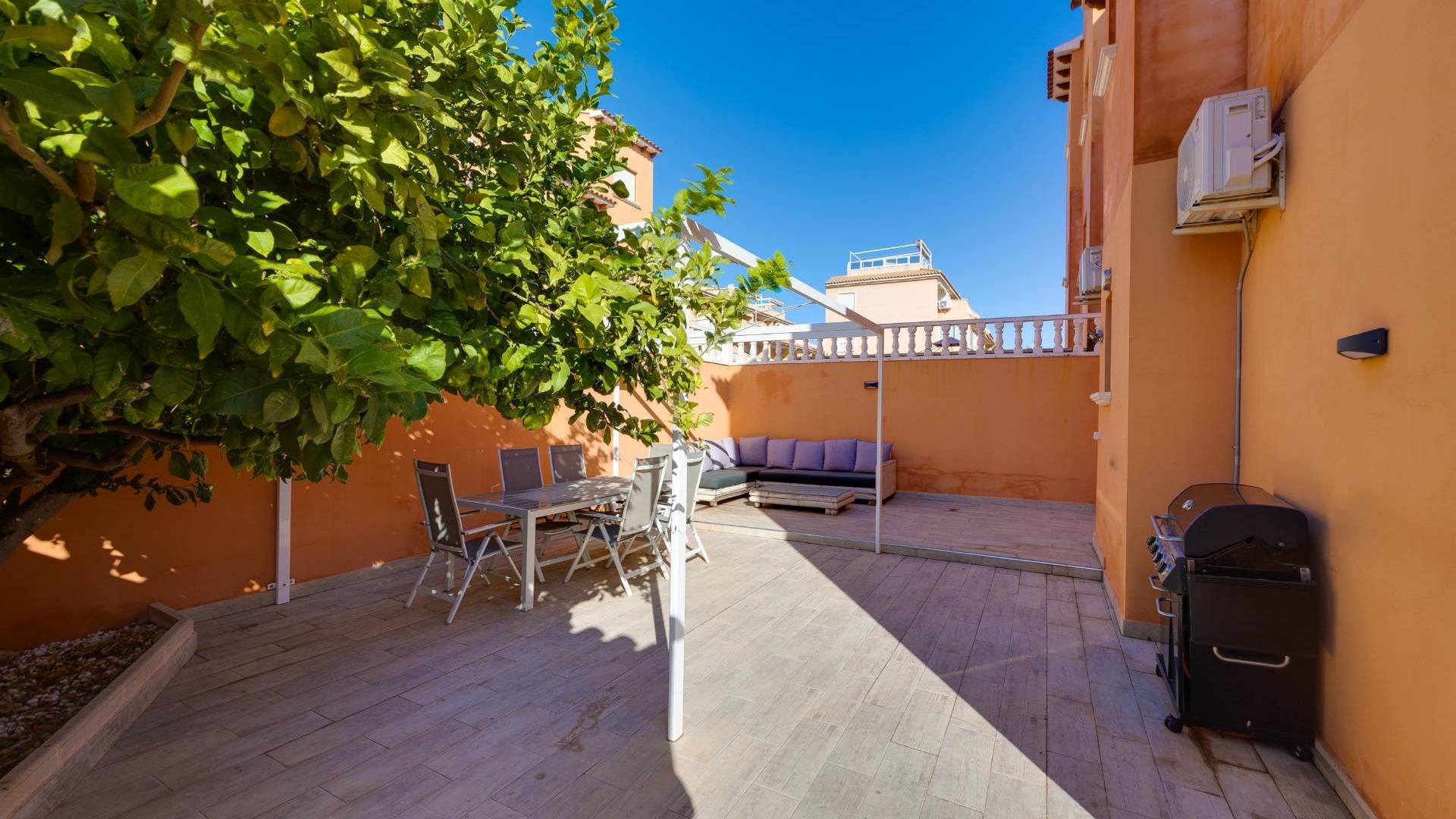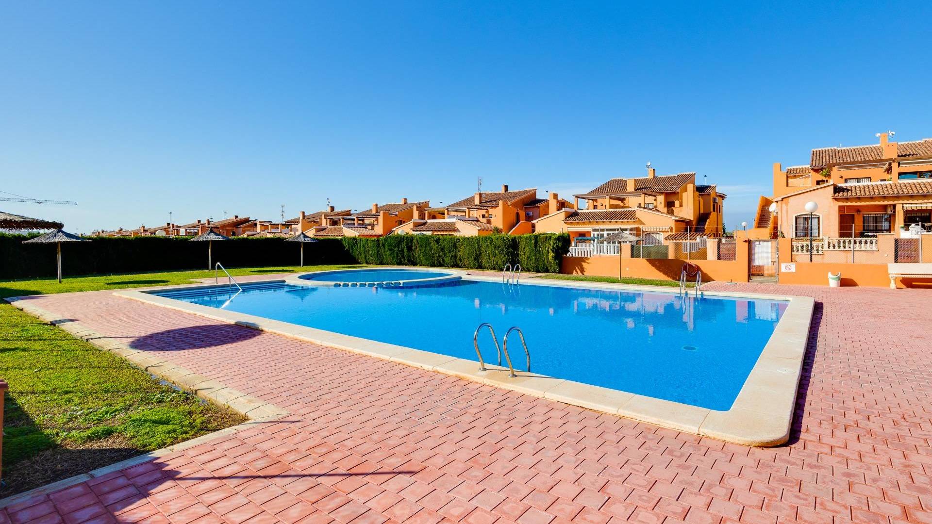 Bungalow de plain-pied avec grand jardin d'angle à Aguas Nuevas – Torrevieja Découvrez ce bungalow exclusif de plain-pied situé dans le quartier prestigieux et paisible d'Aguas Nuevas, l'un des plus prisés de Torrevieja. Idéal pour ceux qui recherchent qualité de vie, confort et proximité de la mer. Proposé à 219 900 €, ce bien offre 60 m² de surface habitable bien agencée et un magnifique jardin d'angle privatif de 70 m², parfait pour aménager différents espaces de détente : un coin repas extérieur, un espace détente, un coin relaxation et un espace pour vos animaux de compagnie. Vous pourrez ainsi vous ressourcer et profiter du climat méditerranéen toute l'année. Son orientation plein sud garantit une luminosité exceptionnelle tout au long de la journée. Il comprend deux chambres doubles spacieuses et lumineuses, ainsi qu'une salle de bain complète et des toilettes séparées avec un espace buanderie équipé d'un lave-linge, d'un sèche-linge et de rangements, offrant une fonctionnalité très appréciable. Cette propriété fait partie d'un complexe résidentiel privé et bien entretenu, avec piscine commune, parking privé et un grand local de rangement extérieur, idéal pour les vélos, le mobilier de jardin ou tout autre espace de rangement. La maison bénéficie d'un emplacement exceptionnel, à deux pas de la mer et entourée de toutes les commodités : transports en commun, commerces, centres médicaux, espaces verts et aires de jeux pour enfants. Cette maison, prête à emménager, est parfaite comme résidence principale, secondaire ou investissement dans un quartier très prisé. Un bungalow unique avec un grand jardin d'angle, une luminosité exceptionnelle et un cadre résidentiel prestigieux et paisible.