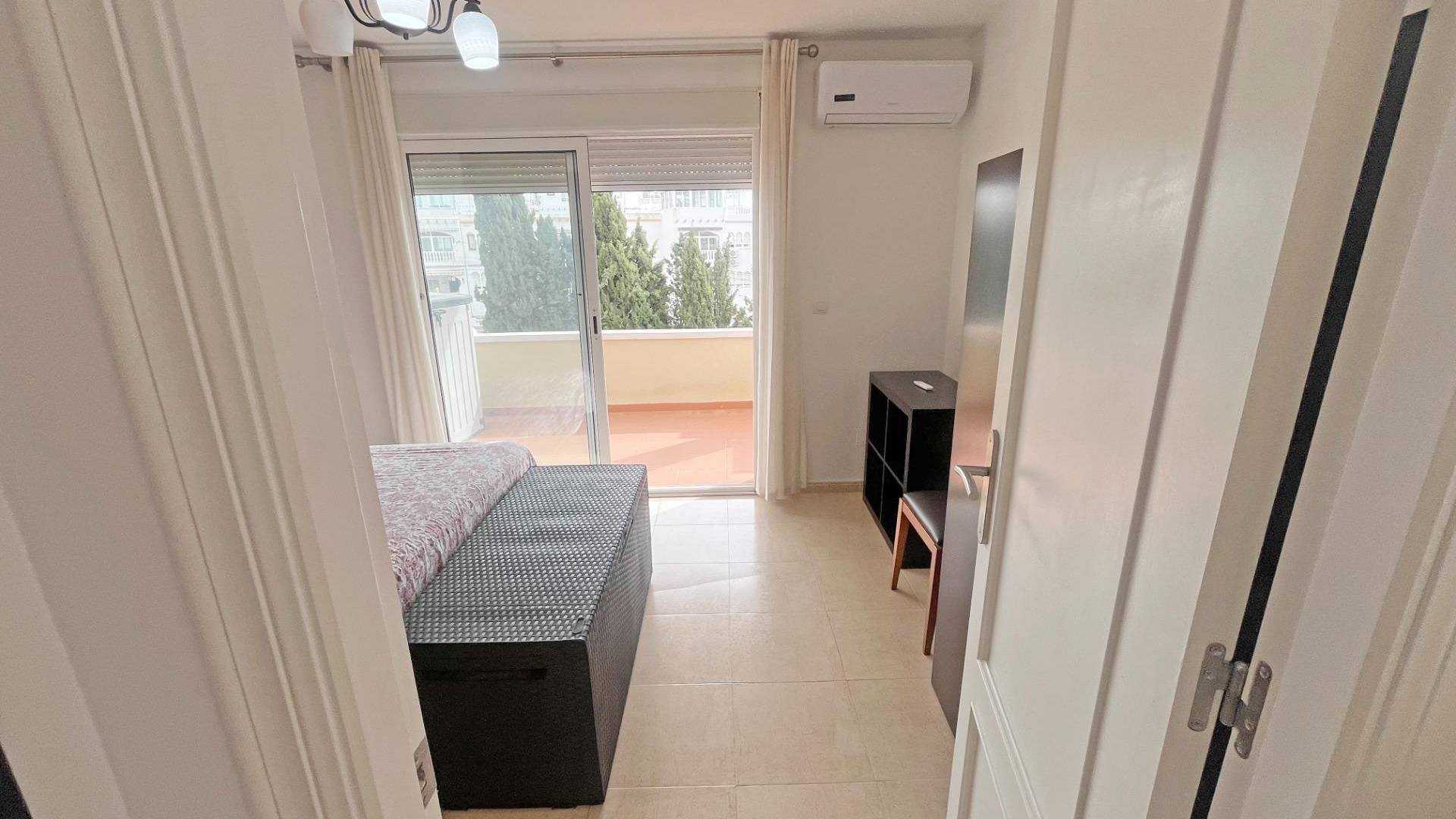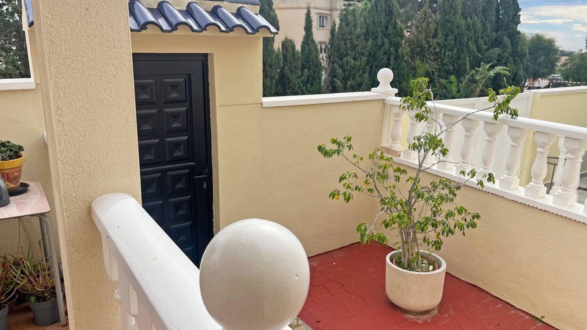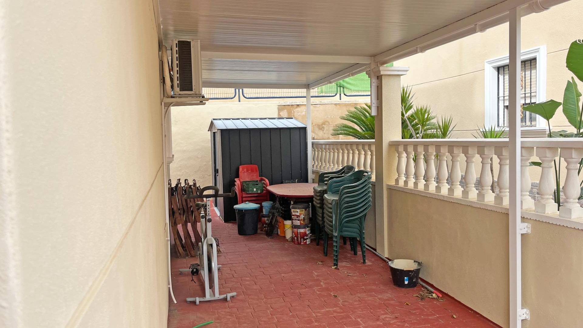 Découvrez cette spectaculaire villa située dans la paisible localité de San Miguel de Salinas. En entrant, vous serez accueilli par un porche accueillant, idéal pour profiter du plein air. Cette propriété est répartie sur deux étages bien définis ; le rez-de-chaussée abrite une salle à manger lumineuse avec climatisation et des fenêtres équipées de grilles et de moustiquaires qui assurent la sécurité sans sacrifier la lumière naturelle. La cuisine américaine est entièrement équipée et donne accès à une galerie où vous trouverez un espace pour la buanderie et un espace de rangement supplémentaire. De plus, il y a une grande chambre équipée d'une armoire encastrée, dont la fenêtre offre une vue sur la terrasse arrière de la maison. L'utilisation ingénieuse de l'espace se reflète également sous l'escalier, où vous trouverez un débarras pratique. En montant au premier étage par un élégant escalier en bois, vous trouverez une autre chambre individuelle à côté d'une salle de bain complète équipée d'une baignoire. Vous aurez également le plaisir de disposer d'une suite principale spacieuse qui donne sur sa propre terrasse privée. De là, vous pourrez monter au solarium supérieur dont la vue dégagée permet d'apercevoir les belles plages voisines de Torrevieja. La propriété dispose également d'un parking privé suffisant pour deux véhicules et comprend un accès direct depuis un côté à la zone commune : une piscine rafraîchissante entourée d'espaces verts idéaux pour les pique-niques ou les moments en famille au soleil sur une pelouse artificielle très bien entretenue. Située à proximité de tous les services essentiels tels que les supermarchés locaux et les écoles prestigieuses comme El Limonar, cette perle architecturale se trouve à seulement dix minutes de la mer Méditerranée. Un excellent choix si vous recherchez la tranquillité tout en bénéficiant du confort moderne.