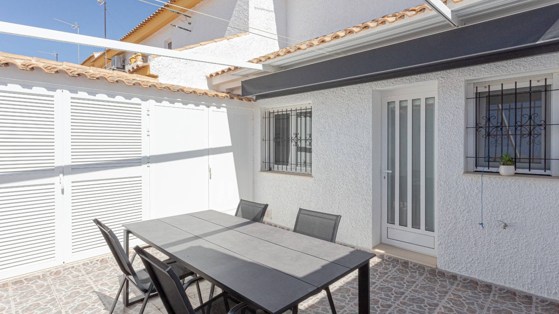 Maison à vendre à Torre de la Horadada, située à Pilar de la Horadada, Costa Blanca Sud. Dans un quartier résidentiel calme, face à un parc public sans voisins en face, offrant intimité et vues dégagées.La maison dispose de 3 chambres et 2 salles de bains, d’un salon lumineux et a été entièrement rénovée l’année dernière. Elle comprend la climatisation centralisée, une cuisine neuve, une peinture récente et des électroménagers neufs.Stationnement possible devant la maison ou dans la parcelle privée.Torre de la Horadada est une zone très demandée, connue pour ses plages de sable et ses services toute l’année.La propriété se situe à quelques mètres de la plage de Higuericas et proche de toutes les commodités, idéale pour y vivre ou investir.