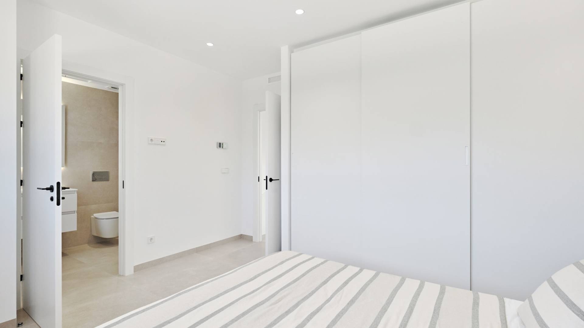 Découvrez le summum du style de vie méditerranéen contemporain dans cette superbe villa individuelle clé en main, conçue dans un élégant style architectural ibicenco et bénéficiant de finitions exceptionnelles. Située dans le quartier résidentiel très prisé de Lomas de Don Juan, cette maison moderne offre un équilibre parfait entre intimité, confort et proximité avec certaines des plus belles plages de la Costa Blanca. La villa comprend trois chambres doubles spacieuses et trois salles de bain élégantes, ainsi qu'un WC séparé pour les invités, le tout conçu avec soin pour un confort optimal. D'une surface habitable de 137,63 m² sur un terrain généreux de 425 m², la propriété dispose d'un espace de vie lumineux et ouvert comprenant un salon et une salle à manger, qui communique harmonieusement avec une cuisine contemporaine entièrement équipée d'électroménager haut de gamme. Cette maison entièrement meublée et climatisée, dotée d'un éclairage intérieur et extérieur soigneusement conçu, vous permet de vous installer et d'en profiter immédiatement. Le souci du détail est omniprésent, notamment grâce au chauffage au sol du séjour et des salles de bains, garantissant un confort optimal toute l'année. De vastes terrasses prolongent l'espace de vie vers l'extérieur, où un magnifique jardin paysager entoure une élégante piscine design de 21 m², créant un cadre idéal pour la détente ou les réceptions. Le solarium privé offre une vue dégagée sur la mer, un espace parfait pour se relaxer et profiter du climat méditerranéen. Idéalement située à quelques minutes seulement des plages de sable fin de Campoamor, La Zenia et Cabo Roig, la villa bénéficie également de la proximité du centre commercial Zenia Boulevard, ainsi que d'un large choix de restaurants, bars et supermarchés. Cette propriété d'exception allie design moderne, finitions haut de gamme et emplacement privilégié, ce qui en fait un choix idéal comme résidence principale, résidence secondaire ou investissement locatif. Prête à emménager et entièrement équipée, elle vous offre une transition en douceur vers un style de vie méditerranéen luxueux.