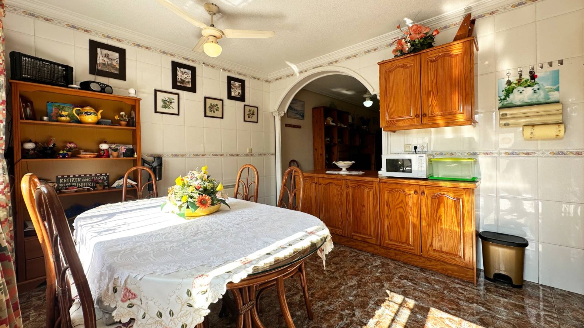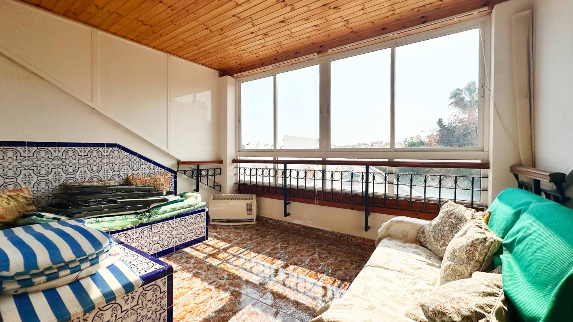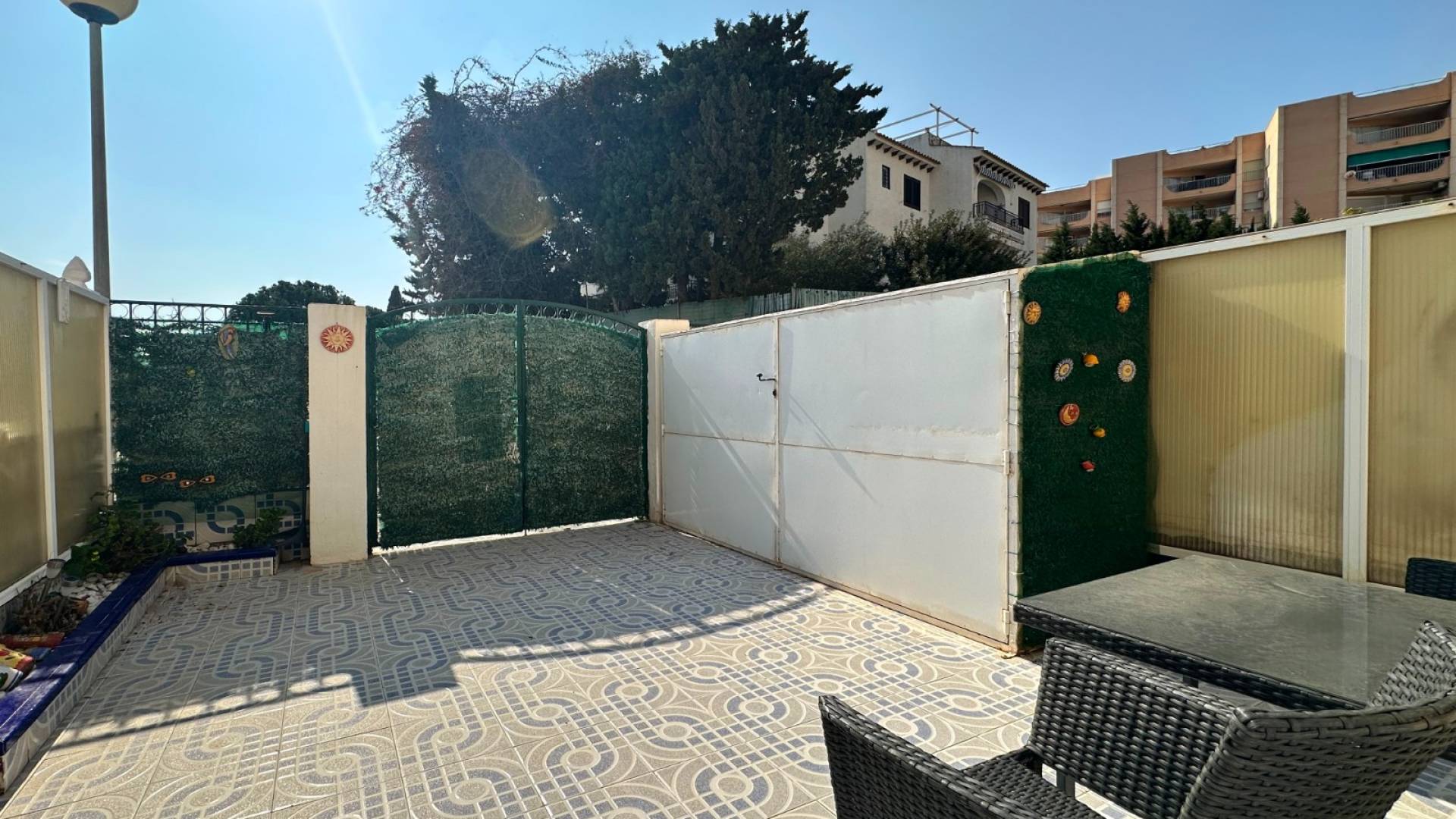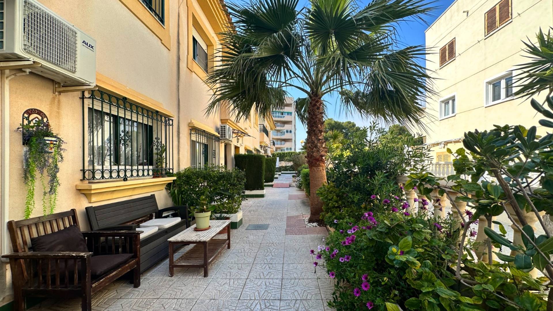 Cette charmante maison mitoyenne offre un mélange idéal d'espace, de confort et de proximité avec la côte, parfaite pour ceux qui recherchent un mode de vie à la fois tranquille et pratique sur la côte d'Orihuela. Intérieur : D'une superficie de 100 m², cette maison spacieuse comprend 3 chambres et 2 salles de bains, offrant ainsi un vaste espace de vie pour les familles ou ceux qui souhaitent disposer d'une chambre supplémentaire pour leurs invités. L'une des salles de bains est équipée d'une baignoire, tandis que le rez-de-chaussée dispose de toilettes pratiques pour plus de commodité. Salon : Un grand salon offre un espace confortable pour se détendre et recevoir, baigné de lumière naturelle provenant de la terrasse avant. Cuisine : La cuisine semi-indépendante avec coin repas intégré est entièrement équipée et donne accès au jardin/patio arrière, idéal pour un espace de rangement supplémentaire en extérieur ou un coin de détente au calme. Espace extérieur : Profitez de la vie en plein air grâce à une terrasse à l'avant, parfaite pour les repas en plein air ou la détente. La propriété dispose également d'un vaste jardin à l'arrière et d'un parking privé au sein d'une résidence sécurisée, ainsi que d'un accès à une grande piscine commune pour votre confort. La propriété comprend un solarium fermé, ce qui en fait l'endroit idéal pour se détendre et recevoir, ainsi qu'un espace pratique pouvant servir de 4e chambre. Exposition : orientée sud-est, garantissant un environnement ensoleillé et confortable tout au long de la journée. Meublé : La propriété est vendue meublée, ce qui vous permet d'emménager immédiatement et de commencer à profiter de votre nouvelle maison. Chauffage : Chauffage et climatisation dans toute la propriété. Emplacement : La propriété se trouve à quelques minutes à pied d'une gamme de commodités locales, notamment des supermarchés, des banques, des pharmacies, ainsi qu'un large choix de bars, de restaurants et de lignes de bus. Ce duplex offre la combinaison idéale entre commodité et détente dans un emplacement de choix près de la mer, ce qui en fait un excellent investissement pour toute personne recherchant un style de vie balnéaire. C'est une opportunité fantastique d'acquérir une magnifique maison dans l'un des quartiers les plus prisés de la Costa Blanca. Ne passez pas à côté : prenez rendez-vous dès aujourd'hui pour une visite !