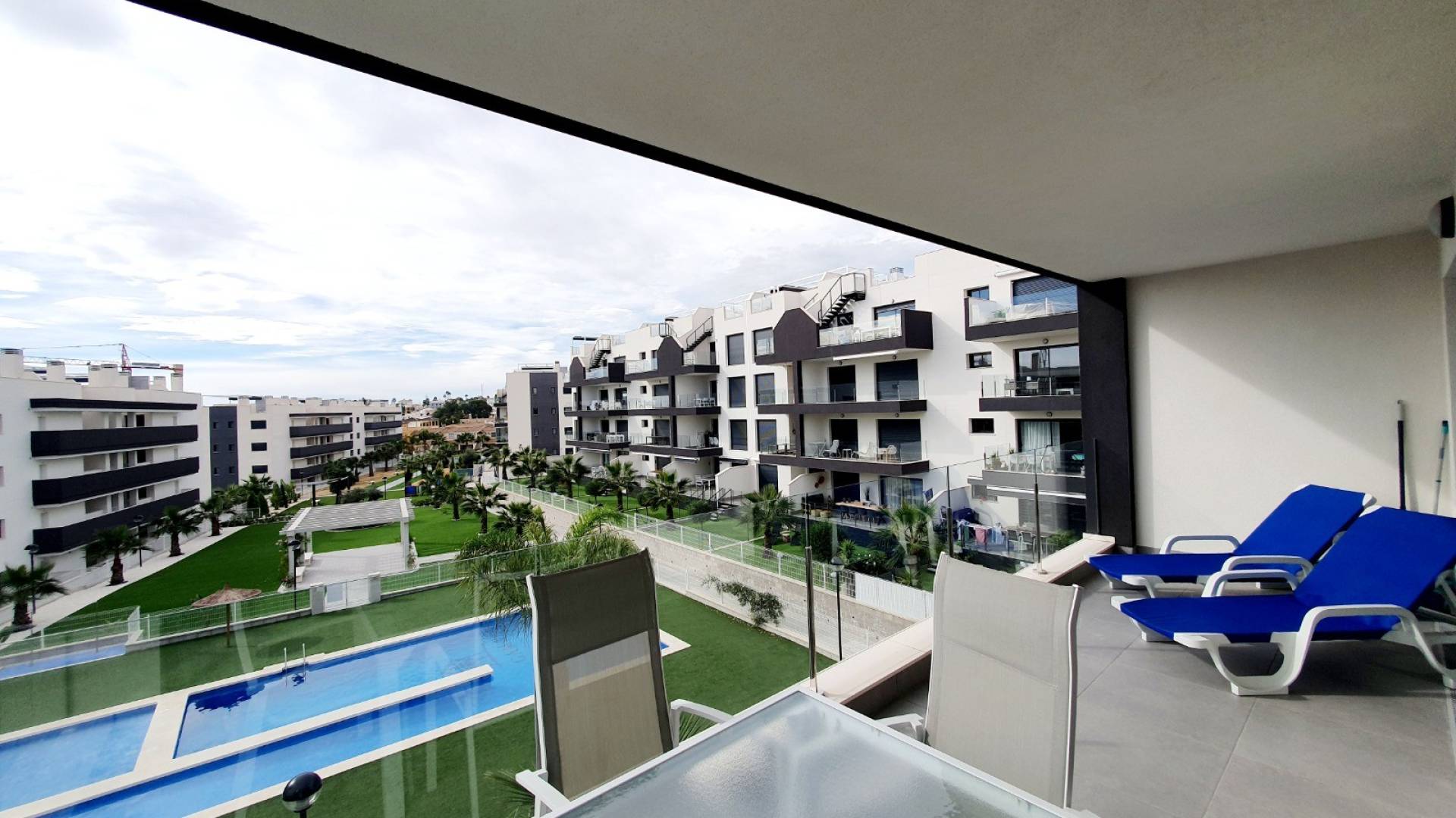 Découvrez ce superbe appartement moderne situé au 2ème étage avec ascenseur au sein de la prestigieuse résidence sécurisée Valentino Golf. Idéalement orienté plein SUD, ce bien bénéficie d'une luminosité naturelle exceptionnelle toute la journée et offre une vue imprenable sur la piscine et les jardins magnifiquement aménagés. Caractéristiques principales : Espace de vie : Un salon-salle à manger spacieux et épuré s'ouvrant sur une belle terrasse ensoleillée face à la piscine.Nuit : 2 chambres élégantes avec placards intégrés, dont une suite parentale.Salles de bain : 2 salles de bain modernes et fonctionnelles.Cuisine : Entièrement aménagée et équipée avec électroménager de qualité.Prêt à emménager : Le bien est vendu entièrement meublé et équipé (décoration soignée incluse). Les + qui font la différence : Stationnement : Une place de parking privée en sous-sol incluse.Confort : Climatisation réversible, finitions de haut standing, résidence avec piscines, aires de jeux et terrains de sport.Localisation Premium : À seulement quelques pas du célèbre terrain de golf de Villamartín et de la fameuse "Plaza" (restaurants, bars, commerces). Les plages de sable fin d'Orihuela Costa sont à moins de 10 minutes en voiture. Que ce soit pour une résidence secondaire, un investissement locatif à fort potentiel ou une vie à l'année sous le soleil, ce bien est une opportunité rare sur le secteur.