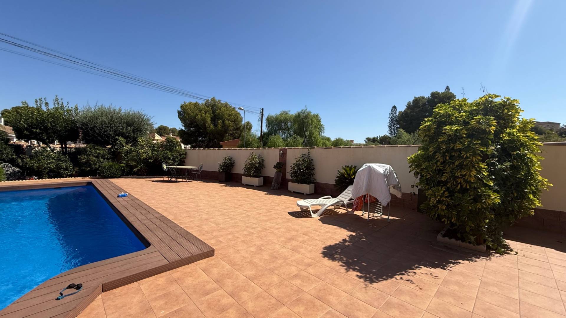 Villa impeccable de 7 chambres avec piscine d'eau salée à Los Balcones Découvrez cette villa exceptionnelle entièrement rénovée dans le quartier prisé de Los Balcones, située sur un magnifique terrain de 800 m² qui allie élégance, confort et espace en parfaite harmonie. Initialement rénovée selon les normes les plus élevées en 2017, cette vaste propriété dispose de 7 grandes chambres et de 4 salles de bains spacieuses, ce qui en fait un choix idéal pour les grandes familles ou ceux qui recherchent un refuge luxueux avec un hébergement suffisant pour les invités. Au cœur de la propriété se trouve une belle piscine d'eau salée, entourée de jardins paysagers luxuriants et de plusieurs espaces de détente, parfaits pour profiter du soleil méditerranéen. Un solarium ensoleillé offre une vue dégagée et constitue l'endroit idéal pour se détendre ou recevoir. En plus de la villa principale, la propriété comprend un studio autonome, offrant intimité et flexibilité—idéal pour les invités, les revenus locatifs ou un bureau à domicile. Chaque recoin de cette maison reflète un savoir-faire de qualité et un design moderne, avec des équipements actualisés, des finitions élégantes et une disposition qui associe harmonieusement vie intérieure et extérieure. Située dans un quartier résidentiel paisible et bien desservi, à proximité des plages, des terrains de golf et de toutes les commodités, c'est une rare opportunité de posséder une villa véritablement impeccable dans l'un des quartiers les plus recherchés de la Costa Blanca.