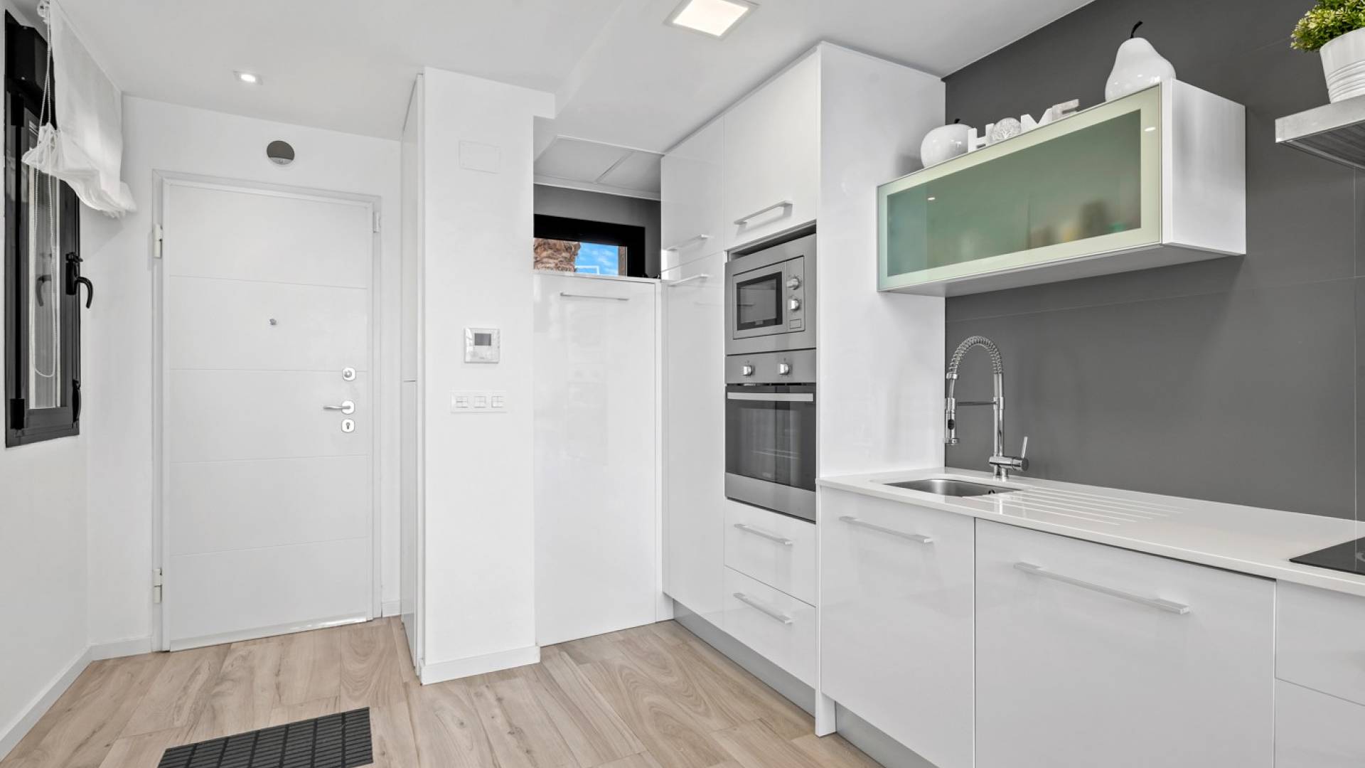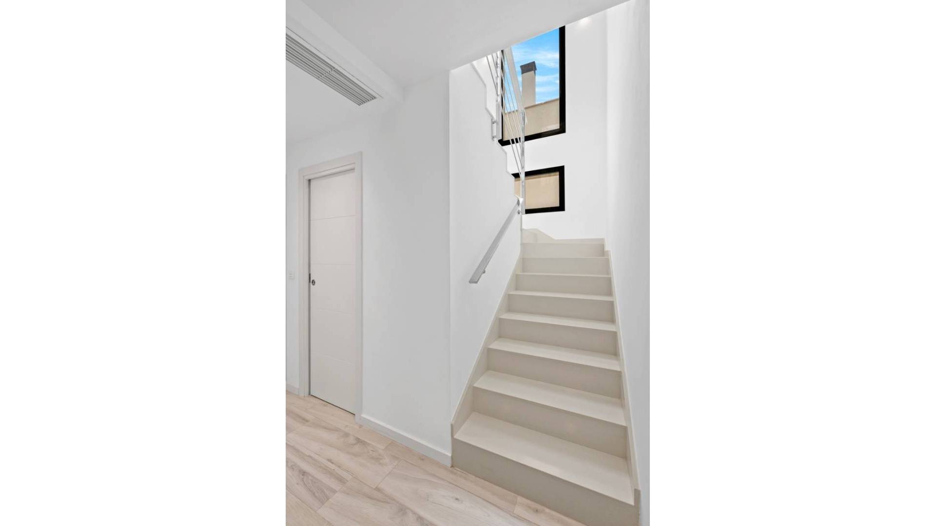 Découvrez cette magnifique maison mitoyenne située à Lomas de Campoamor. Un investissement idéal comme résidence secondaire ou pour la location. À seulement quelques minutes de la plage et du golf de Las Ramblas, cette maison moderne dispose de 3 chambres et de 3 salles de bains. Au rez-de-chaussée, vous accédez à un superbe espace salon-salle à manger ouvert, avec de grandes baies vitrées donnant directement sur le patio et la piscine privée. À ce niveau se trouvent également une chambre et une salle de bains. Au premier étage, vous trouverez deux chambres doubles, chacune avec sa salle de bains privative et un accès à une terrasse offrant suffisamment d’espace pour aménager un coin salon convivial. Depuis cette terrasse, vous accédez à une seconde terrasse plus élevée avec une vue imprenable sur la nature, idéale pour se détendre et admirer les couchers de soleil. Vous apprécierez également le spacieux solarium avec vue sur la mer. Caractéristiques supplémentaires : Piscine privée de 18 m² Accès garage Patios avant et arrière Volets électriques Climatisation centralisée Espace de rangement intérieur Entourée de palmiers, cette propriété garantit calme et sérénité tout en conservant l’accès à toutes les commodités et au style de vie qu’offre Cabo Roig.