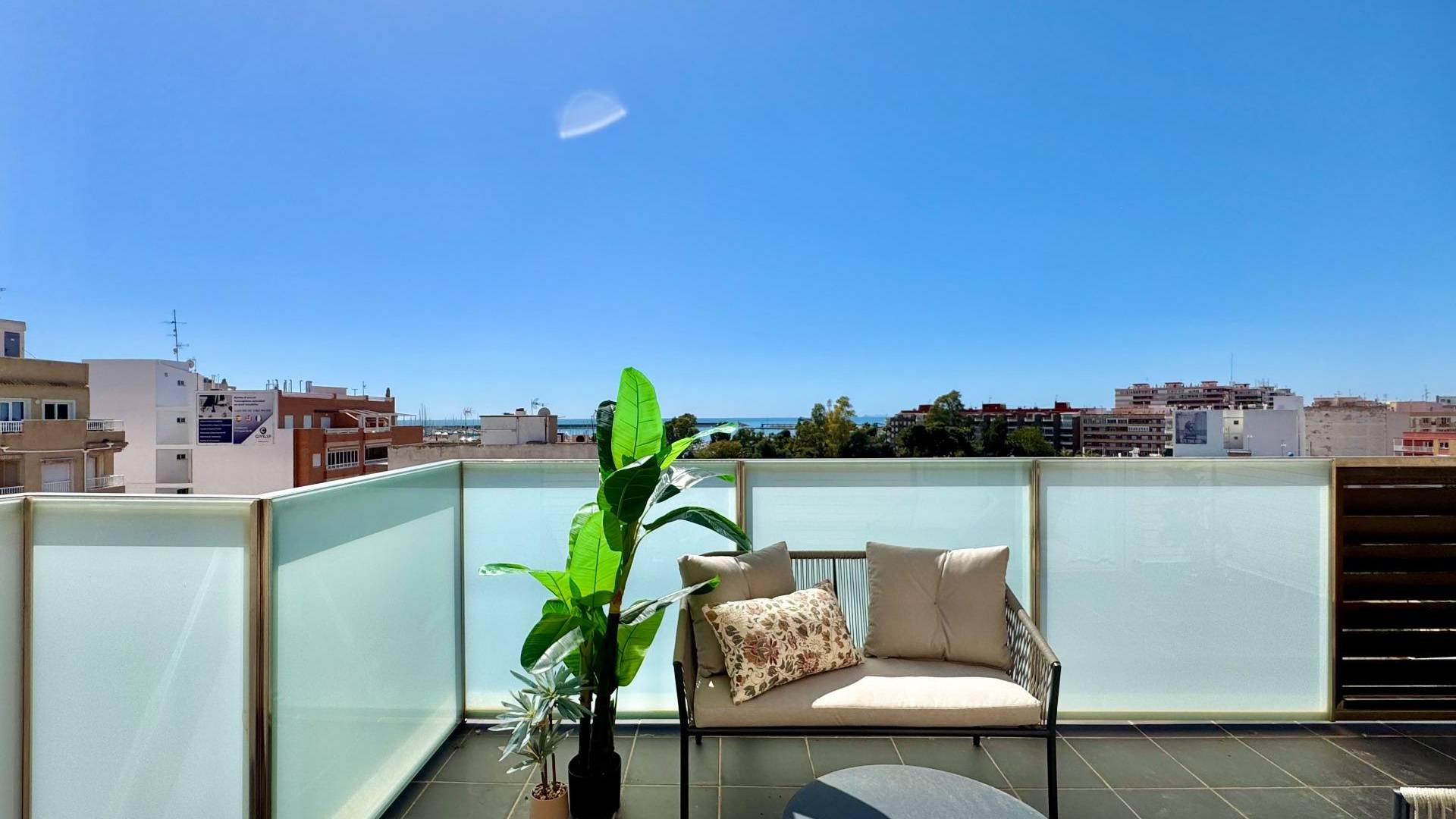magnifique penthouse entièrement rénové au cinquième étage avec vue sur le port et la mer. l’appartement dispose de 3 chambres et 2 salles de bains, ainsi qu’une agréable terrasse pour profiter du soleil et de la vue. l’emplacement est idéal : à distance de marche de la plage, des supermarchés et de toutes les commodités, parfait comme résidence principale, maison de vacances ou investissement. en plus de la mer, une grande piscine extérieure se trouve à seulement 10 minutes à pied, accessible pour un petit prix. il y a également la possibilité d’acheter une place de parking dans le garage souterrain pour 13 000 €. un appartement prêt à emménager dans un emplacement privilégié, avec tout à portée de main.