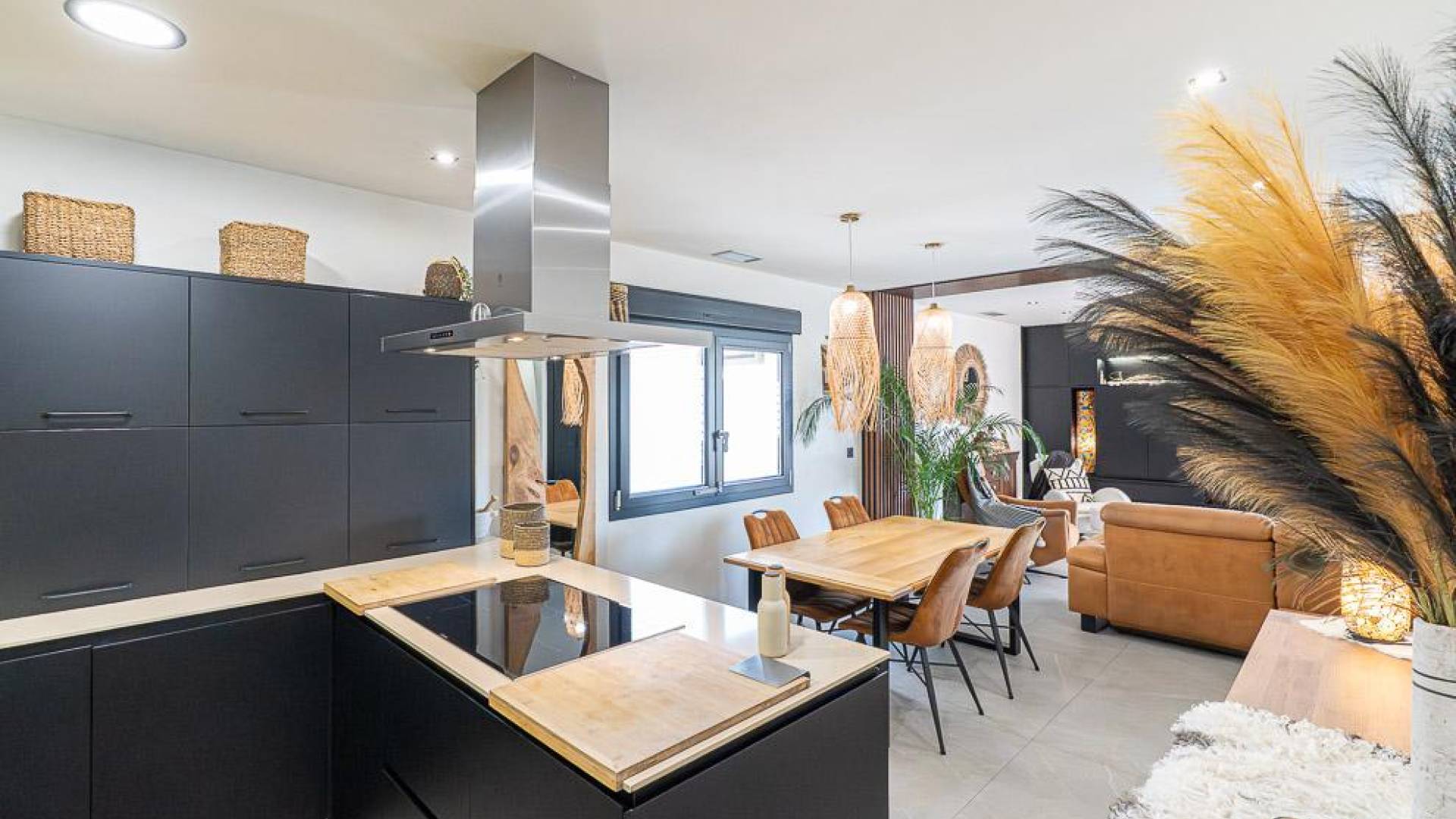 Située dans le quartier résidentiel établi de Benijófar, cette villa bénéficie d’un environnement paisible de village, entouré de commodités, de restaurants locaux et du parcours de golf La Marquesa à courte distance en voiture. Les plages de la Costa Blanca Sud sont accessibles en environ 15 minutes, permettant un accès facile à la fois au littoral et à l’intérieur des terres.Cette villa prête à emménager, dotée de 4 chambres, se répartit sur deux niveaux principaux et un sous-sol supplémentaire, offrant un cadre de vie flexible et bien agencé. L’intérieur s’ouvre naturellement sur les espaces extérieurs, où jardin et terrasses permettent de se détendre et de profiter de repas en plein air. La piscine constitue un élément central de l’extérieur, complétée par un système de nage à contre-courant et une pompe à chaleur. Le sous-sol augmente encore l’espace utilisable et comprend actuellement un gymnase, une buanderie et des espaces de rangement, avec une pré-installation prévue pour créer une salle de bains supplémentaire et une pièce additionnelle si nécessaire.Le bien est équipé de climatisation, de chauffage au sol dans toute la maison et de terrasses couvertes par pergola, ainsi que d’un jacuzzi 5 places sur la terrasse du premier niveau. Des panneaux solaires améliorent l’efficacité énergétique, tandis qu’un système de filtration de l’eau avec traitement anti-calcaire est installé dans toute la maison, avec un robinet spécifique pour l’eau potable dans la cuisine. Un espace barbecue avec cuisine d’été permet de profiter de repas en extérieur.Benijófar reste une localisation bien connectée et établie, combinant une atmosphère traditionnelle avec des commodités modernes, et se situe à environ 35 minutes en voiture de l’aéroport d’Alicante.
