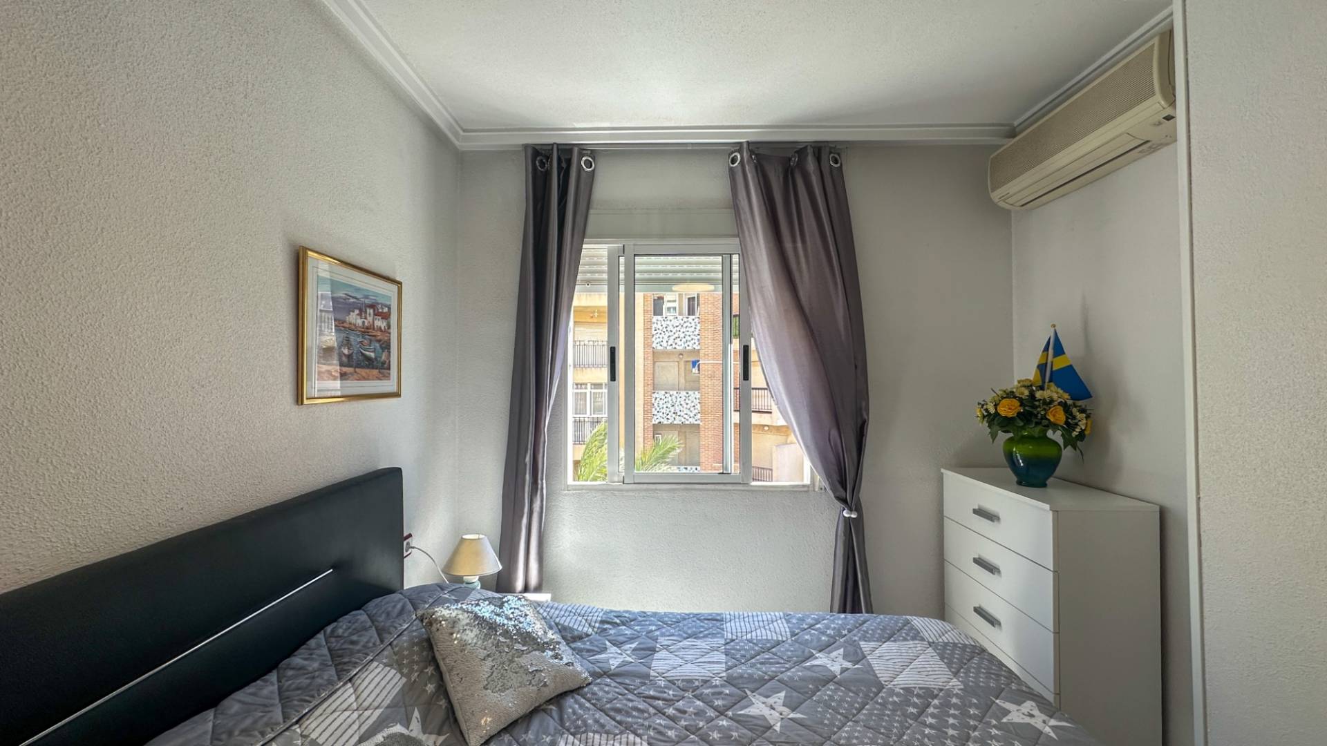 Ce charmant appartement de 2 chambres est situé au cœur de la ville de Torrevieja, à seulement 400 mètres de la plage, offrant une combinaison idéale de confort et de vie côtière. Le bien dispose de deux chambres bien proportionnées et d’une salle de bain, ce qui le rend idéal pour les couples, les petites familles ou comme résidence de vacances. Le salon est lumineux et bien agencé, offrant un espace de vie confortable et pratique. Un point fort est le balcon exposé plein sud, qui bénéficie du soleil toute la journée, parfait pour se détendre, manger en plein air ou profiter du climat méditerranéen toute l’année. L’immeuble est bien entretenu et dispose d’un ascenseur, offrant un accès facile pour tous les âges. Son emplacement central permet d’accéder à pied aux commerces, restaurants, cafés et services essentiels, tandis que la plage est à quelques minutes seulement.