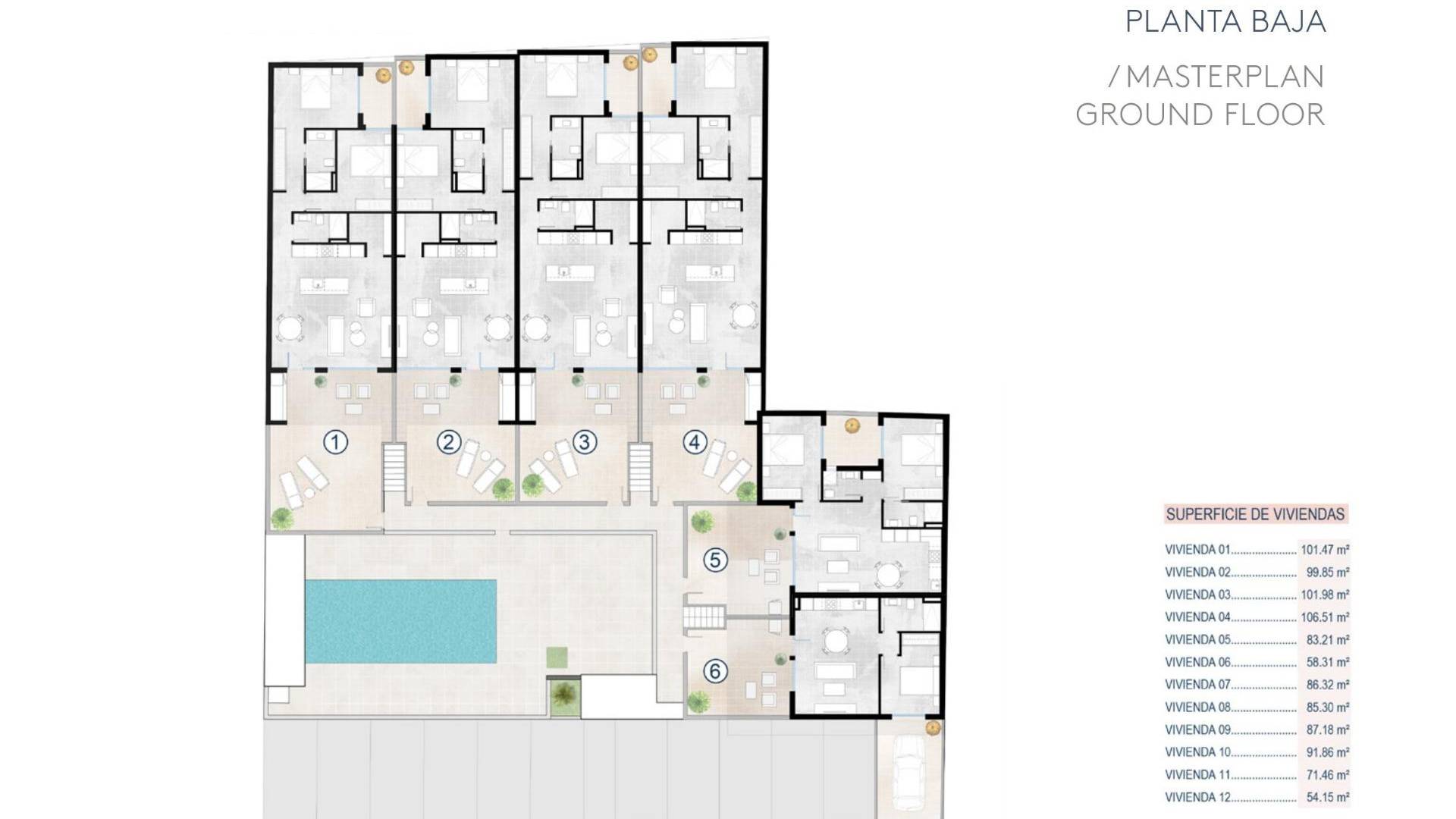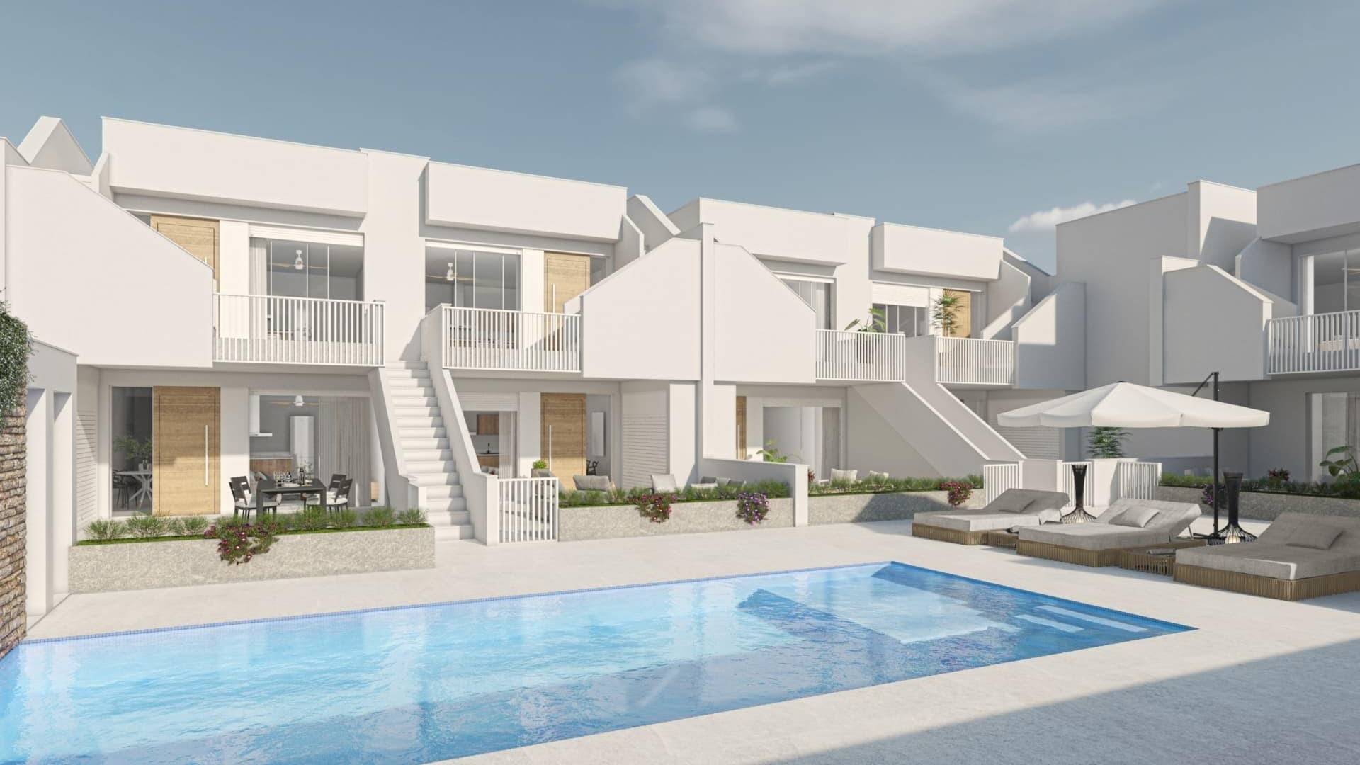 NIEUWBOUW BUNGALOW APPARTEMENTEN IN SAN PEDRO DEL PINATAR Nieuwbouw collectie van exclusieve bungalows met avant-gardistisch design, aandacht voor elk detail en een keuze van hoogwaardige afwerking in San Pedro del Pinatar. Het complex bestaat uit bungalowappartementen met 1 en 2 slaapkamers, beschikbaar in verschillende modellen: eerste verdieping modellen met groot terras en directe toegang tot het gemeenschappelijke zwembad en appartementen met privé solarium. De woningen bieden een open woonruimte, een combinatie van keuken met bijkeuken in sommige gevallen, eetkamer en een ruime woonkamer met toegang tot het terras. De slaapkamers hebben ruime inbouwkasten en de hoofdslaapkamer heeft ook een en-suite badkamer. Kleine details maken deze appartementen uniek! Uitgerust met pre-installatie van aardgas voor centrale verwarming, pre-installatie voor gekanaliseerde warme en koude airconditioning, warm water generatie met het energie-efficiënte aerothermische systeem, technische verlichting en ventilatiesysteem. Alle bungalows hebben een parkeerplaats. De bevoorrechte ligging van San Pedro del Pinatar aan de Mar Menor en de mediterrane kust trekt mensen aan die geïnteresseerd zijn in zeilen en watersporten, met ligplaatsen in de jachthaven en zeilclubs, terwijl de stranden en natuurlijke modderbaden mensen aantrekken die op zoek zijn naar veilige zon, zee en strand. San Pedro del Pinatar heeft een gevestigde gemeenschap en biedt een uitstekend aanbod van activiteiten, waaronder een overdekt zwembad en sportfaciliteiten, evenals een programma van sociale activiteiten het hele jaar door door het aangename winterweer. De voordelen van de modderbaden, typisch voor de regio, of het rustige water van de Mar Menor hebben de groei van Lo Pagán bevorderd, dat momenteel over allerlei voorzieningen beschikt. Bovendien heeft het een uitstekende ligging, op slechts 5 minuten van het commerciële centrum Dos Mares. De luchthaven van Murcia/Corvera ligt op 30 minuten afstand en die van Alicante op een uur rijden.