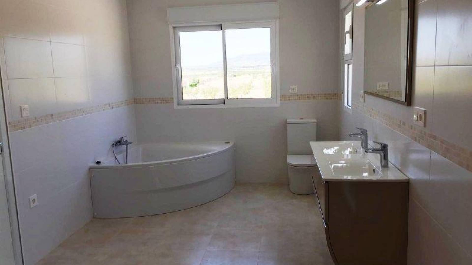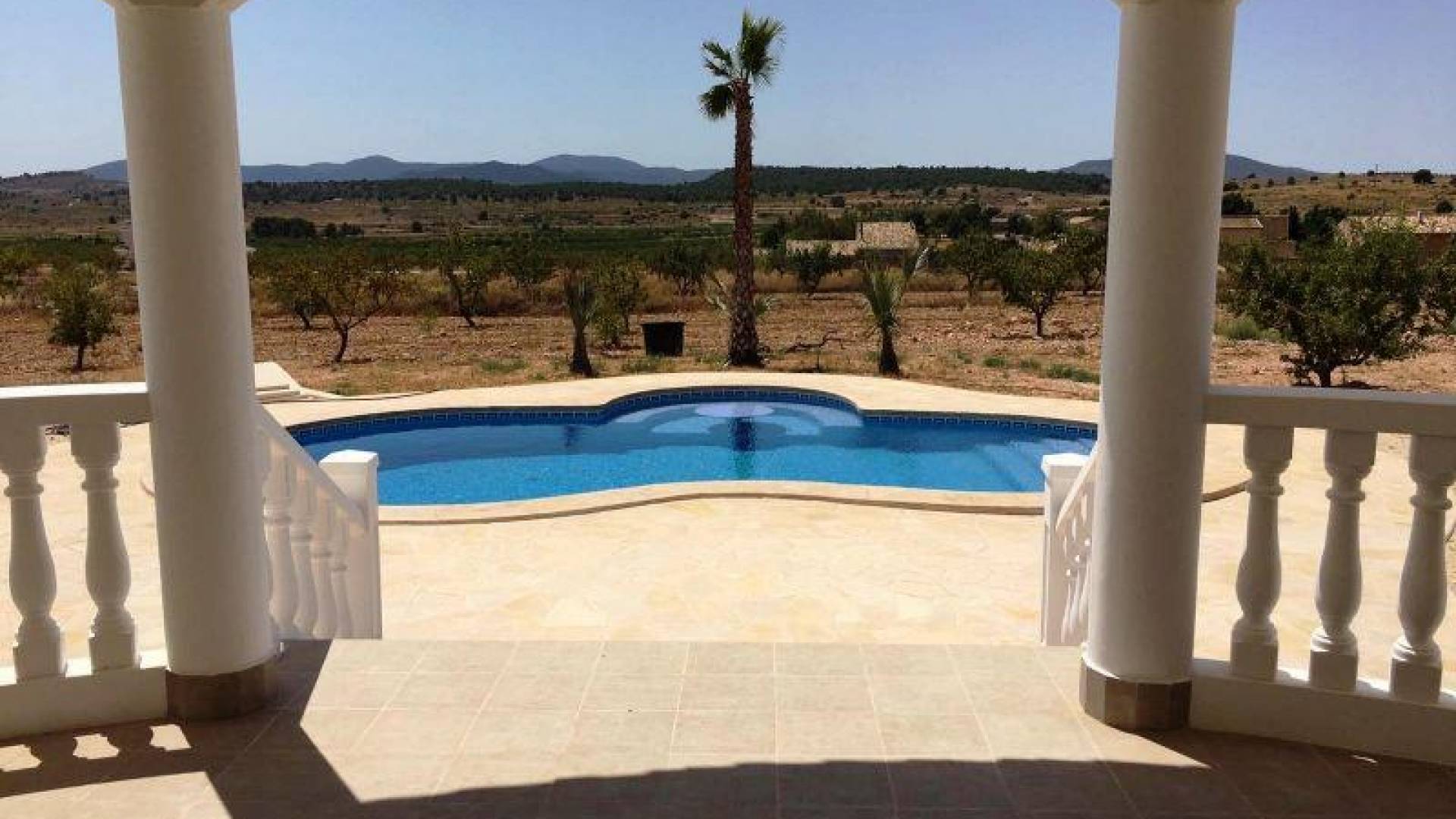 VILLA IN TYPISCH SPAANS DORP Fantastische nieuwbouw villa op een perceel van 10.000 m2 in Pinoso. De villa heeft een bebouwde oppervlakte van 235m2, als volgt verdeeld: - Begane grond: twee veranda's van 6,55m2 en 33,70m2, een woon-eetkeuken van 51,85m2, een galerij, een berging, een toilet, een slaapkamer en suite met bijbehorende badkamer. - Eerste verdieping: 3 slaapkamers, 1 badkamer, twee terrassen van 3,55m2 en 9,70m2. Inbegrepen in de prijs: Pre-installatie van gekanaliseerde airconditioning. Badkamers met badkamermeubel met spiegel, douchescherm en kranen. Elektrische apparatuur: keramische kookplaat, oven, afzuigkap, afwasmachine. Keuken met wit meubilair en nationaal graniet Interieur LED's in het hele huis en op de veranda Dubbele beglazing, binnendeuren en witte ingebouwde kasten. Buiten zonder gazon of planten. Omheind met automatische poort voor voertuigen en voetgangerspoort. Zwembad Als u op zoek bent naar een rustige omgeving, dicht bij typisch Spaanse dorpjes, omgeven door bergen, dan is dit uw huis!