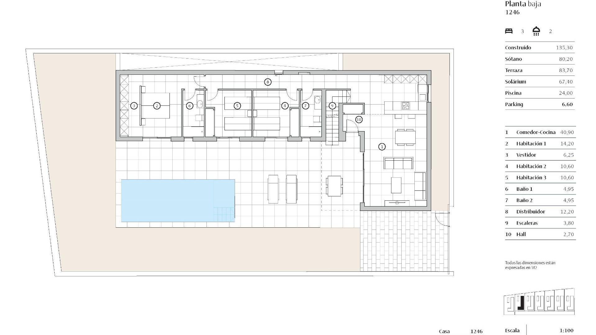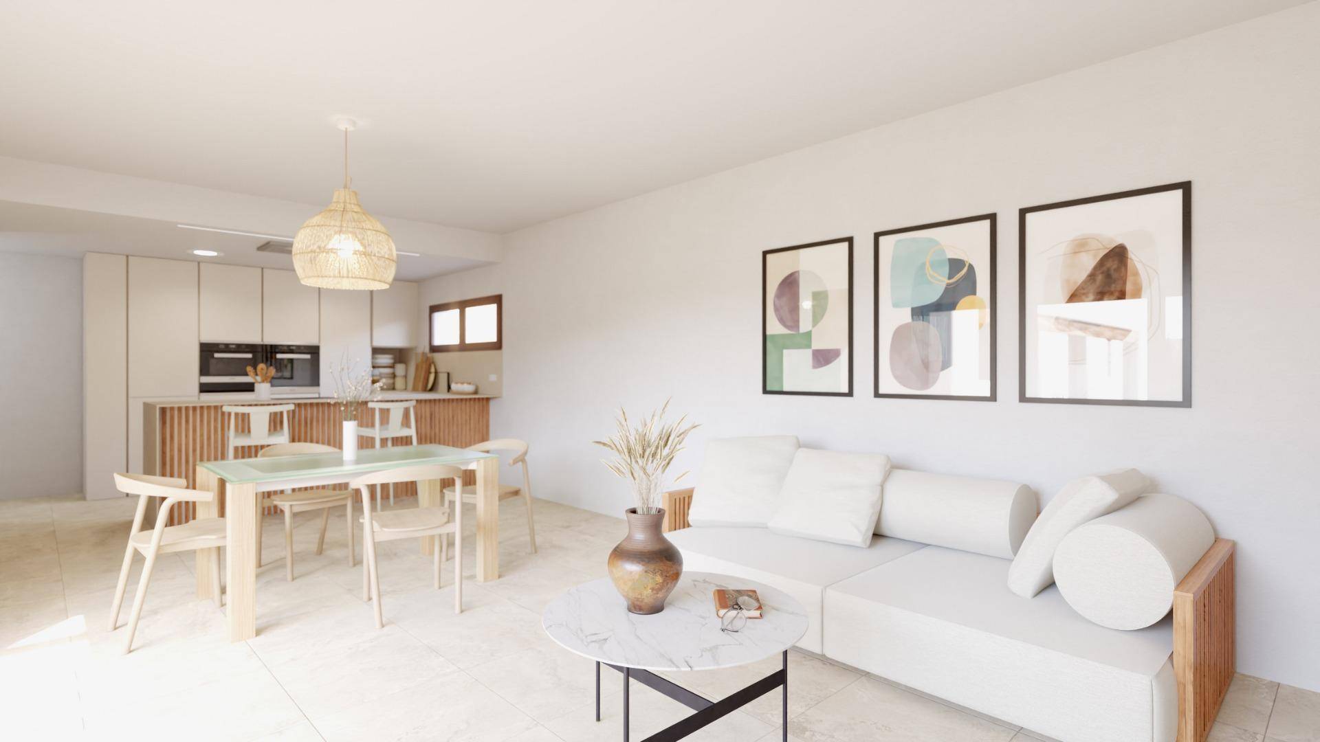 NIEUWBOUW VILLA'S IN LA FINCA GOLF Nieuwbouwproject van 7 villa's gelegen aan de frontlinie van La Finca Golf Resort, vlakbij het 5-sterren hotel. Villa's met 3 slaapkamers en 2 badkamers op één niveau, inclusief volledig uitgeruste keuken, met privézwembad. Een overdekte privéparkeerplaats met pergola, elektrische rolluiken, een beheersysteem en een alarmsysteem zijn enkele van de belangrijkste specificaties van dit exclusieve project. Elk van de villa's ligt op het zuiden, de optimale oriëntatie gezien hun locatie, waardoor ze de hele dag zonlicht ontvangen, het hele jaar door. De woningen genieten van veel natuurlijk licht, wat het energieverbruik vermindert en natuurlijke ventilatie in elke kamer mogelijk maakt. Het zwembad ligt op het zuiden, waardoor de zon overdag volop schijnt en 's avonds minder fel, zodat je heerlijk kunt dineren op het terras met spectaculair uitzicht op de golfbaan. Villa's bieden een hoog niveau van energiecertificering-klasse A. Dit is mogelijk dankzij de thermische isolatie van daken en muren, het aluminium timmerwerk met dubbele beglazing en de installatie van 4 zonnepanelen. Nieuwbouwcomplex van vrijstaande villa's met een algemeen ontwerp dat in elk detail de mediterrane essentie probeert te behouden. Zuivere lijnen, texturen en kleuren dragen bij aan het karakter van het project en integreren het in de exclusieve en natuurlijke omgeving. De gevel combineert witte pleistermortel met details in imitatiehouten lateien. Villas ligt in Algorfa in de omgeving van een van de meest exclusieve 5-sterren Resorts met een golfbaan in Spanje in het uiterste zuiden van de provincie Alicante. Bovendien ligt het dicht bij de mooiste stranden van de zuidelijke Costa Blanca en plaatsen van uitzonderlijke schoonheid, zoals de roze zoutmeren van Torrevieja of de duinen van Guardamar del Segura. De nabijheid en gemakkelijke toegang tot de snelweg AP-7 en de belangrijkste nationale wegen verbinden de villa's met talrijke steden aan de Costa Blanca, zoals Orihuela, Cartagena, Elche, Murcia en Alicante. De luchthavens van Alicante en Murcia liggen op minder dan 40 km afstand met verbindingen naar de belangrijkste Europese hoofdsteden.