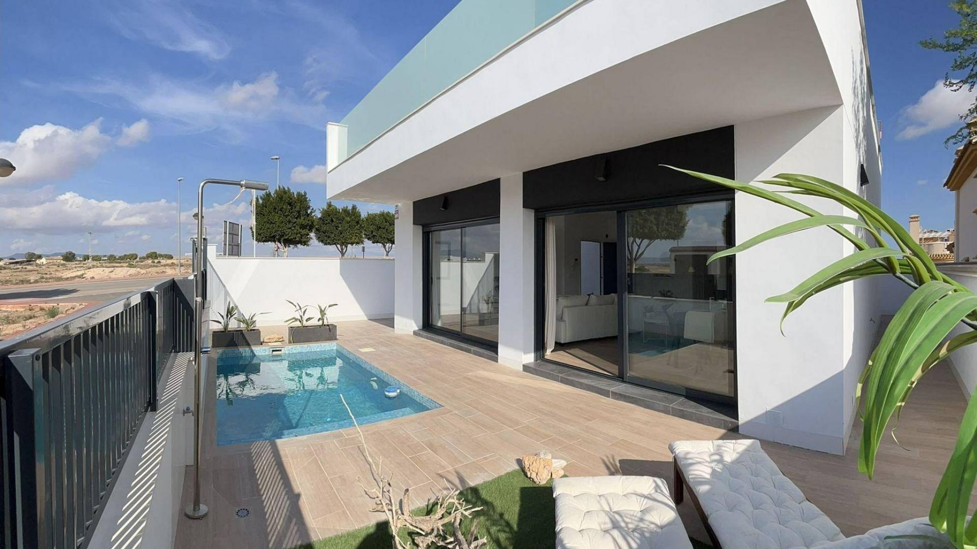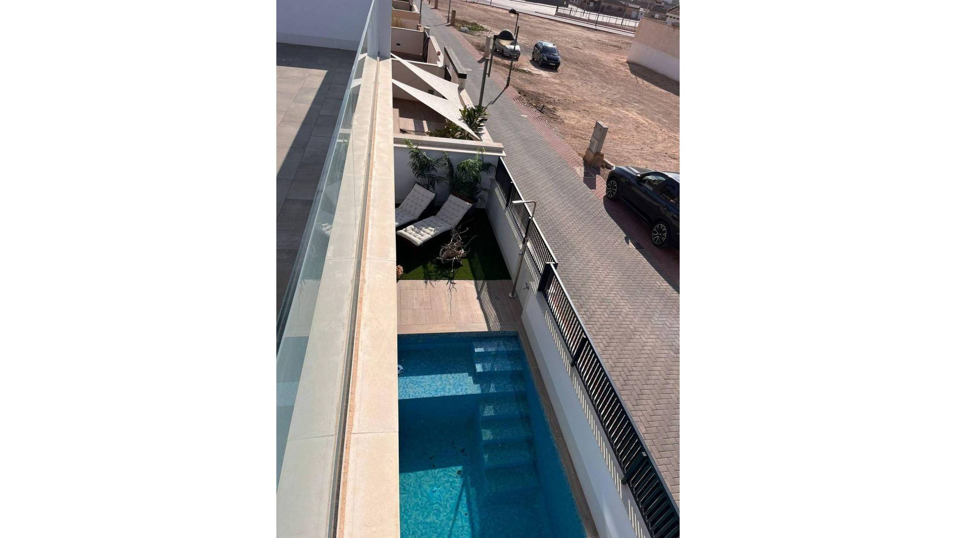 NIEUWBOUW SLEUTELKLARE VILLA IN ROLDAN Nieuwbouw sleutelklare gelijkvloerse villa met een ruim solarium en privézwembad in Roldan.De moderne villa heeft 2 ruime slaapkamers, 2 design badkamers en een halfopen keuken die overloopt in een elegante woonkamer. Privétuin met zwembad en parkeerplaats. Privé solarium ontworpen om maximaal te genieten van alle uren zonlicht. Villa gelegen vlakbij het centrum van Roldán, omringd door eersteklas diensten, groene ruimtes en verschillende gerenommeerde golfbanen op korte afstand. Roldan - ideaal voor golfers, want "Terraza's de la Torre" en "La Torre Golf Resort" liggen vlakbij. Yoga, Pilates, 2 sportscholen en "campo football" bevinden zich allemaal in het stadscentrum. Slechts 15 minuten van de stranden van Mar Menor en 15 minuten van de nieuwe internationale luchthaven van Murcia.