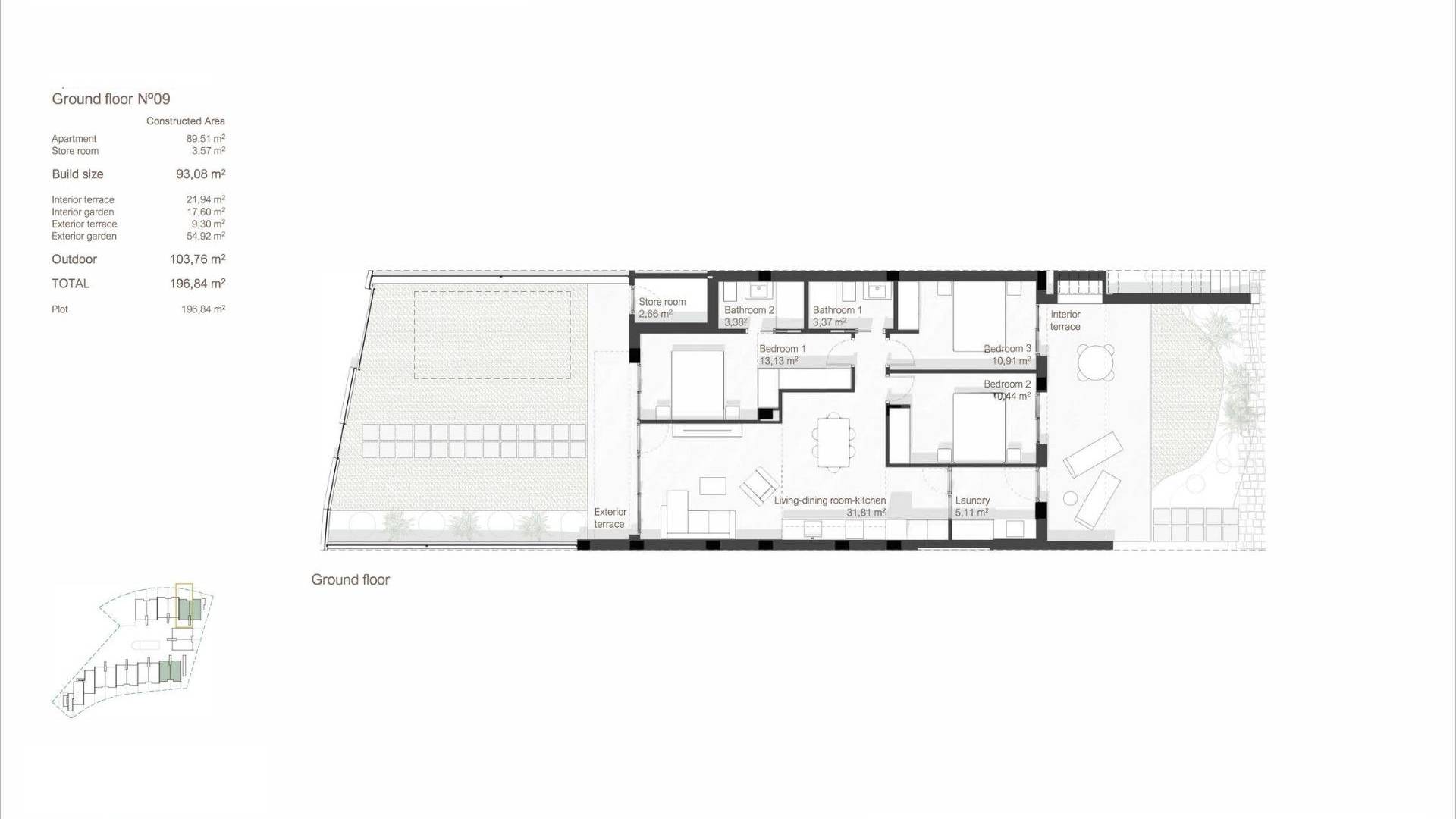 NIEUWBOUW BUNGALOWS IN RODA GOLF Nieuwbouwcomplex gelegen op een perceel op het zuiden in het prestigieuze Roda Golf & Beach Resort, grenzend aan de golfbaan met zijn gemanicuurde fairways en meren. Dit prachtige complex bestaat uit 37 ruime woningen rond een prachtig zwembad en gemeenschappelijke tuinen. Deze moderne residentie biedt een scala aan woningtypes, uitzichten en oriëntaties, afhankelijk van je wensen. Alle bungalowappartementen hebben 3 tweepersoonsslaapkamers, 2 badkamers, een lichte en ruime open woon-eetkamer met Amerikaanse keuken en fantastische buitenruimte. Ze zijn allemaal voorzien van parkeerplaats en een eigen berging. De 18 bungalows op de begane grond hebben een binnenterras en tuin die uitkomen op de gemeenschappelijke tuinen en het zwembad, evenals een groot, omheind terras en tuin aan de achterkant. De 18 penthouses beschikken over een balkon aan de voorzijde van de woonkamer en een fantastisch privé dakterras van 90 m2 met zomerkeuken. Het wooncomplex is ontworpen om maximaal gebruik te maken van ruimte en licht. Schitterend gebouwd en met een breed scala aan extra's, is deze exclusieve promotie een echte oase aan de Costa Calida in Spanje. In het hart van het project ligt een prachtig gemeenschappelijk zwembad, omringd door mediterrane vegetatie. Het ligt de hele dag in de zon dankzij de oriëntatie op het zuiden en is de perfecte plek om te zwemmen, te ontspannen en te genieten van de zon van Murcia. De woningen op de begane grond hebben niet alleen een fantastische binnenruimte, maar ook een prachtig terras aan de voorkant en een extra privétuin die uitkomt in het binnenland van het complex met de prachtige gemeenschappelijke tuinen en het zwembad. Daarnaast bieden ze een terras aan de achterkant en een omheinde tuin voor maximale privacy, met een poort die leidt naar de buitenkant van de urbanisatie. De dubbele oriëntatie zorgt ervoor dat de woningen de hele dag door kunnen genieten van zon en schaduw. Een prachtig onderhouden, door Dave Thomas ontworpen 18-holes golfbaan met meren, strategisch geplaatste bunkers, golvende greens en weelderige mediterrane vegetatie. Een privéresort met 24-uurs beveiliging, een eigen taxistandplaats, een schitterend clubhuis met à la carte restaurant, een fitnessruimte met uitzicht op het meer en een sportterrein. En dit alles op slechts een wandeling of fietstocht van de stranden en het rustige water van de binnenlagune van Mar Menor. Deze residentie heeft een fantastische selectie van gouden zandstranden voor de deur, evenals een breed scala aan watersporten. Geniet van zowel de Mar Menor als de Middellandse Zee vanuit dit paradijs aan de kust van Murcia.