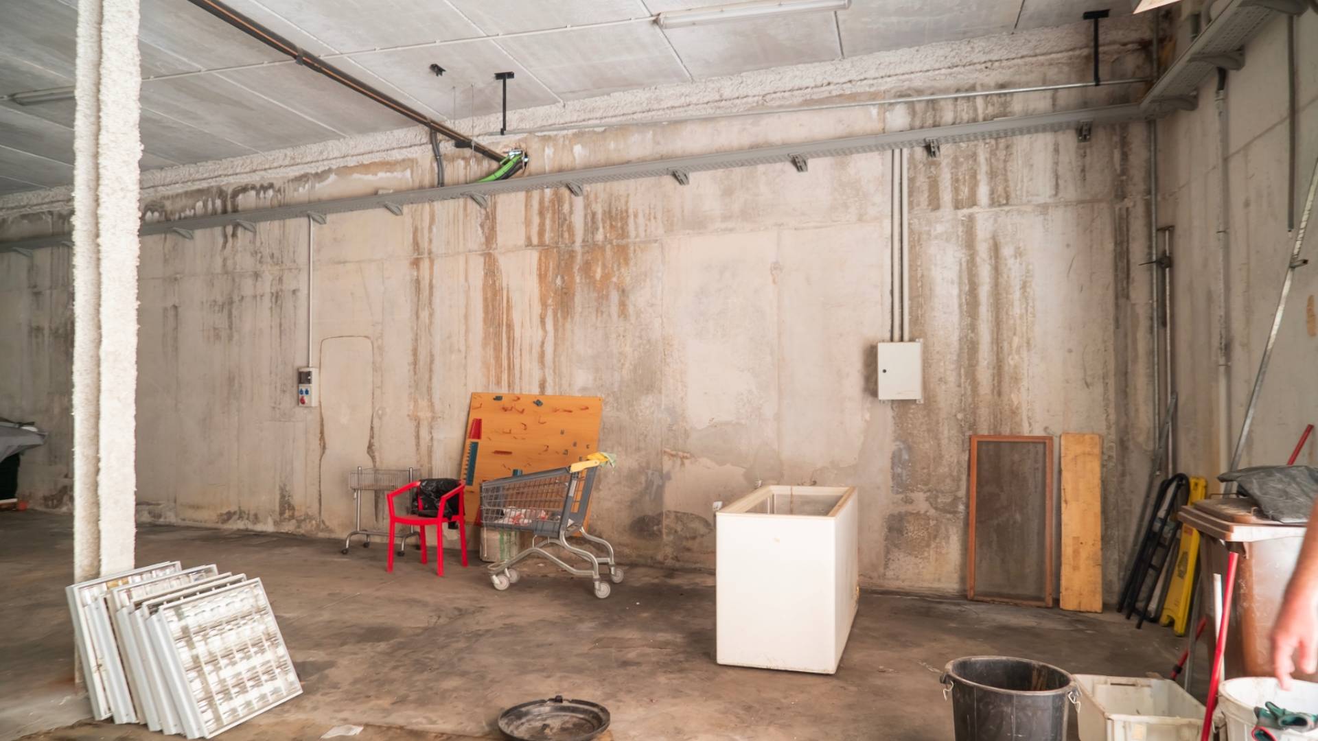 Kelder van 602 m²: open ruimte perfect voor opslag, productie of industrieel gebruik.