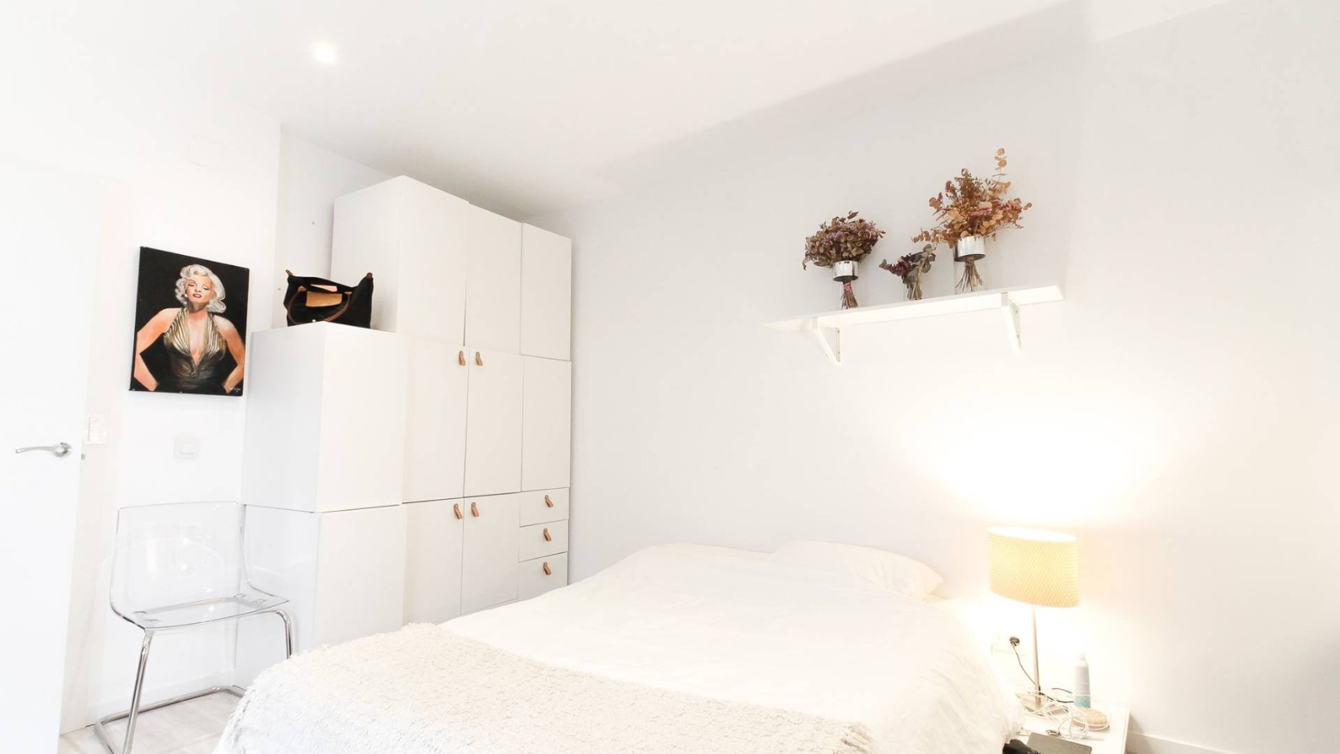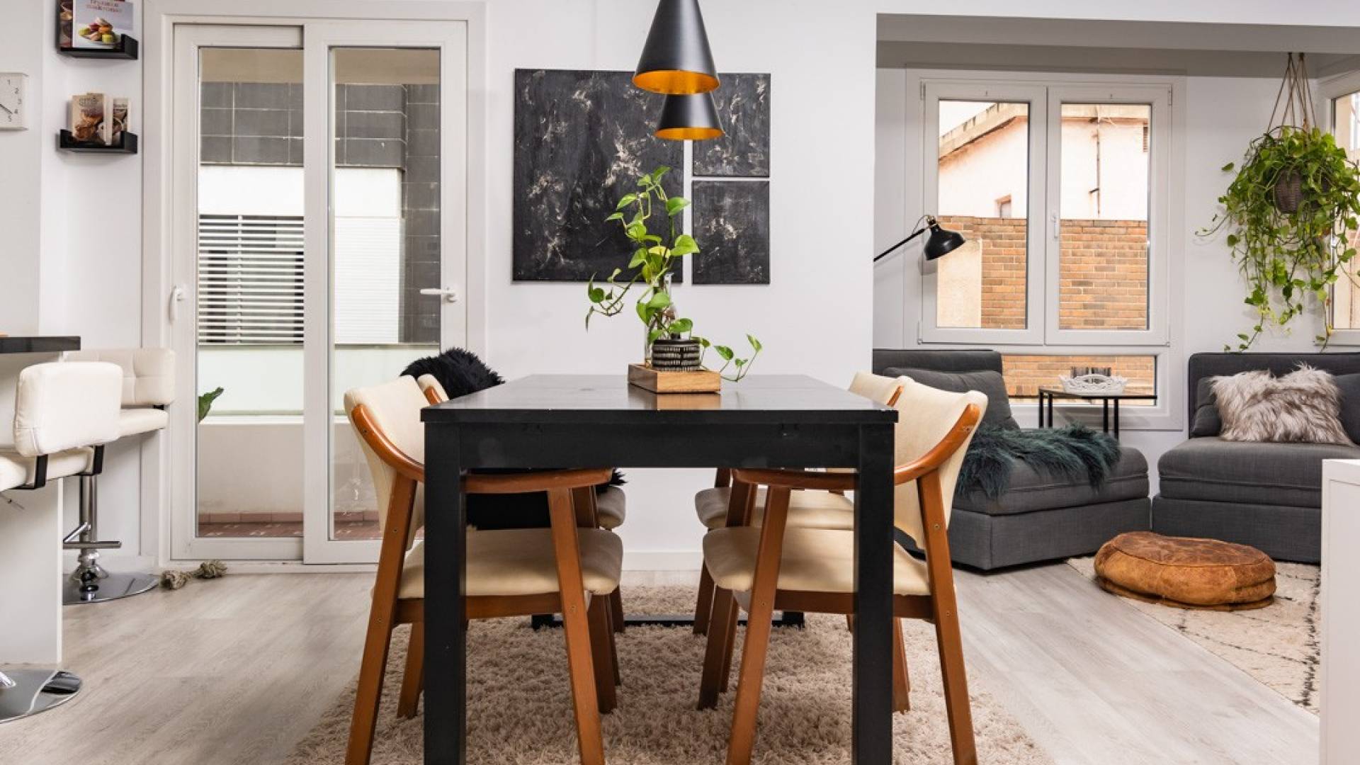 Bij binnenkomst kom je in een gezellige hal die leidt naar een lichte woon- en eetkamer, ideaal om te genieten met familie of vrienden. De woning beschikt over drie hoofdslaapkamers plus een extra kamer, perfect als kantoor of inloopkast. Daarnaast is er een aparte keuken met ingebouwde afvalvermaler in de gootsteen, een volledige badkamer, een gastentoilet en een galerij die uitkomt op een centrale patio, wat zorgt voor natuurlijke ventilatie en licht.