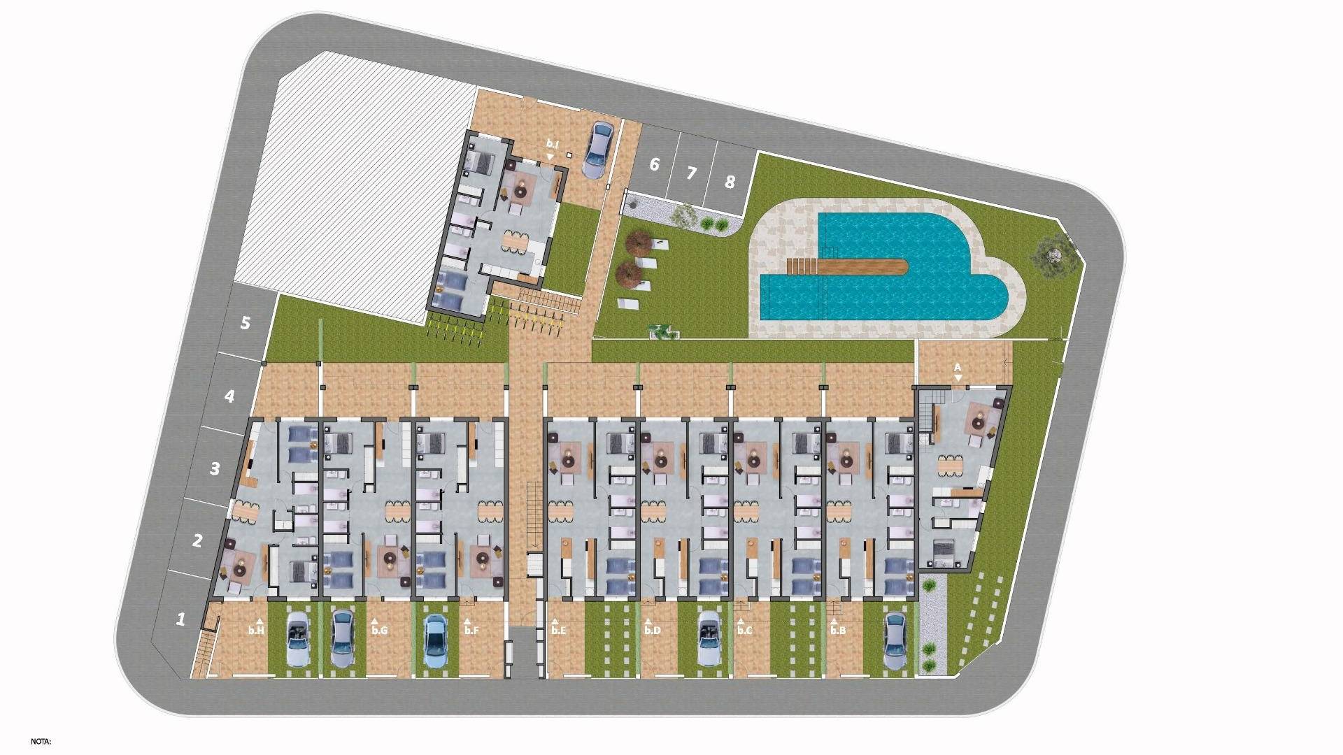 Exclusieve nieuwbouwbungalows in Pilar de la Horadada - Bevoorrechte locatie Een unieke residentie om te genieten van de Middellandse Zee Welkom in dit exclusieve project van 16 bungalows en een hoekwoning met 2 en 3 slaapkamers, ontworpen voor wie op zoek is naar levenskwaliteit en comfort aan de Costa Blanca. Dit moderne complex ligt op loopafstand van het centrum van Pilar de la Horadada en biedt een rustige omgeving, met alle voorzieningen binnen handbereik. De woningen zijn ontworpen om het welzijn van hun eigenaars te maximaliseren: Begane grond met voortuin en patio aan de achterkant. Bovenste verdiepingen met privéterras en solarium met spectaculair uitzicht. Een hoekwoning, met meer ruimte en privacy. De residentie heeft een groot gemeenschappelijk zwembad omgeven door groene zones, ideaal om te ontspannen onder de mediterrane zon. Modern ontwerp en hoogwaardige afwerking Elke woning is zorgvuldig ontworpen om helderheid, functionaliteit en een eigentijdse stijl te bieden. Gepantserde voordeur voor extra veiligheid. Open keuken, voor het gemak geïntegreerd in de woonkamer. Moderne badkamers met douchebakken en installatie van schermen van gehard glas. Pre-installatie van airconditioning in woonkamer en slaapkamers. Warmwaterproductie door individuele ventilatorkachel voor meer energie-efficiëntie. Bovenverdiepingen met pre-installatie van buitenkeuken in de solariums. Bovendien beschikt het complex over een parkeerplaats voor fietsen en een privéparkeerplaats per woning. Pilar de la Horadada - Een plek om het hele jaar door te wonen Pilar de la Horadada ligt in de provincie Alicante en is een ideale bestemming voor wie rust, natuur en eersteklas voorzieningen wil combineren. De prachtige stranden, zoals Playa de las Higuericas, liggen op slechts een paar minuten afstand en bieden goudkleurig zand en kristalhelder mediterraan water. Dit project heeft een onovertroffen locatie, met toegang tot supermarkten, winkels, restaurants en recreatiefaciliteiten op loopafstand. Het gebied beschikt ook over wandelpaden, fietspaden en een breed scala aan sportfaciliteiten. Afstanden naar de belangrijkste bezienswaardigheden Torre de la Horadada Strand - 3 km (5 minuten rijden). Lo Romero Golfbaan - 5 km (10 minuten rijden). Winkelcentrum La Zenia Boulevard - 15 km (15 min. rijden). Luchthaven Corvera (Murcia) - 40 km (40 min. rijden). Luchthaven Alicante - 55 km (55 min. rijden). Reserveer vandaag nog uw woning aan de Costa Blanca Mis de kans niet om een gloednieuwe woning te kopen op een onovertroffen locatie. Neem vandaag nog contact met ons op voor meer informatie en om een bezichtiging te regelen.