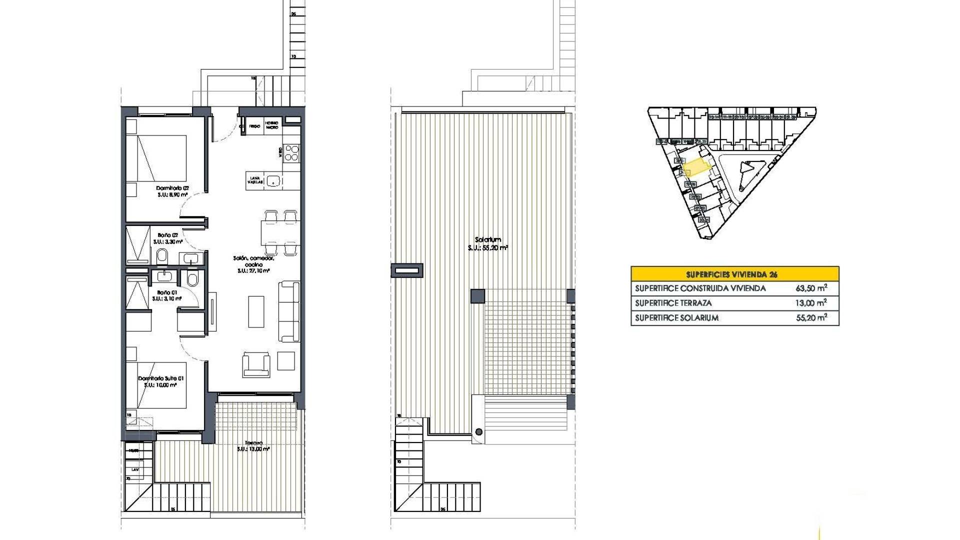 Nieuwbouw wooncomplex in San Fulgencio Eigentijdse appartementen met uitzonderlijke kenmerken Ontdek dit nieuwe wooncomplex in San Fulgencio, met appartementen met 2 en 3 slaapkamers die zijn ontworpen voor comfort, stijl en gemak. Het complex beschikt over: Appartementen op de begane grond met privétuinen Penthouses met privé solariums, pergola's, stopcontacten en waterpunten Elke woning heeft een eigen parkeerplaats en het complex beschikt over een gemeenschappelijk zwembad in mediterrane stijl met een watervlakte van 85 m², omgeven door prachtig aangelegde tuinen. Hoogwaardige afwerking en modern design Deze woningen zijn gebouwd met eersteklas materialen en moderne kenmerken om energie-efficiëntie en een hoge levensstandaard te garanderen: Elektrische rolluiken in slaapkamers Dubbelbeglaasd buitenschrijnwerk met thermische onderbrekingstechnologie Volledig uitgeruste badkamers met badmeubels, spiegels en doucheschermen LED-verlichting in het hele pand Vooraf geïnstalleerde airconditioning voor klimaatbeheersing Toplocatie dicht bij stranden, golf en voorzieningen San Fulgencio is een charmant Spaans stadje met een keur aan restaurants, winkels en essentiële voorzieningen op loopafstand. De strategische ligging biedt snelle toegang tot enkele van de beste attracties aan de Costa Blanca: Internationale luchthaven Alicante-Elche - 30 km (30 min) La Marina strand - 7 km (10 min) Guardamar del Segura - 10 km (12 min) La Marquesa Golfbaan (Ciudad Quesada) - 6 km (8 min) Torrevieja centrum - 18 km (20 min) Winkelcentra, restaurants en vrijetijdsopties - op korte rijafstand Het ideale huis voor de kust Dit nieuwe project in San Fulgencio is perfect voor wie op zoek is naar een moderne vakantiewoning, een vastgoedbelegging of een permanente verblijfplaats aan de Costa Blanca. Met zijn uitstekende locatie in de buurt van het strand, golfbanen en essentiële diensten biedt het een rustige maar goed verbonden levensstijl. Mis de kans niet om een gloednieuw huis te bezitten in San Fulgencio. Neem vandaag nog contact met ons op voor meer informatie of om een bezichtiging te plannen!