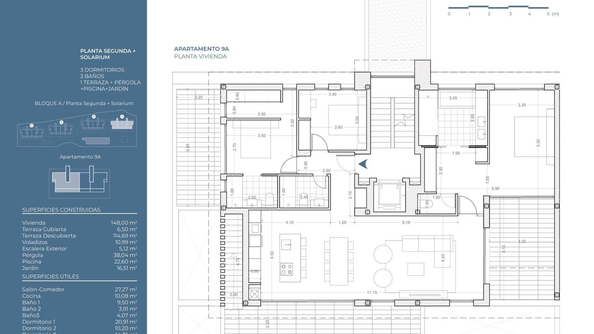 NIEUWBOUW WOONCOMPLEX IN LA NUCIA Nieuwbouw wooncomplex met appartementen en penthouses met gemeenschappelijk buitenzwembad, parkeerplaats, berging, lift, fitnessruimte, gemeenschappelijke spa met verwarmd binnenzwembad, sauna, jacuzzi in La Nucia. Moderne woningen met 2 en 3 slaapkamers, allemaal met 2 badkamers, open keuken met ruime woonkamer, inbouwkasten, terras, ondergrondse parkeerplaats. Penthouses hebben privé solariums met het zwembad. Uitmuntendheid in haar avant-garde architectuur, prachtige afwerking en high-end diensten, een droom urbanisatie voor diegenen die op zoek zijn naar het hoogste niveau van comfort en distinctie. Interieurs die elegant design en moderne verfijning combineren, creëren ruimtes die van elke dag een uitzonderlijke ervaring van comfort en welzijn maken. Duitse designkeuken, Burger of gelijkwaardig, met Silestone werkblad, volledig uitgerust. Siemens apparatuur of vergelijkbaar. Inductiekookplaat, afzuigkap, oven en koelkast en vaatwasser geïntegreerd in de eenheden. Verstevigde toegangsdeur tot het pand met veiligheidsslot, afgewerkt met gelakte lambrisering die past bij het interieur. Optioneel slot met afstandsbediening vanaf smartphone of tablet. Modulaire garderobekasten met draai- of schuifdeuren, gelakt in dezelfde kleur als de rest van het interieur, inclusief kofferruimte, lades en ophangrail. De woning wordt voorbereid om snel internet te kunnen contracteren. Er komt elektrische vloerverwarming met laag verbruik in de badkamers. De video-intercom is elektronisch met kleurenbeeld en heeft een geïntegreerde afstandsbediening vanaf telefoon of tablet. Samsung airconditioning. Elke kamer heeft zijn eigen interieurmachine en onafhankelijke bediening. De airconditioning heeft een afstandsbediening. Deze kan worden bediend vanaf een telefoon of tablet. De volledige installatie van het airconditioningsysteem zal worden uitgevoerd, uitgerust met een warmtepomp om zowel te koelen als te verwarmen. Er worden ook kanalen van glasvezel gebruikt. De binnenunits worden in het verlaagde plafond in de badkamers en de gang geplaatst, terwijl de buitenunit in de toegewezen ruimte van het project wordt geïnstalleerd. Ventilatie. Installatie van binnenluchtverversing in woningen met afzuigopeningen in badkamers en keuken en klok voor het programmeren van het tijdschema. Zwembad voor gemeenschappelijk gebruik met chloorzout en automatische controle van PH en chloor. In de kelder komt een fitnessruimte, verwarmd binnenzwembad, jacuzzi, sauna, stoombad, chromotherapie en kleedkamers met badkamers. Grote terrassen en tuinen met inheemse planten voor meervoudig gebruik in de gemeenschappelijke ruimte. De omtrek van het perceel zal worden beplant met planten die een privé-sfeer zullen creëren in de omheining als ze groeien. Er komt een videobewakingssysteem voor de gemeenschappelijke ruimtes. Gelegen op een bevoorrechte locatie, tussen Nucia en Altea, geniet deze residentie van een uitzonderlijke omgeving en uitstekende diensten binnen de urbanisatie.
