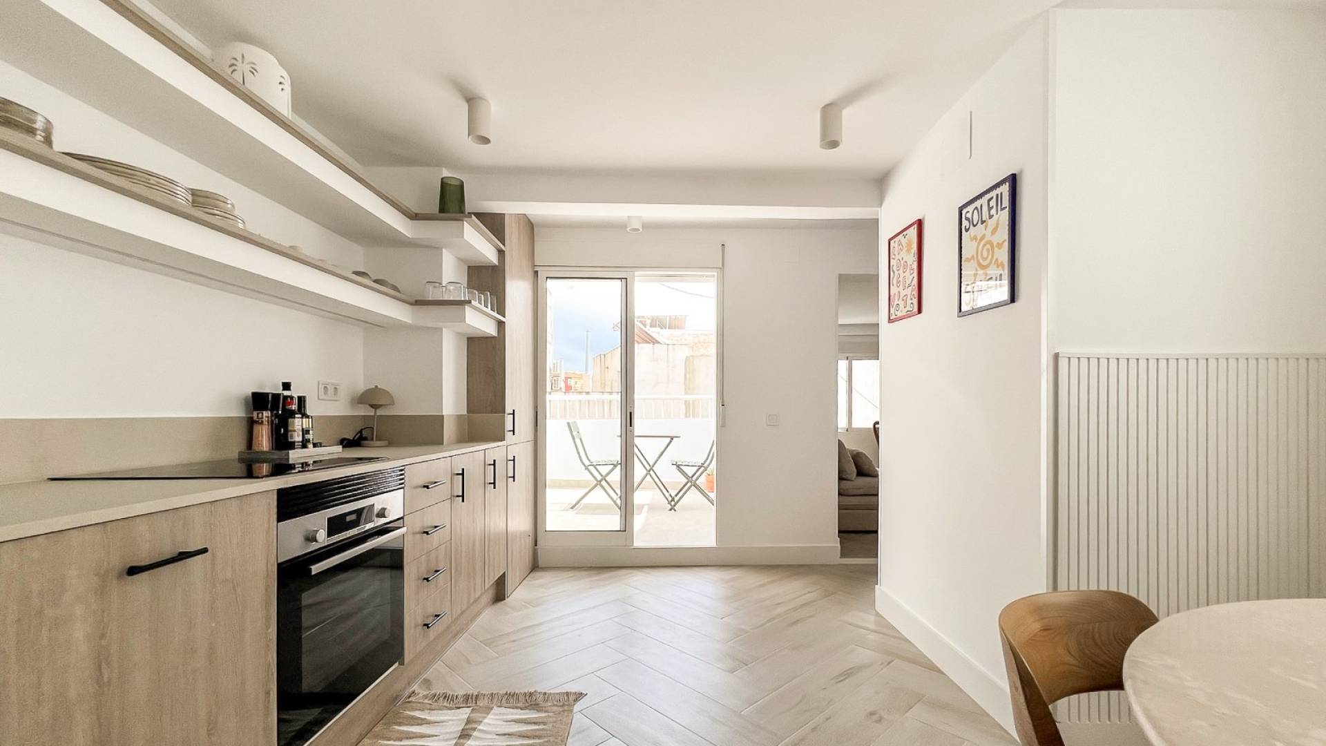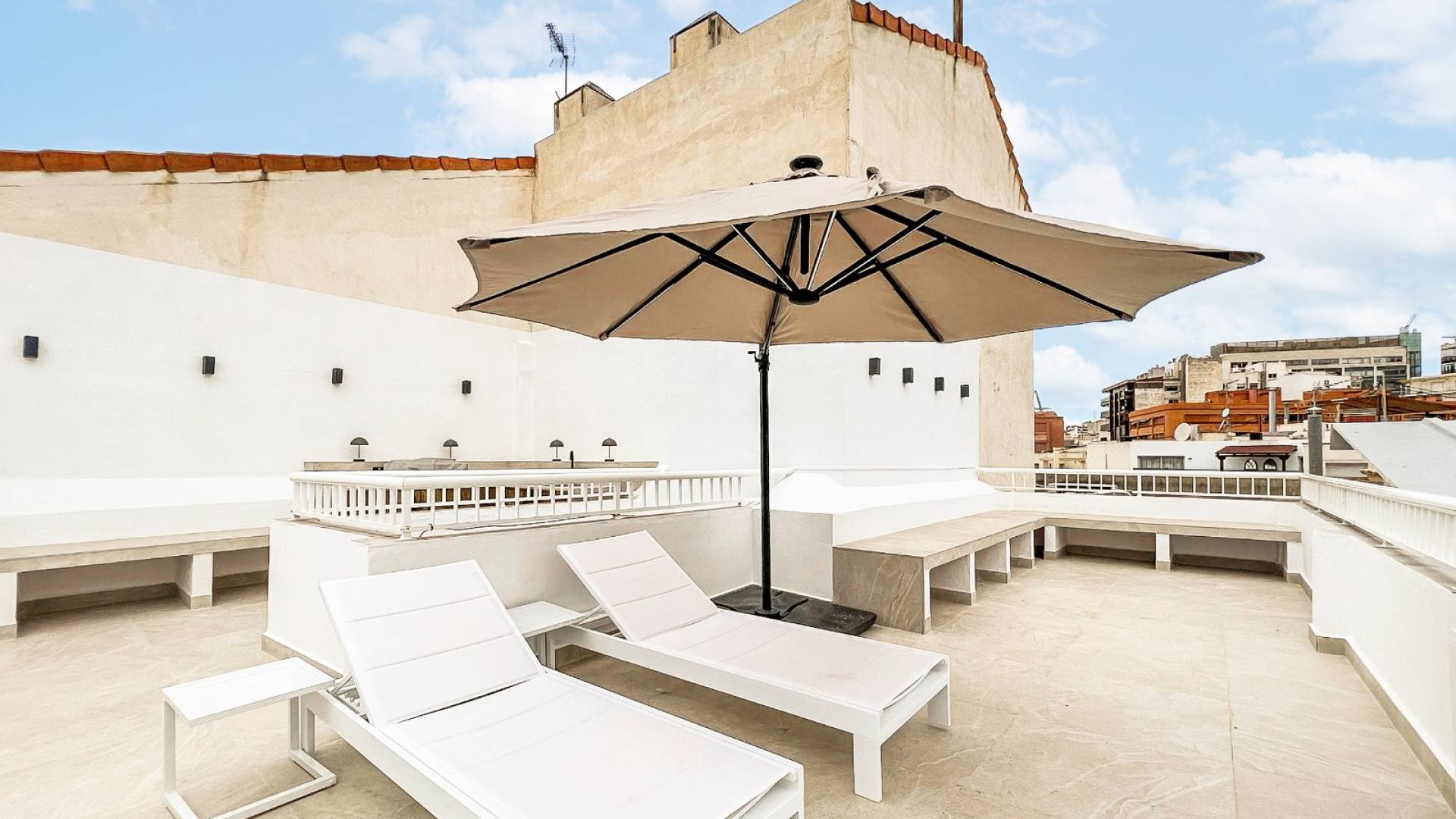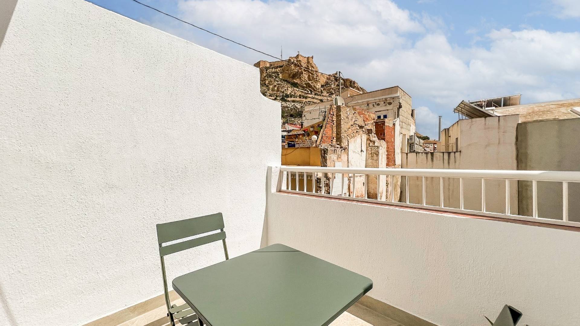 Gelegen op de vierde verdieping biedt dit penthouse 45 m² woonruimte en 40 m² aan privéterrassen, een uitzonderlijke meerwaarde in het stadscentrum. De twee terrassen bieden zon, privacy en open uitzicht over Alicante, ideaal voor eigen gebruik of toeristische verhuur.