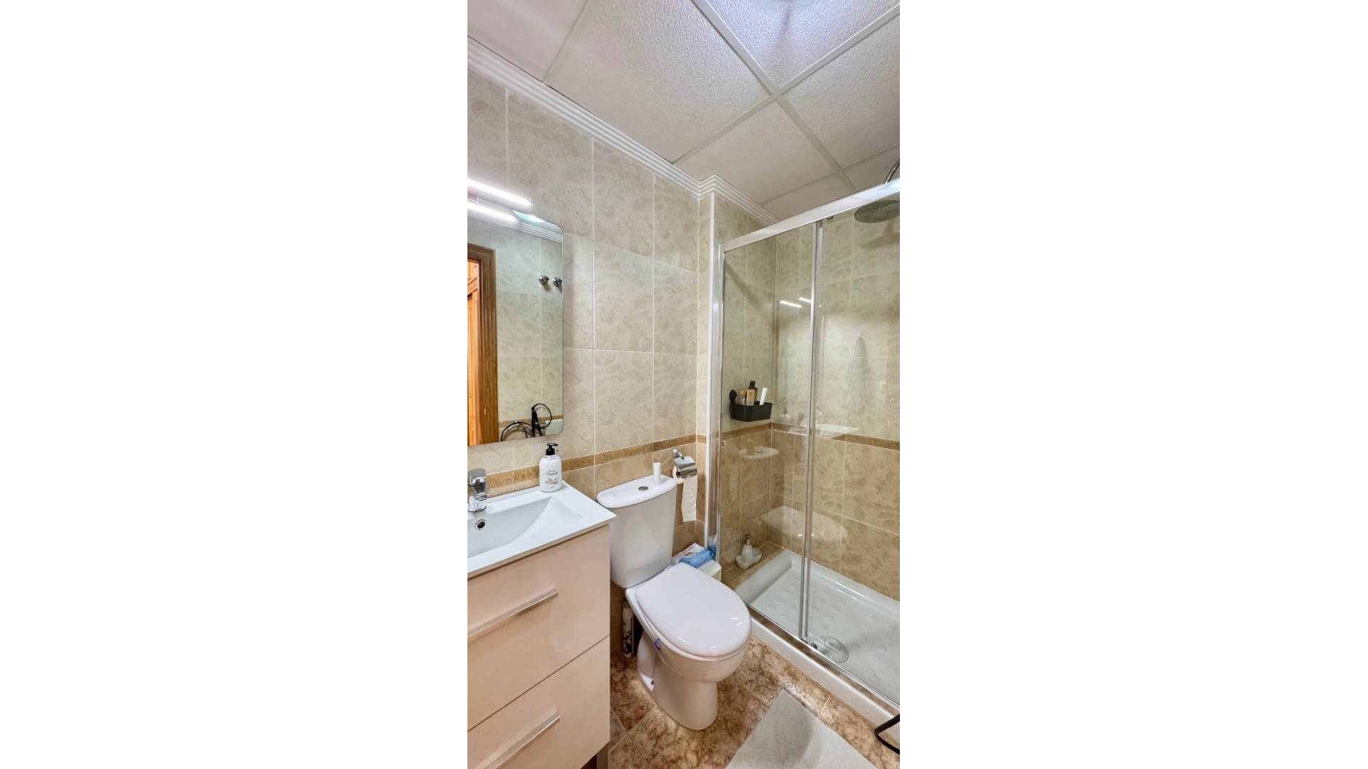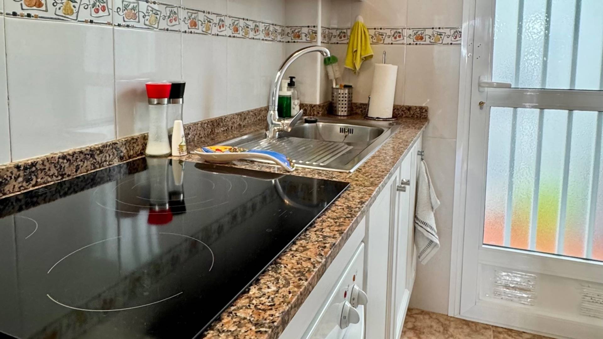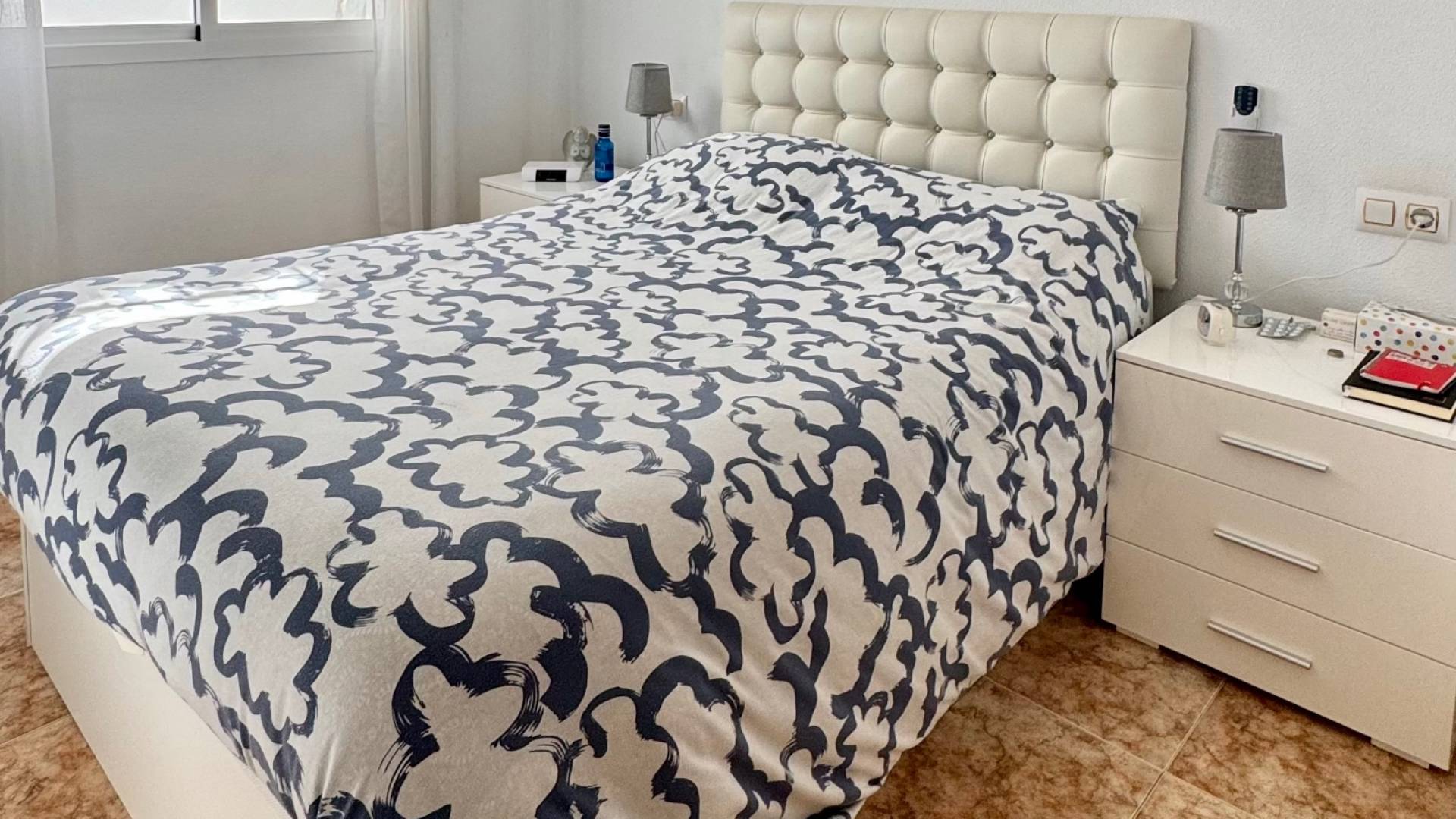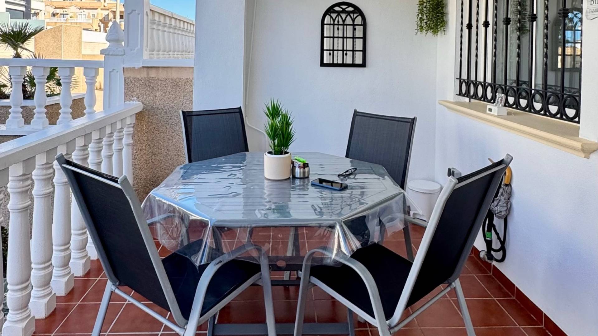 Deze charmante bungalow, gelegen in een aangenaam wooncomplex met een gemeenschappelijk zwembad, biedt een ideale omgeving voor een zonnige vakantie. De woning beschikt over twee slaapkamers en twee badkamers, een lichte woonkamer met toegang tot een overdekt terras en een groot terras op het noordwesten dat 's middags van de zon geniet, perfect om te genieten van het mediterrane klimaat. De volledig uitgeruste keuken wordt aangevuld door een overdekt terras aan de achterzijde, waar handig de wasmachine en boiler geplaatst kunnen worden. De woning is tevens voorzien van airconditioning (warm en koud), wat het hele jaar door optimaal comfort garandeert. Daarnaast beschikt de woning over een ondergrondse parkeerplaats en een berging, wat waardevolle extra opbergruimte biedt. Het grootste voordeel is de toplocatie tussen Punta Prima en Playa Flamenca, met alle voorzieningen op loopafstand: winkels, restaurants en recreatiemogelijkheden. De zee ligt op slechts 2 km afstand, waardoor de stranden gemakkelijk te bereiken zijn, ook zonder auto. Een praktische, comfortabele woning, perfect gelegen om optimaal te genieten van de Costa Blanca.