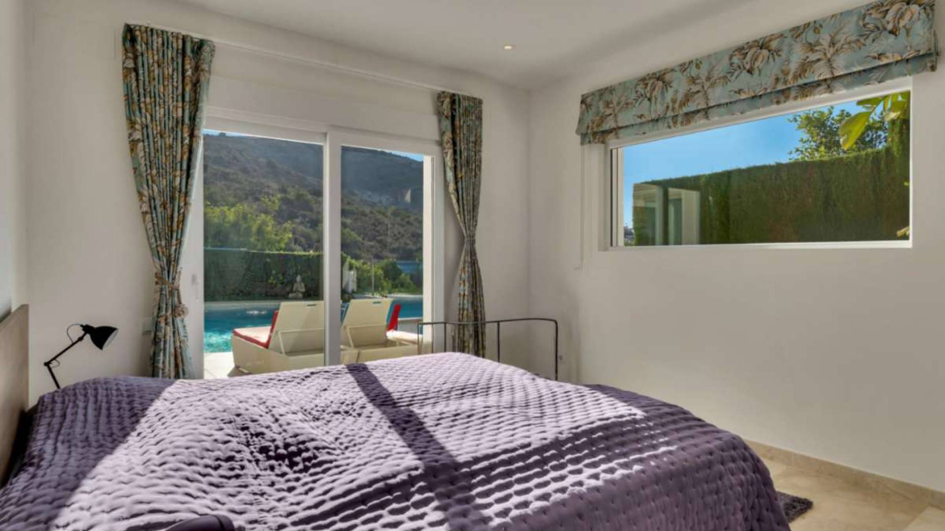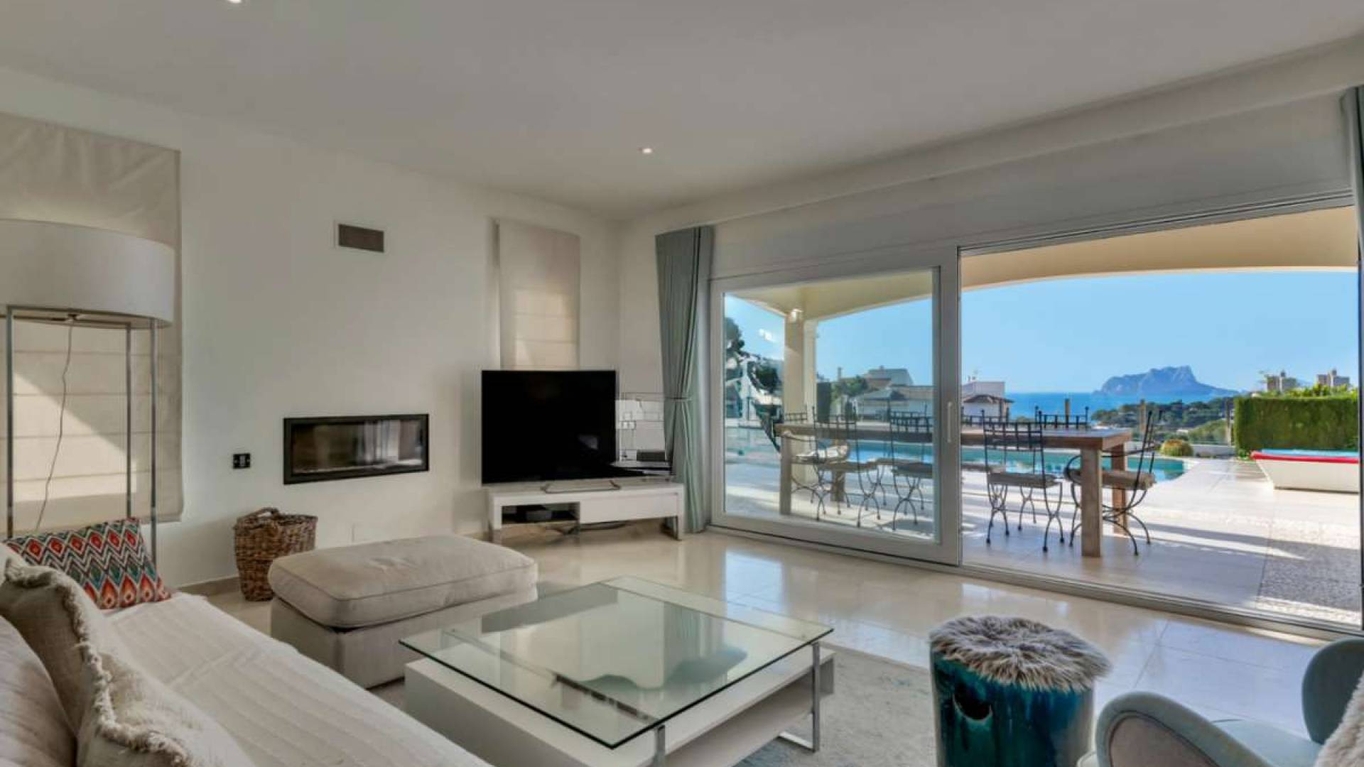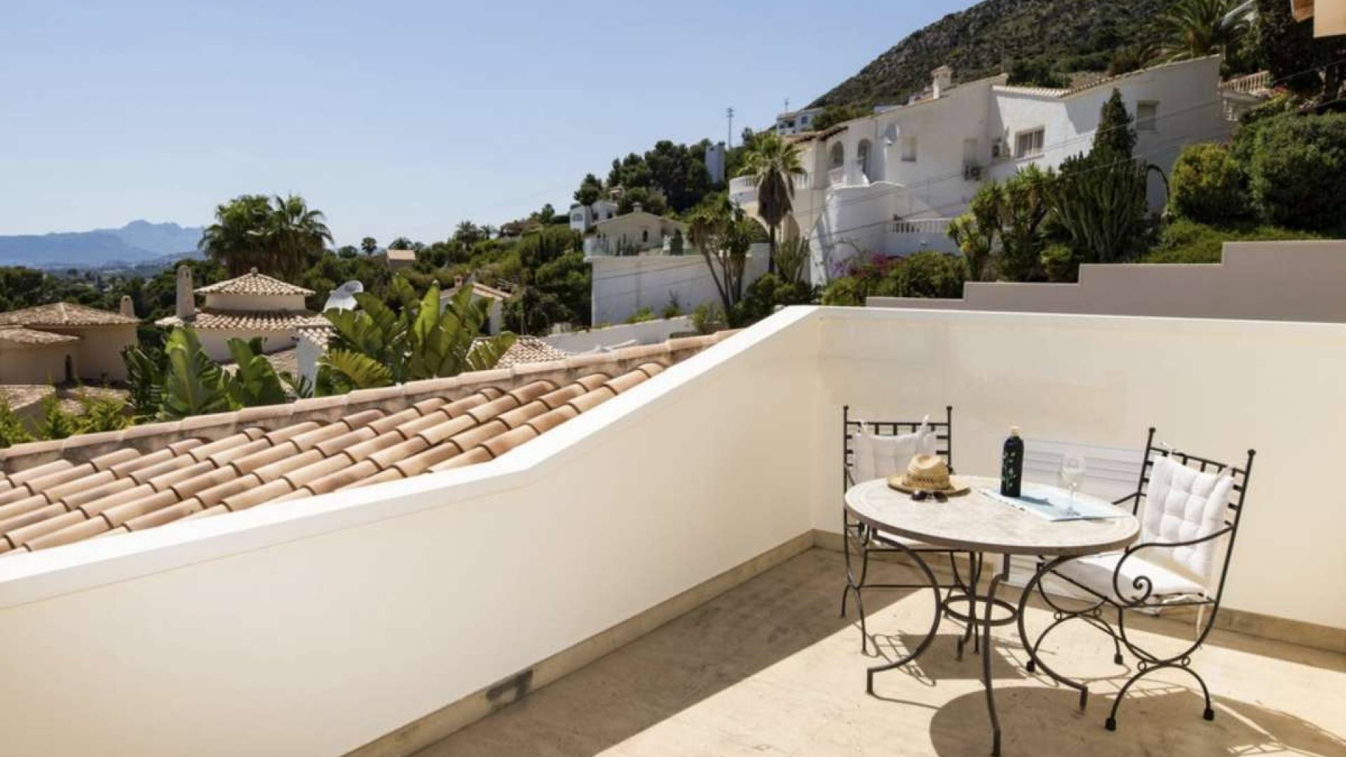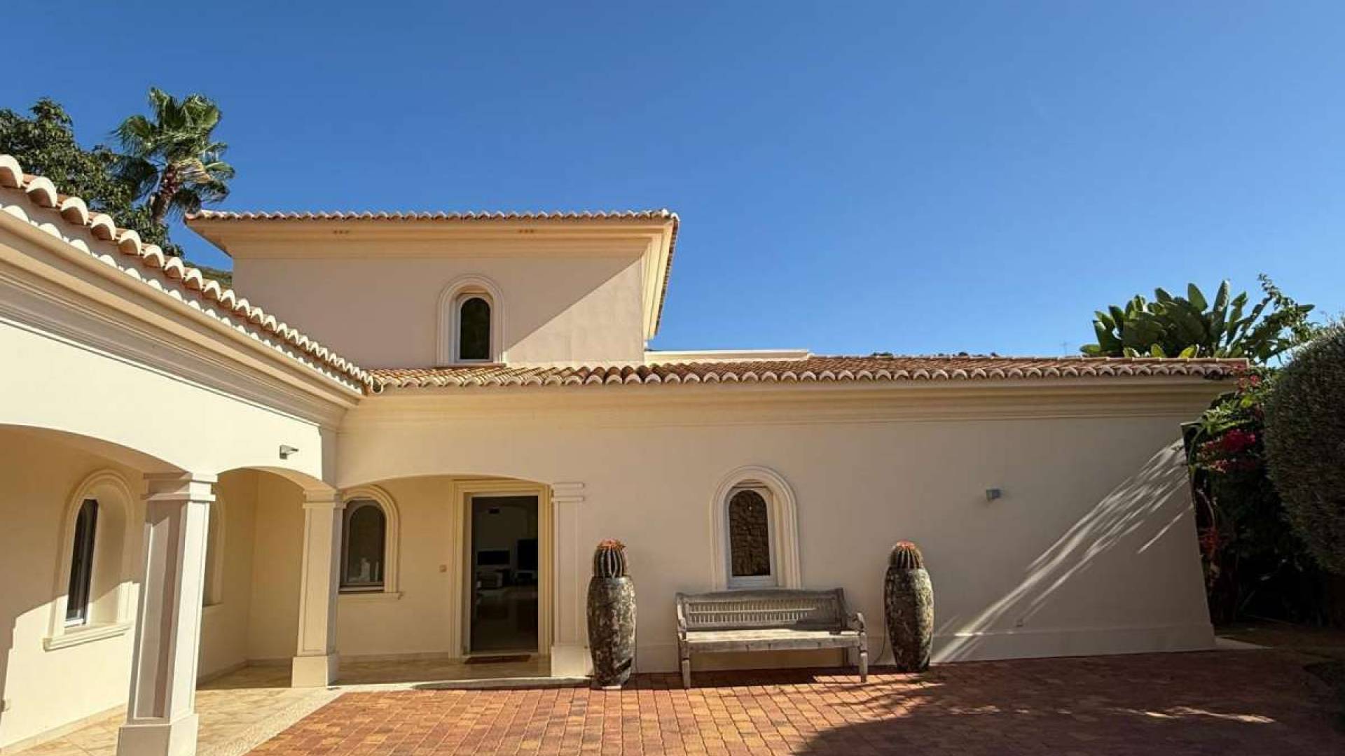 Droomvilla boven de baai van El Portet in Moraira – Adembenemend uitzicht & luxe uitrustingGelegen op een van de meest gewilde locaties van Moraira, ligt deze ruime villa in Spaanse stijl op slechts 900 meter boven de prachtige baai van El Portet. Hier geniet u van een adembenemend uitzicht op zee, rust en privacy, en een uitstekende bereikbaarheid van het strand, lokale restaurants, winkels en het charmante centrum van Moraira (ca. 2 km).---Belangrijkste gegevens:Woonoppervlakte: ca. 373 m²Perceelgrootte: ca. 836 m²Slaapkamers: 4 – elk met eigen badkamer en airconditioningBadkamers: 4Privézwembad: 9 x 4 m met zeezicht en buitendoucheCapaciteit: tot 8 personen--- Buitenruimtes:Overdekt terras met grote houten eettafel voor 8 personenRuim zonneterras met ligstoelen, Bose-buitenspeakers en schaduwrijke loungehoekPanoramisch uitzicht op zee en bergen vanaf meerdere niveausPrivézwembad met Romeinse trap en onderwaterverlichtingBasketbalring, tafeltennistafel, optrekstang – perfect voor gezinnen en sportieve gastenVerzorgde tuin met bomen en hagen, grenzend aan een groene zoneCarport voor 2 auto’s, plus extra parkeerplaatsen op het afgesloten terrein met elektrische poort--- Uitrusting & hoogtepunten: Lichte, open woon- en eetkamer met zeezicht en directe toegang tot het terrasVloerverwarming, dubbel glas, elektrische rolluikenZonnepanelen (fotovoltaïsch systeem) – voordelige stroomvoorziening overdagAirconditioning in woon-/eetgedeelte en in alle slaapkamersModerne open keuken, volledig uitgerust met Bosch-apparatuur (keramische kookplaat, oven, vaatwasser, magnetron, koffiezetapparaat, broodrooster, enz.)Elegante crèmekleurige marmeren vloer door het hele huis4 stijlvol ingerichte slaapkamers, elk met en-suite badkamer, tv, horren en aircoMaster bedroom met groot privébalkon en panoramisch uitzicht op zee en de Sierra BerniaWijnkelder (bodega) in het souterrain – ideaal voor wijnliefhebbersPrivébioscoopruimte met 85-inch tv – perfect voor filmavonden of gamen---Deze villa combineert luxe, comfort en een van de beste locaties aan de Costa Blanca. Of het nu gaat om eigen gebruik, als luxe vakantiewoning of als hoogwaardig verhuurobject – deze woning voldoet aan alle wensen.