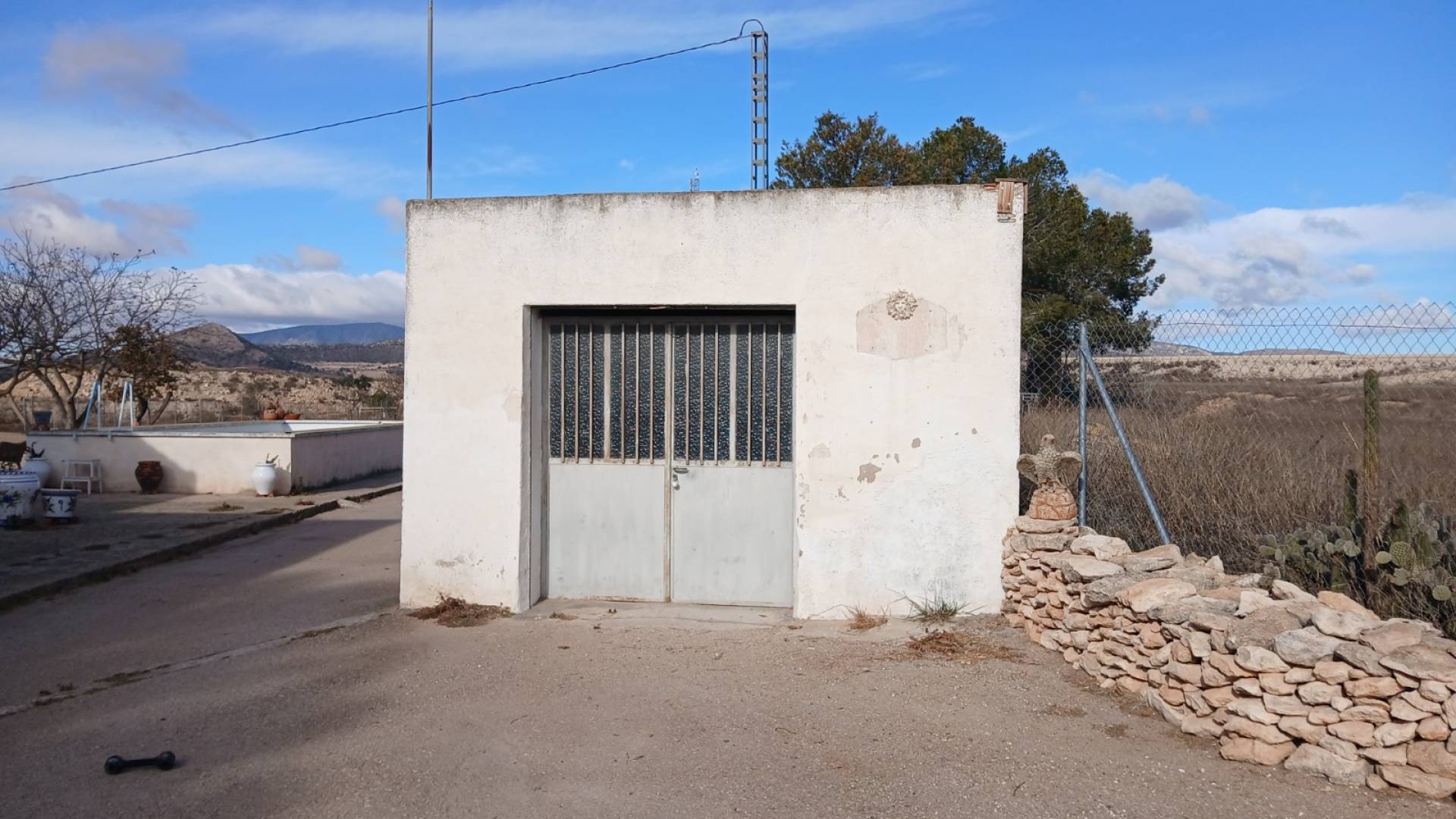 Dit paardenopject ligt tussen Monovar en Pinoso en heeft 2 slaapkamers plus een tweede woonkamer of slaapkamer met een grote opslagruimte. De opslagruimte kan ook worden gebruikt als bijvoorbeeld een standruimte, kantoorruimte of eenpersoonsslaapkamer. De open woon- en eetkamer is voorzien van een mooie houtkachel om u warm te houden op de koudere dagen. Er is ook airconditioning met warmte- en koudefunctie. De aparte keuken heeft een deur die naar de achterkant van het pand leidt, waar zich een aparte wasruimte bevindt. Verder is er een ruime badkamer met inloopdouche. Alle ramen zijn voorzien van dubbele beglazing, horren en tralies. Extra informatie: vaste elektriciteitsaansluitingwaterreservoir van 8000 liter (regelmatige en betrouwbare leveringsservice voor slechts 95 euro)beerputbovengronds zwembad dat gerenoveerd moet wordenlokale houtleveringsservice er zijn enkele olijfbomen, evenals amandel- en vijgenbomen Paardenfaciliteiten: 2 stallen met automatische waterbakken en rubberen mattenpaddock van 1800 m22 of mogelijk 3 extra velden voor extra weidegang (momenteel niet omheind) of ruimte om een manege aan te leggenactieve REGA-licentie voor 2 paarden, kan worden uitgebreid na toevoeging van meer stallen/veldschuilplaatsen.hooiopslagzadelkamerpaardentrainingsveldprachtige buitenritten direct vanaf huismeerdere lokale hooileveranciers die hooi bij u thuis leveren, kleine en grote balenhoefsmid & barefoot trimmer die het gebied bestrijktuitstekende paardenvoerwinkel in Saxuitstekende veterinaire zorgruimte voor trailer / paardenbox / meerdere auto's Omgeving: Gelegen in een rustige omgeving, maar slechts 10 minuten naar Monovar en 20 minuten naar Pinoso