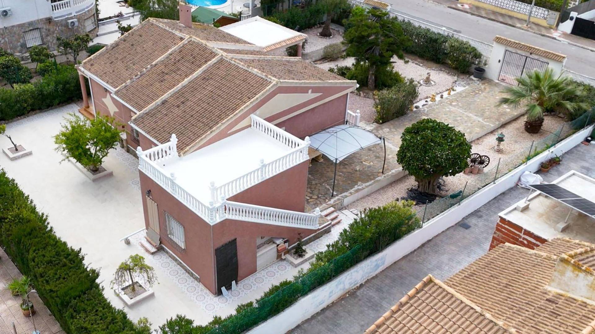 Te koop: ruime vrijstaande woning met 4 slaapkamers en 2 volledige badkamers, woonoppervlakte van 156 m², gelegen op een verzorgd perceel van 816 m² met tuin en aparte garage, in de gewilde wijk San Luis (Avenida Landete), Torrevieja. De woning is gebouwd in 1990 en gelijkvloers, wat zorgt voor optimaal wooncomfort. Beschikt over een privé-solarium met panoramisch uitzicht op de Roze Lagune en een groot entree-terras. Dankzij de zuidelijke ligging geniet de woning de hele dag van natuurlijk licht. Indeling en kenmerken: - Bestraat terras van 20 m² - Lichte woonkamer met volledig uitgeruste open keuken - Boog tussen keuken en woonkamer met toegang tot de tuin - Brede gang naar de slaapkamers - 4 aparte slaapkamers met inbouwkasten - Bedden van 135 cm in elke slaapkamer - 2 complete badkamers - Privé-solarium met uitzicht op de lagune - Groot perceel met zwembadpotentieel - Aparte garage Perfect voor permanente bewoning, vakantie of verhuur.