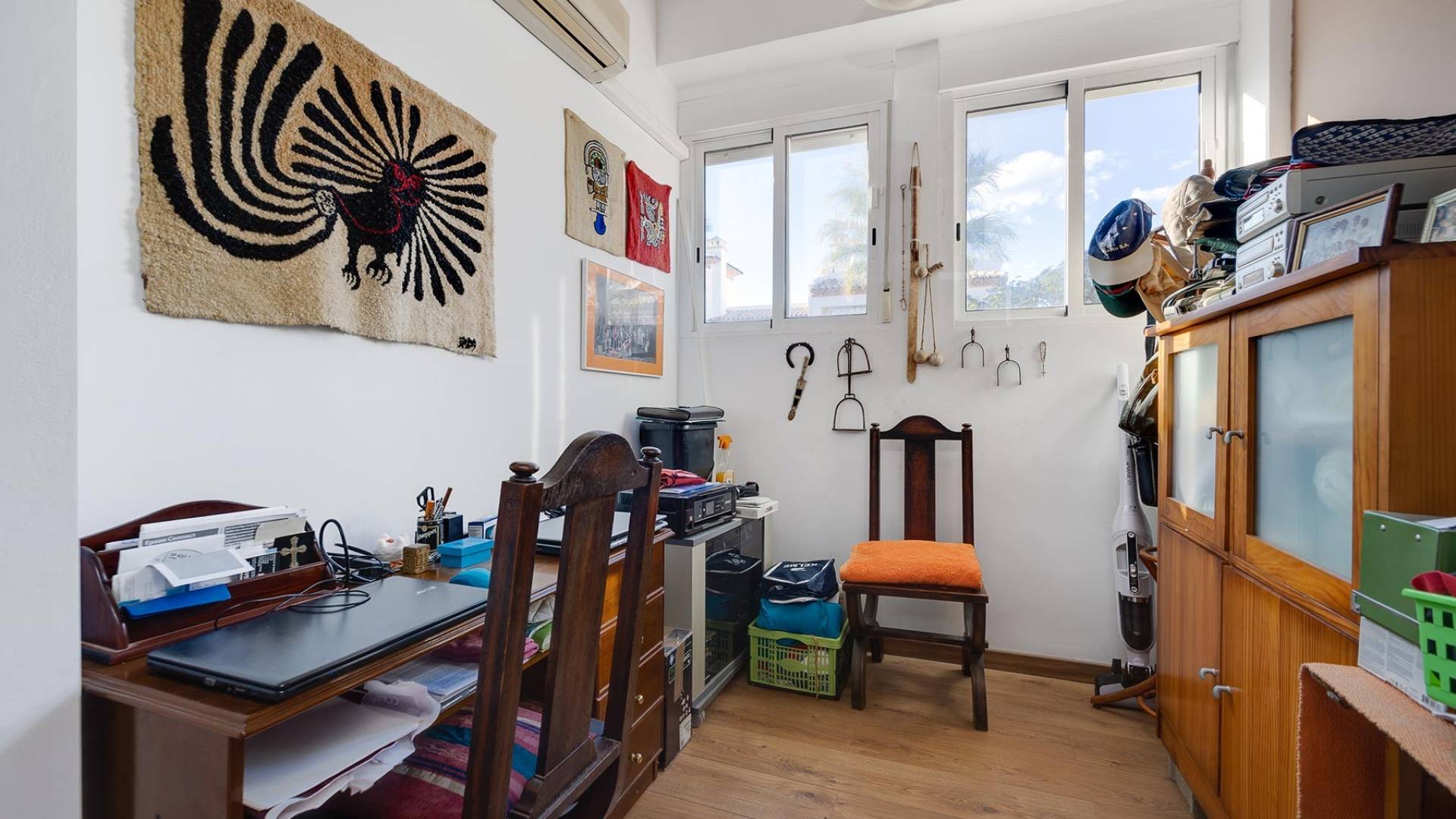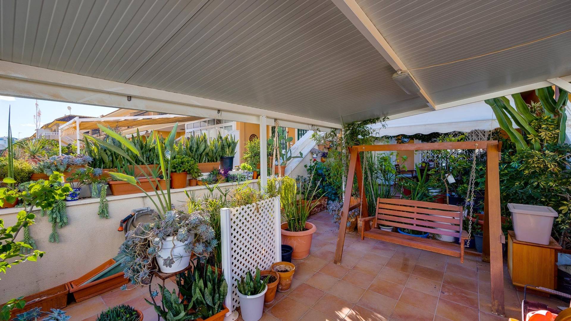 Ontdek deze ruime tussenwoning in Orihuela Costa, gelegen in een van de meest populaire gebieden van de Costa Blanca, op slechts een steenworp afstand van het bekende La Zenia Boulevard en omringd door alle dagelijkse voorzieningen. Een perfecte omgeving om te genieten van de mediterrane levensstijl, met een uitstekend klimaat, nabijheid van de zee en alles binnen handbereik. De woning is verdeeld over drie verdiepingen en beschikt over 4 slaapkamers en 2 badkamers, wat zorgt voor een comfortabele en functionele indeling voor het hele gezin. Er is een privékavel met parkeerzone en een uitstekende zuidoriëntatie, die de hele dag natuurlijk licht biedt. De woning wordt volledig gemeubileerd en uitgerust met airconditioning verkocht. Het complex beschikt ook over een gemeenschappelijk zwembad, ideaal om af te koelen in de zomer en te ontspannen in een rustige, goed onderhouden omgeving. Gelegen nabij de stranden van La Zenia en Playa Flamenca, evenals prestigieuze golfbanen zoals Villamartín, Las Ramblas en Campoamor. De Luchthaven van Alicante ligt op minder dan 45 minuten afstand. Een unieke kans voor wie op zoek is naar levenskwaliteit, comfort en een uitstekende locatie in Orihuela Costa. Neem vandaag nog contact met ons op voor meer informatie of een bezichtiging.