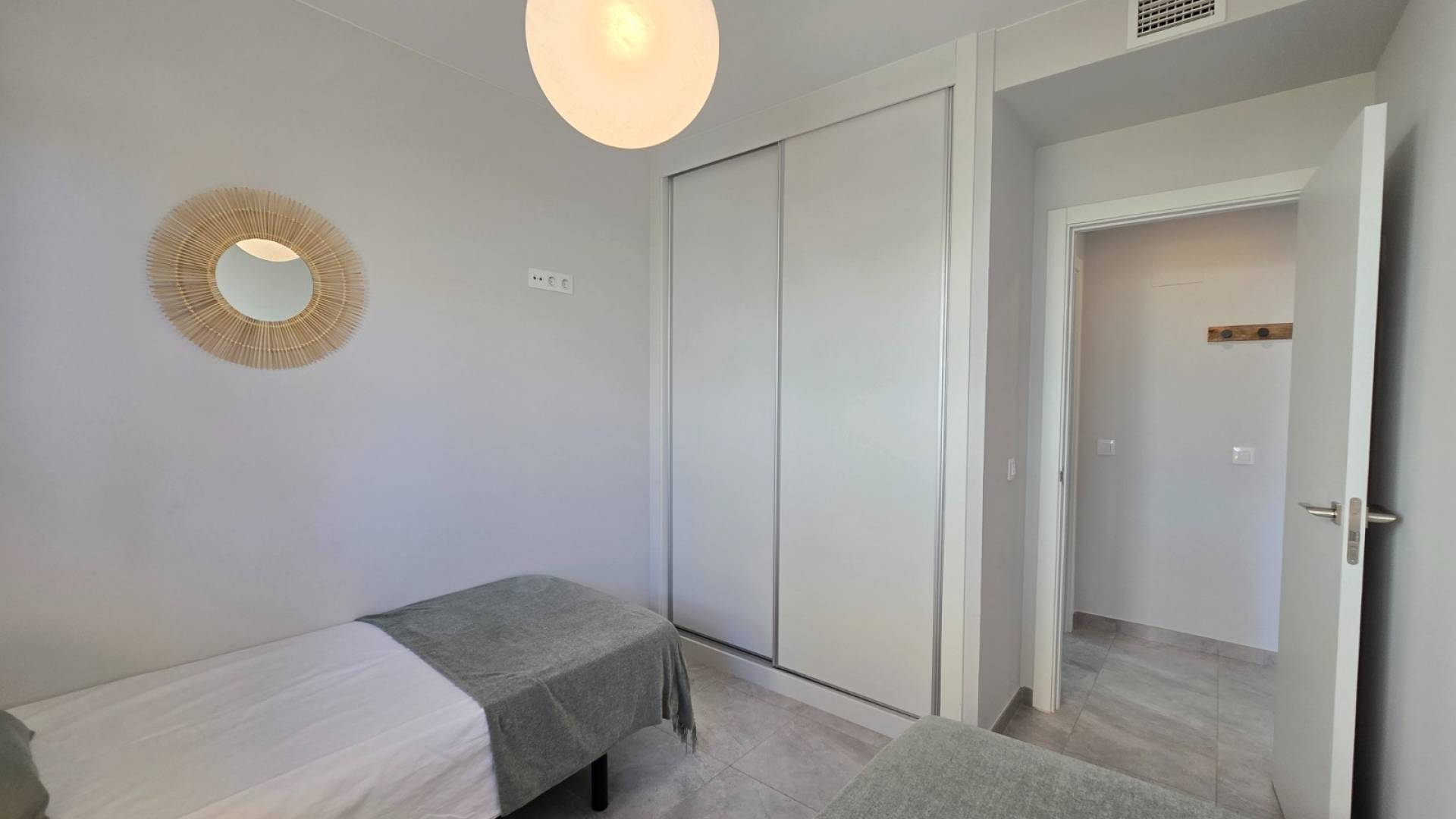 Ontdek dit prachtige, moderne appartement van slechts 2 jaar oud, gelegen in een van de mooiste urbanisaties van Villamartin, Orihuela Costa. Dit ruime gelijkvloerse appartement biedt het perfecte evenwicht tussen comfort, stijl en luxe. De woning beschikt over 2 slaapkamers en 2 moderne badkamers, waarvan één en-suite. De open keuken is volledig uitgerust en sluit naadloos aan op de lichte woonkamer met directe toegang tot het ruime terras. Vanuit hier geniet je van rechtstreekse toegang tot de fraai aangelegde gemeenschappelijke tuin, compleet met een zwembad en jacuzzi – ideaal om te ontspannen en te genieten van het mediterrane klimaat. De urbanisatie is modern, uitstekend onderhouden en omgeven door veel groen en beplanting, wat zorgt voor een rustige en aangename sfeer. Daarnaast beschikt het appartement over een ondergrondse garageplaats, wat extra gemak en veiligheid biedt. Gelegen op een toplocatie in Villamartin, op korte afstand van winkels, restaurants, golfbanen en de stranden van Orihuela Costa, is dit appartement ideaal als vaste woning, vakantieverblijf of investering. Twijfel niet een boek snel een bezichtiging! Suma: Moet nog worden toegewezen. Gemeenschapskosten: 1484 euro/jaar.