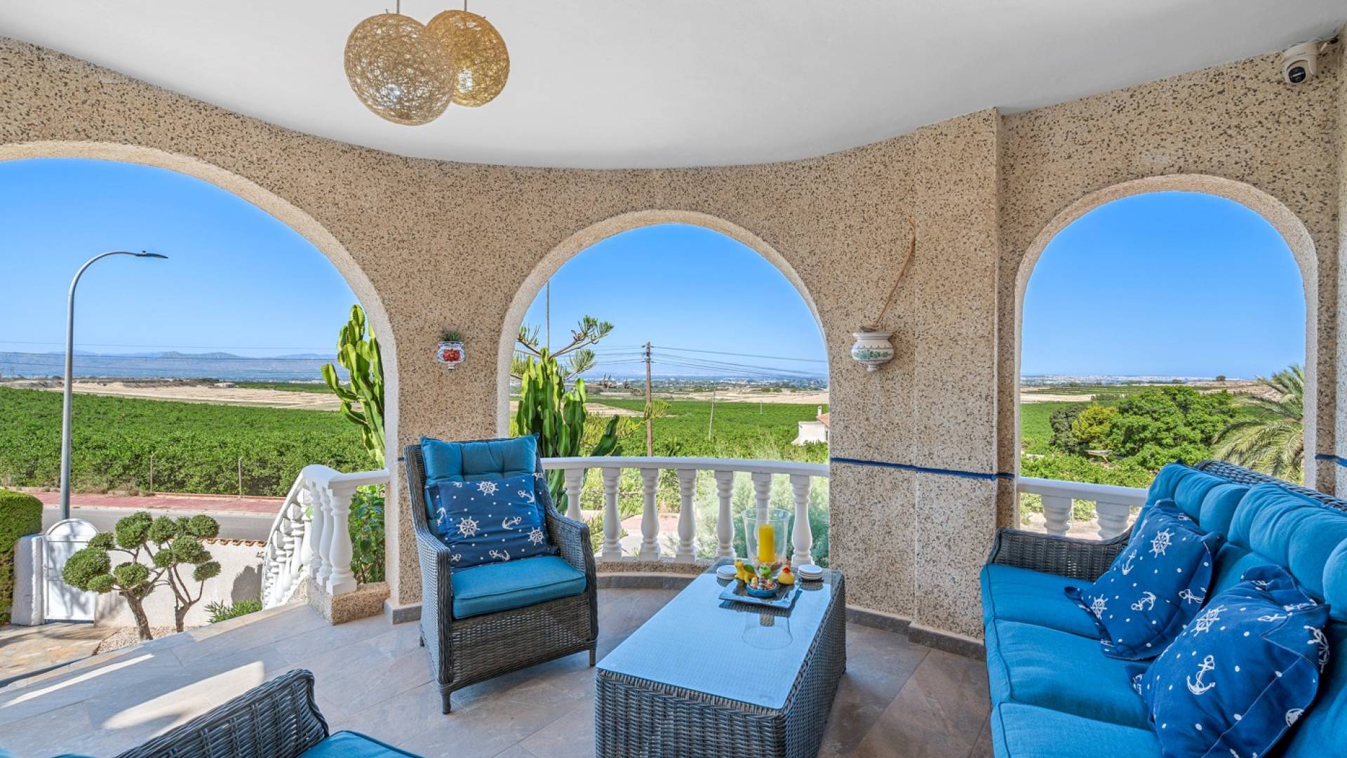 Geniet van eindeloze zonnige dagen in deze prachtige villa in Spaanse stijl, perfect gelegen in Almoradí, op slechts enkele minuten van het prestigieuze La Finca Golf Resort. Deze indrukwekkende villa met 5 slaapkamers biedt volop ruimte voor gezinsleven en om gasten te ontvangen, allemaal in een omgeving die privacy en rust garandeert. Het hoofdgebouw beschikt over 3 ruime slaapkamers met inbouwkasten, een volledig uitgeruste keuken en een royale woonkamer met een prachtige werkende open haard en een lichte eetruimte. Via een eigen ingang geeft het souterrain toegang tot een appartement met 2 extra slaapkamers, een grote woonkamer en een volledig uitgeruste keuken met veel opbergruimte, perfect om gasten te ontvangen en hun privacy te waarborgen. De garage is omgetoverd tot een gezellige speelruimte, ideaal om na het diner te ontspannen, terwijl een stijlvolle houten carport comfortabel plaats biedt aan twee auto’s. De villa wordt omringd door een grote, onderhoudsvriendelijke tuin, compleet met een eigen putting green om je golfvaardigheden te oefenen. Dankzij de zuidgerichte ligging en het ontbreken van directe buren geniet je hier van volledige privacy en adembenemende uitzichten. Het ruime, op het terras is de ideale plek om te ontspannen en spectaculaire zonsondergangen te bewonderen, terwijl het 8x4 m zwembad uitnodigt om tijdens warme dagen af te koelen. Op slechts enkele minuten van de Middellandse Zee is La Finca Golf een van de meest prestigieuze resorts aan de Costa Blanca. Met zijn 18-holes kampioenschapsgolfbaan, luxe hotel, spa, verfijnde gastronomie en levendige gemeenschap biedt het de perfecte combinatie van ontspanning en elegantie. Dit is een unieke kans laat ze niet aan je voorbijgaan! Boek vandaag nog een bezichtiging en ervaar deze uitzonderlijke woning zelf.