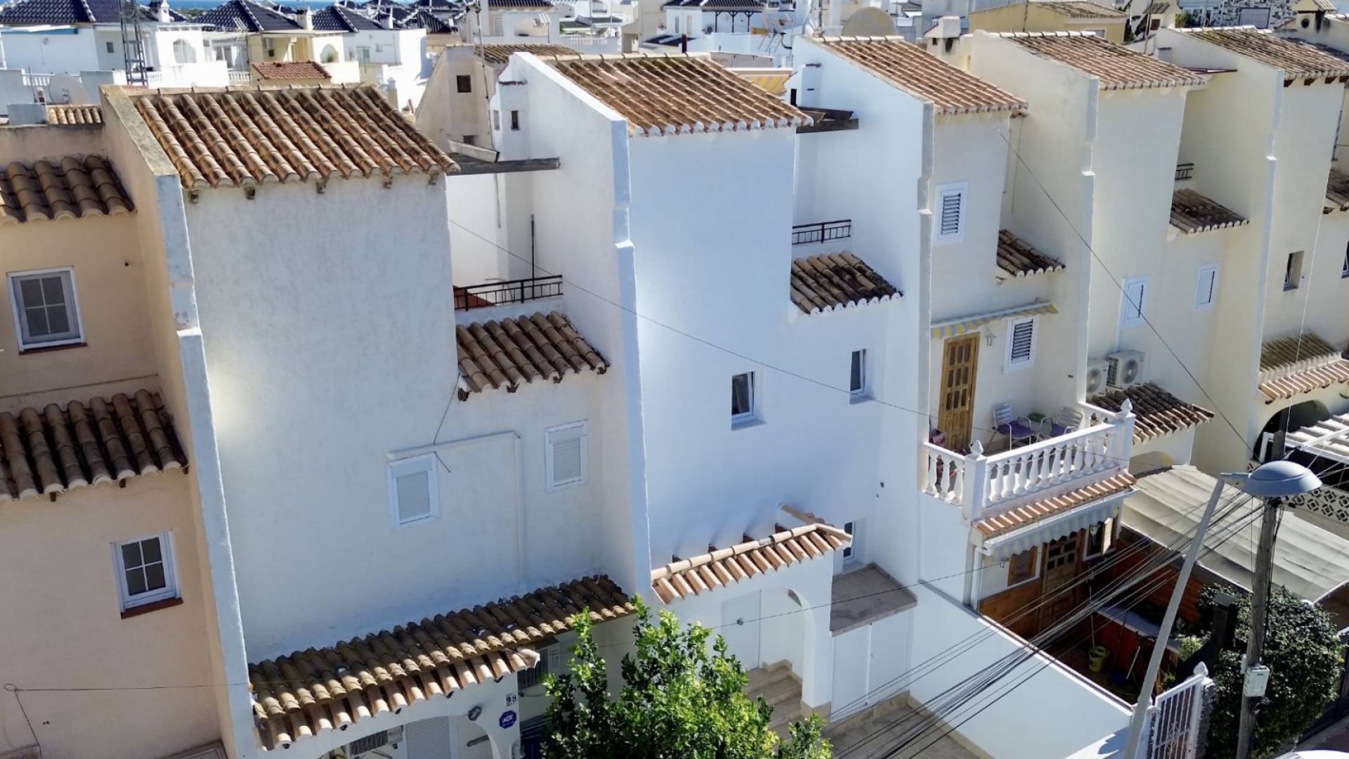 Deze gerenoveerde tussenwoning ligt in de populaire woonwijk Los Balcones – Los Altos del Edén in Torrevieja en biedt comfortabel wonen voor het hele gezin aan de Costa Blanca. De woning beschikt over drie slaapkamers en twee badkamers, met een praktische indeling en lichte ruimtes. Je geniet van twee privéterrassen, ideaal voor buitenleven en etentjes, en een balkon dat extra daglicht binnenlaat. De woning is oorspronkelijk gebouwd in 1983 en onlangs gemoderniseerd, waardoor je profiteert van een degelijke bouw en vernieuwde afwerking – instapklaar. Voor het comfort zijn er twee airco-units, en in het complex is een gemeenschappelijk zwembad aanwezig. Er is ook parkeergelegenheid binnen de residentie. Rustige ligging dicht bij supermarkten, restaurants, voorzieningen en op korte rijafstand van de stranden van Torrevieja en Orihuela Costa.