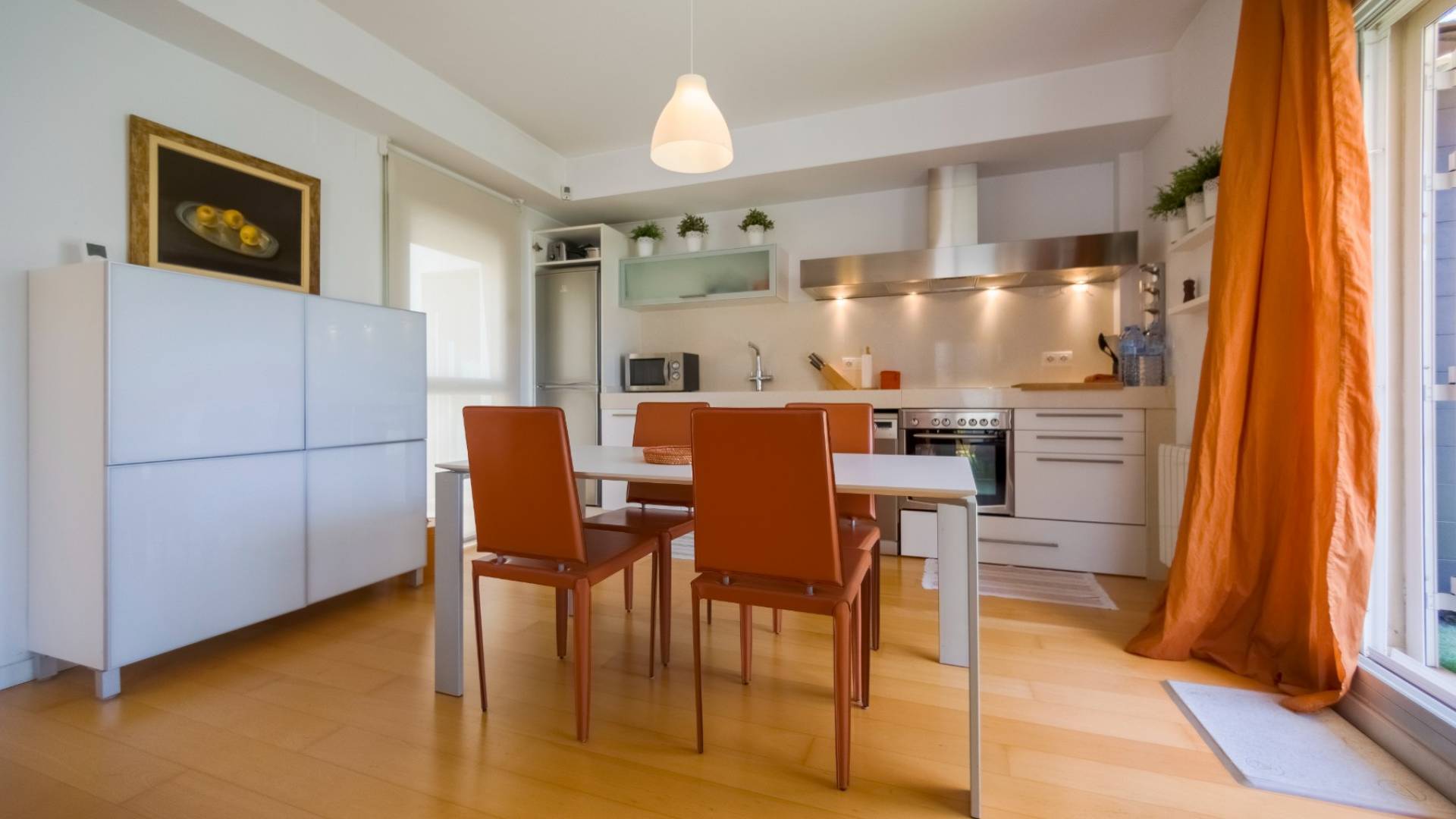 Interior carpentry is wood, aluminium exterior carpentry, all windows and sliding doors face the outside and it has its very well equipped security doors.