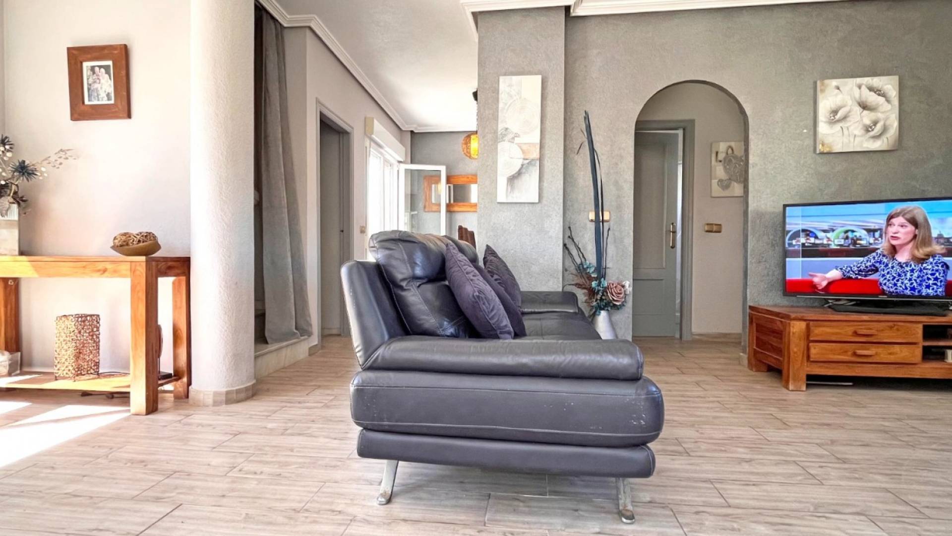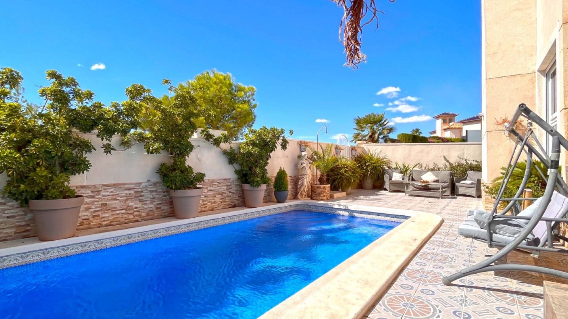 Deze prachtige vrijstaande villa met 4 slaapkamers en 3 badkamers ligt aan het einde van een rustige doodlopende straat, en biedt de perfecte combinatie van privacy en gemak, op slechts een paar minuten van Zenia Boulevard. De woning is ontworpen voor comfortabel gezinsleven en gastvrijheid, met flexibele ruimtes verdeeld over meerdere niveaus. Op de begane grond vind je een lichte, ruime woonkamer met eetgedeelte, een aparte volledig uitgeruste keuken en een moderne badkamer. Het glazen terras kijkt uit op het privézwembad en de tuin, waardoor het de ideale plek is om het hele jaar door van de buitenlucht te genieten. Op de tweede verdieping bevinden zich twee royale slaapkamers, elk met veel natuurlijk licht, evenals een familiebadkamer. Het dakterras biedt een spectaculair uitzicht op zee en is de ideale plek om te genieten van de mediterrane bries en het kustlandschap. Het souterrain beschikt over een volledig onafhankelijk appartement met twee slaapkamers, een badkamer, een woonkamer en een keuken. Met een eigen privé-ingang is deze ruimte perfect voor gasten, uitgebreide familie of als potentieel verhuurobject. De uitstekende locatie, dicht bij stranden, winkels en restaurants, gecombineerd met het doordachte ontwerp en het privézwembad, maken deze villa tot een uniek en veelzijdig huis aan de Costa Blanca.