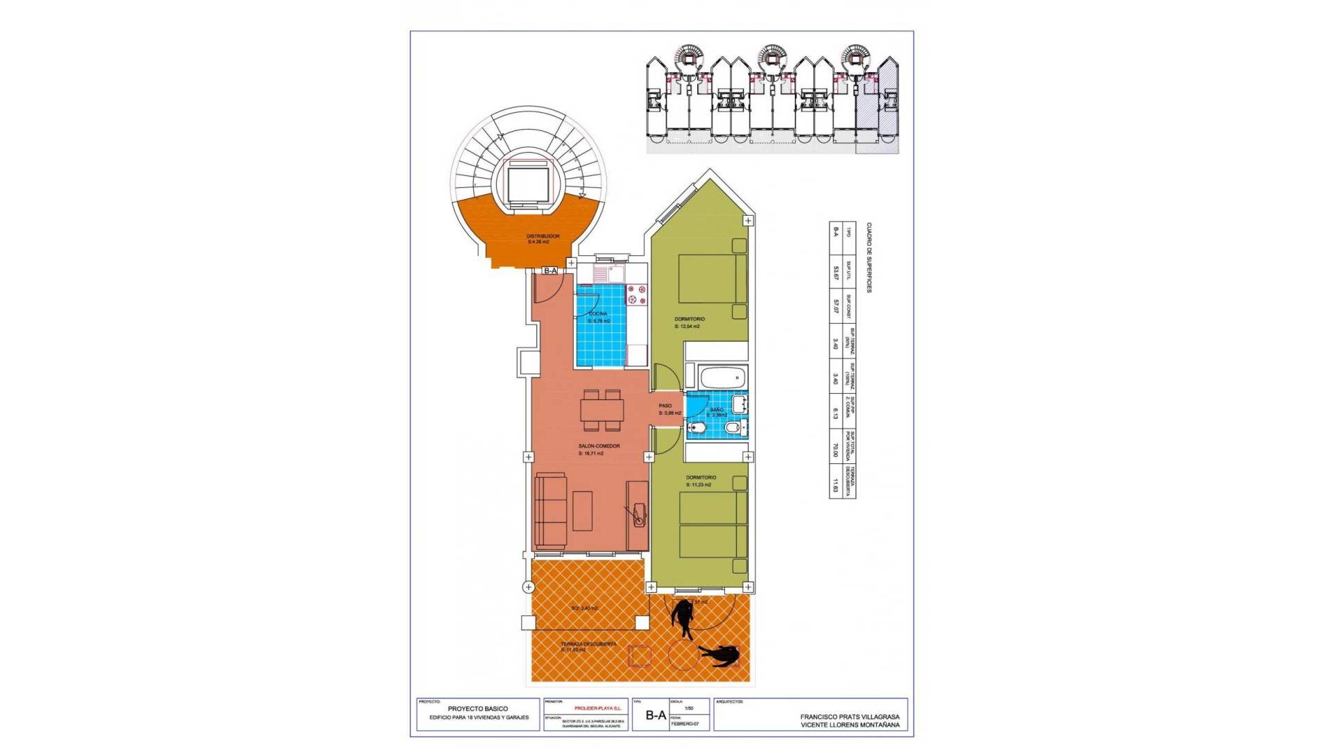 Stedelijk perceel van 2.144 m2 te koop met reeds uitgevoerde werkzaamheden in verschillende fasen. Gelegen in Sector ZO-3 (Los Secanos) van Guardamar del Segura. Het omvat projecten, werkvergunningen en de verschillende fasen van het werk dat al is uitgevoerd. Ontwikkeling voor 26 woningen met verschillende woningtypes; appartementen en herenhuizen. In het souterrain zouden 29 parkeerplaatsen en 10 bergingen komen. Privéwoning met gemeenschappelijk zwembad en tuinen in Guardamar del Segura (Alicante) op minder dan 1 km van het strand van Roqueta (Costa Blanca). De promotie bestaat uit twee werkfasen: * Fase I: 18 appartementachtige woningen op de begane grond + 2 verdiepingen. * Fase II: 8 woningen; 4 appartementen op de begane grond en 4 herenhuizen op de 1e verdieping. Residentieel met privé zwembad, tuinen en kelder voor 29 garages en 10 bergingen. Voorspelling van 5 liften (3 in Fase I en 2 in Fase II, met een route van de kelder naar het gemeenschappelijke solarium). Van de reeds uitgevoerde werkfasen heeft het: * Basis- en uitvoeringsprojecten. * Geotechnische studie. * Werkvergunningen. * Grondverzet en graafwerkzaamheden, * Drainage en waterdichting van de perimetermuur. * Opbouw fase I en II. * Gevelbekledingen op de begane grond. Prijs van de grond met reeds uitgevoerde vergunningen, projecten en werkfasen: € 1.800.000 Stedelijk perceel gelegen in de woonwijk Z.O.- 3 Los Secanos-sector, dicht bij voorzieningen en op minder dan 1 km van het strand van La Roqueta in Guardamar del Segura (Alicante).