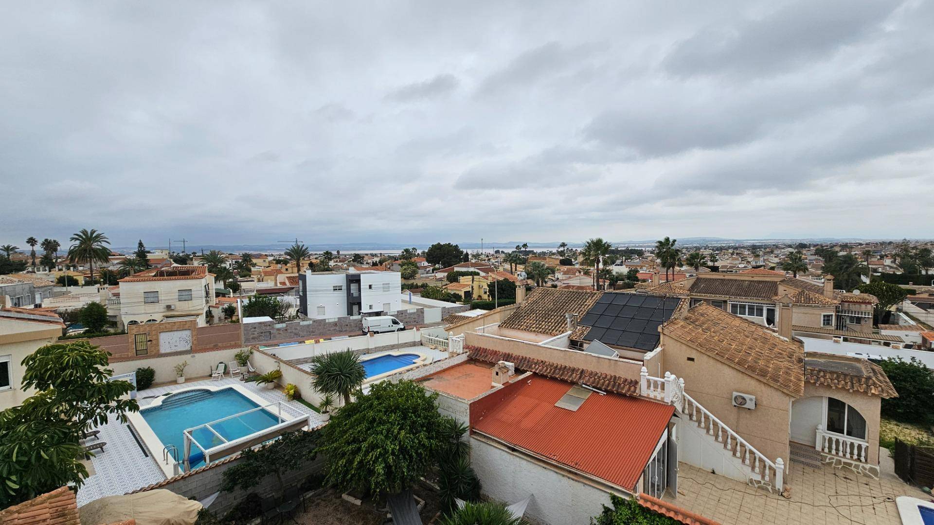 Ruim 3-slaapkamerhuis met 3 badkamers, gebouwd op een perceel van 420 m², met aparte garage, privézwembad en solarium. Het huis beschikt over: - Grote kantoorruimte voor werk of studie - Inloopkast in de hoofdslaapkamer - Gescheiden keuken met ruime bijkeuken en toegang tot het zwembad - Halfkelder – uitgeruste opslagruimte - Het huis ligt in een rustige villawijk in El Chaparral, Torrevieja, provincie Alicante, Spanje. Kenmerken van het huis: - Totale oppervlakte: 267 m² + garage met automatische poort - Bouwjaar: 2002 - Woonkamer: 25 m² - Slaapkamers: 3 aparte + kantoor op de tweede verdieping - Badkamers: 3, inclusief jacuzzi - Hoofdslaapkamer: met groot balkon en aparte inloopkast - Materialen & afwerking: marmeren trap met smeedijzeren leuning, vloerverwarming door het hele huis, airconditioning - Solarium: ruim met panoramisch uitzicht op de zoutmeren van Torrevieja - Voorzieningen: gasboiler voor vloerverwarming, gedeeltelijk ingebouwde apparaten en meubels Dit huis is perfect voor een gezin dat waarde hecht aan comfort, privacy en ruimte aan de zonnige Spaanse kust.