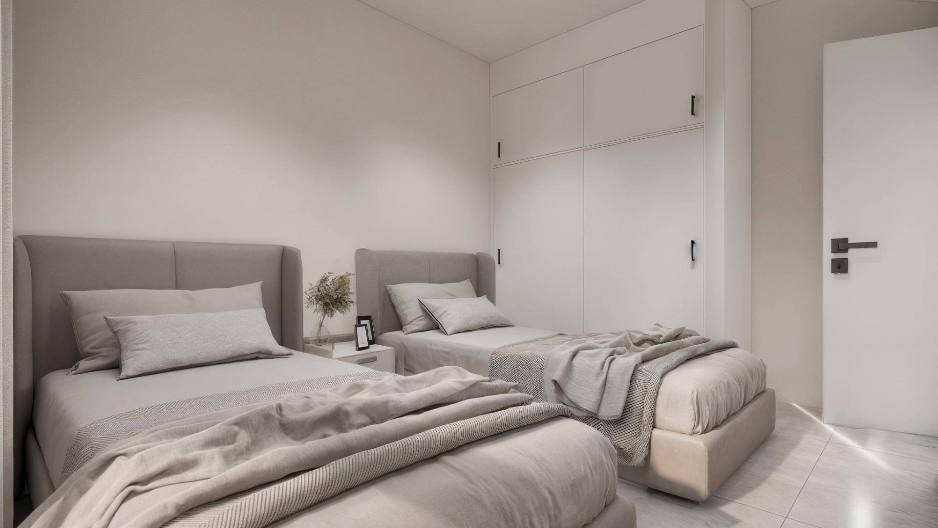 Moderne, nieuw gebouwde villa's in La Herrada Los Montesinos met privézwembad Exclusief woonproject in een rustige omgeving Deze exclusieve ontwikkeling van 16 moderne villa's, gelegen in de prestigieuze woonwijk La Herrada in Los Montesinos, biedt privacy, comfort en een uitstekende levenskwaliteit. La Herrada staat bekend om zijn rustige woonomgeving, de nabijheid van dagelijkse voorzieningen en de bevoorrechte ligging tussen de beroemde zoutvlaktes van Torrevieja en La Mata. Het is een ideale plek voor wie op zoek is naar een ontspannen en gezonde mediterrane levensstijl in het zuiden van de Costa Blanca. Eigentijds ontwerp met geoptimaliseerde binnenruimtes Elke villa heeft 130 m² goed verdeelde woonruimte verdeeld over twee verdiepingen, ontworpen om natuurlijk licht en functionaliteit te maximaliseren. De woningen zijn gebouwd op percelen van 250 m² en bieden ruime buitenruimtes die perfect zijn om te zonnebaden, gasten te ontvangen of te ontspannen bij het privézwembad. Comfortabele indeling over twee verdiepingen De begane grond beschikt over een open woonkamer met een volledig geïntegreerde keuken en directe toegang tot de tuin en het zwembad. Op deze verdieping bevinden zich ook twee slaapkamers, een complete badkamer en een praktische wasruimte. Op de bovenverdieping zijn er twee ruime slaapkamers, elk met een eigen badkamer, waarvan één en-suite. Beide slaapkamers hebben toegang tot een open privéterras van 28 m². Voor wie nog meer buitenruimte wil, is er tegen meerprijs een optioneel solarium op het dak beschikbaar. Hoogwaardige afwerking en moderne voorzieningen De villa's zijn voorzien van hoogwaardige afwerkingen, zoals badkamermeubilair, spiegels, doucheschermen en vloerverwarming in alle badkamers. Er is een voorinstallatie voor airconditioning, een gemotoriseerde toegangspoort voor voertuigen, een eigen parkeerplaats op het perceel en een afgesloten toegang tot de woonwijk via een eigen interne weg. Toplocatie dicht bij belangrijke voorzieningen en attracties Stranden van Guardamar en Torrevieja op 9 km afstand La Marquesa Golf, La Finca Golf en Vistabella Golf op minder dan 5 km afstand Luchthaven Alicante op 29 km afstand Natuurparken, zoutvlaktes, fietsroutes en wandelpaden in de omgeving Comfortabel wonen in het hart van de Costa Blanca Deze nieuw gebouwde villa's in Los Montesinos bieden de perfecte combinatie van modern comfort, een natuurlijke omgeving en uitstekende bereikbaarheid. Of u nu op zoek bent naar een permanente woning of een vakantiehuis, dit project biedt alles wat u nodig heeft om te genieten van een rustige en comfortabele mediterrane levensstijl. Neem vandaag nog contact met ons op om een bezichtiging te regelen en uw nieuwe huis in La Herrada te bemachtigen.