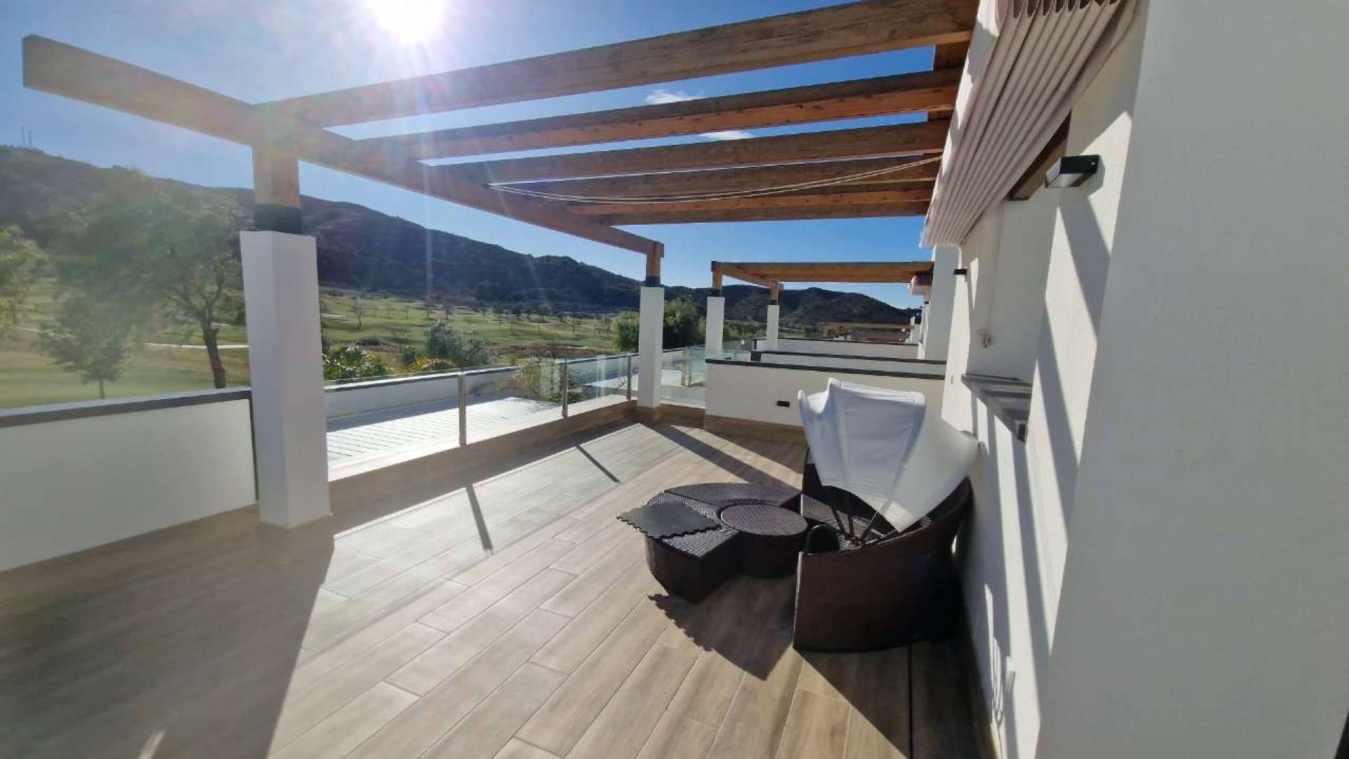 Ontdek deze prachtige villa in wederverkoop, gelegen op het exclusieve golfresort Font del Llop in Monforte del Cid. Een unieke kans om te wonen op een toplocatie met adembenemend uitzicht over de golfbaan en de omliggende natuur. Deze stijlvolle villa beschikt over 3 ruime slaapkamers en 3 moderne badkamers en werd ontworpen met comfort, licht en ruimte als prioriteit. De woning biedt meerdere terrassen, een zonnig solarium en een mooie tuin met privézwembad, perfect om het hele jaar door te genieten van het mediterrane buitenleven. Dankzij de eerste lijn golf ligging geniet u dagelijks van een prachtig open zicht op het groen en een bijzonder rustige woonomgeving. De villa wordt volledig bemeubeld verkocht, waardoor ze onmiddellijk instapklaar is. Onder de woning bevindt zich bovendien een zeer ruime kelderverdieping die volledig naar eigen wens kan worden ingericht: extra slaapkamers, fitnessruimte, hobbyruimte, kantoor of ontspanningsruimte… de mogelijkheden zijn eindeloos. Font del Llop is een exclusief en verzorgd golfresort, ideaal gelegen in het hart van de provincie Alicante. De internationale luchthaven van Alicante en het AVE-treinstation bevinden zich op slechts 20 minuten rijden. Ook de charmante steden Alicante en Elche zijn vlot bereikbaar en absoluut een bezoek waard. Voor liefhebbers van zon en zee liggen de prachtige, natuurlijke stranden van Arenales, Alicante en Urbanova op korte afstand. Font del Llop staat bekend als een gerenommeerde golfbaan waar het een droom is om het hele jaar door te wonen en te genieten van het zachte mediterrane klimaat, rust en een hoogwaardige levensstijl. Een uitzonderlijke woning voor wie ruimte, comfort en een unieke ligging aan de golf zoekt. Neem gerust contact met ons op voor meer informatie of een bezichtiging. Prijs onder voorbehoud van beschikbaarheid.