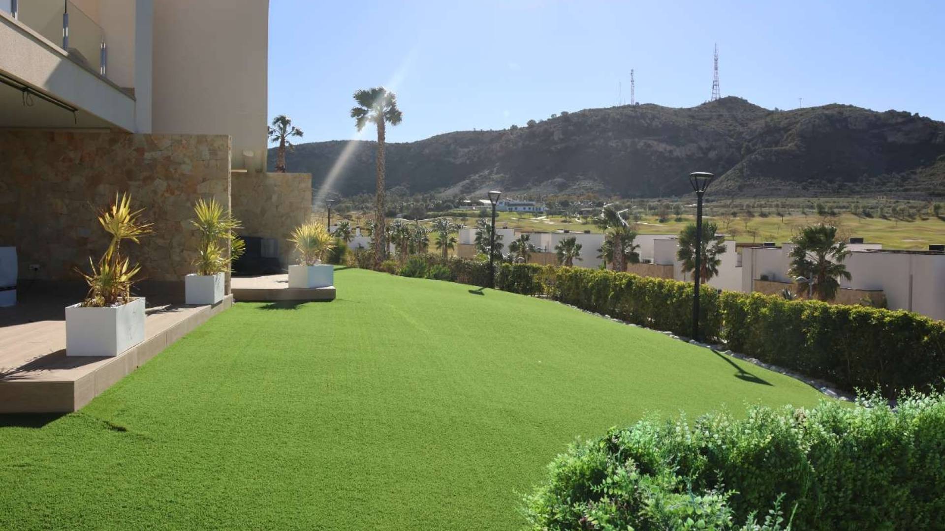 Ontdek dit prachtige gelijkvloers appartement in wederverkoop, gelegen op het exclusieve Font del Llop Golfresort in Monforte del Cid — een unieke kans om te verblijven op een toplocatie aan de Costa Blanca. Dit stijlvolle appartement beschikt over 3 slaapkamers en 2 moderne badkamers en werd ontworpen met oog voor comfort, licht en functionaliteit. De open leefruimte sluit naadloos aan op een ruim terras en een mooie tuin, waar u het hele jaar door kunt genieten van het zonnige mediterrane klimaat. Vanop het terras geniet u van een prachtig wijds zicht op de groene omgeving en het omliggende landschap. De open ligging zorgt voor een gevoel van ruimte, rust en privacy — een ideale plek om ’s ochtends te ontbijten in de zon of ’s avonds te ontspannen met zicht op de ondergaande zon. Het appartement maakt deel uit van een verzorgde residentie met prachtige gemeenschappelijke tuinen en een groot zwembad, ideaal om te ontspannen en te genieten van het buitenleven in een veilige en aangename omgeving. Dankzij de gelijkvloerse ligging geniet u bovendien van extra comfort en directe toegang tot de tuin en buitenruimtes. Font del Llop is een exclusief en geliefd golfresort, omringd door natuur en met een indrukwekkende 18-holes golfbaan van topkwaliteit. Het gezellige clubhouse met restaurant, terras, kleedkamers en ontspanningsruimtes vormt het sociale hart van het resort en biedt een warme, internationale sfeer. Hier combineert u rust en natuur met sport, gastronomie en levenskwaliteit. De ligging is ideaal: op slechts 20 minuten van de luchthaven van Alicante, 20 minuten van de stranden en dichtbij charmante dorpen en alle voorzieningen. Dit maakt het appartement perfect als permanente woning of tweede verblijf. Een unieke kans om te wonen in een exclusieve en groene omgeving, waar comfort, natuur en lifestyle perfect samenkomen. Prijs onder voorbehoud van beschikbaarheid. Neem contact met ons op voor meer informatie.