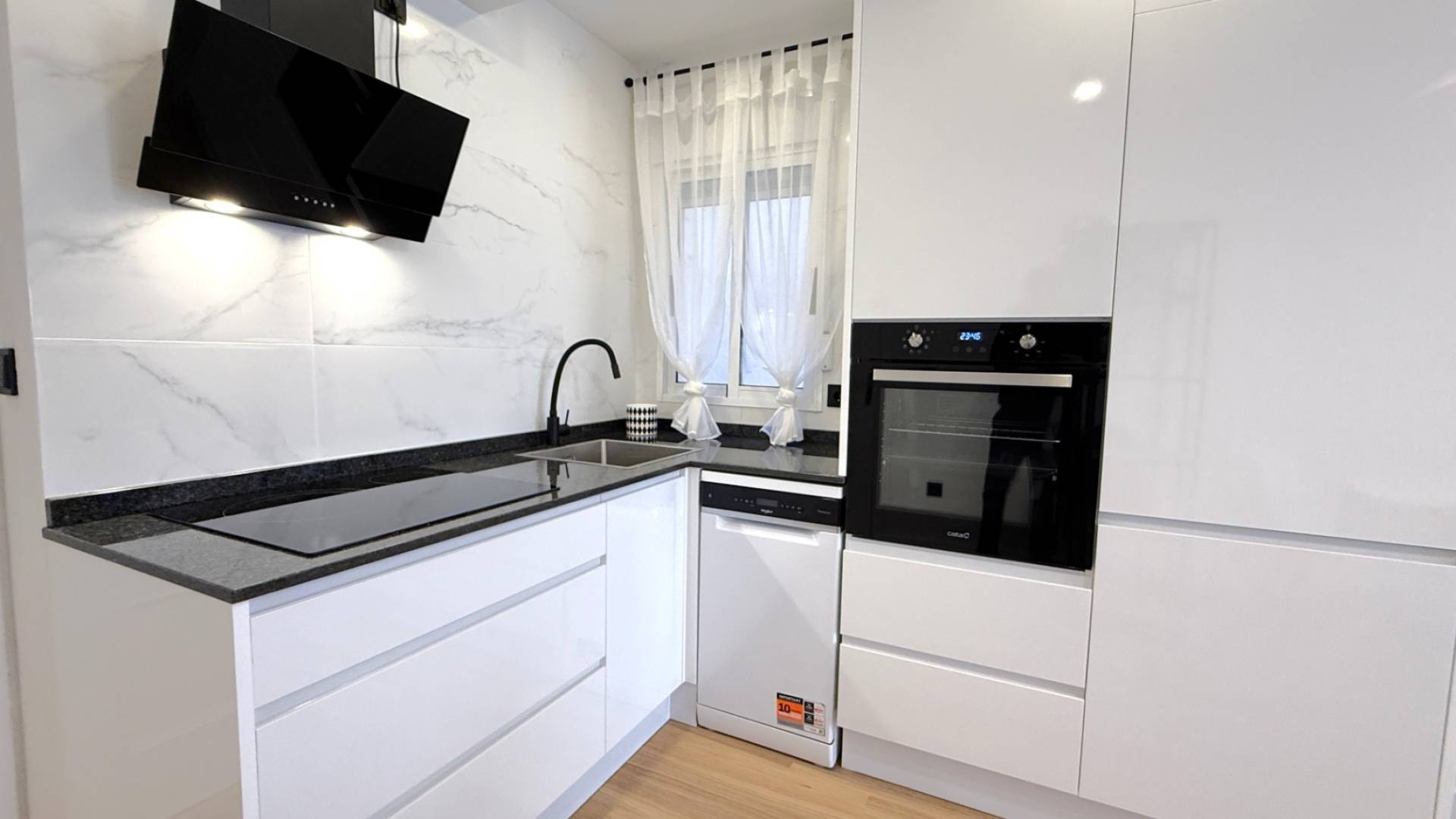 Ontdek dit prachtig volledig gerenoveerde appartement met 2 slaapkamers en 1 badkamer, gelegen aan de Calle Villa Madrid in Torrevieja, op slechts een korte loopafstand van het stadscentrum en de bruisende jachthaven. Recent van top tot teen gerenoveerd, combineert dit moderne huis comfort, stijl en gemak. Het appartement beschikt over een heldere en ruime open woonkamer met vernieuwde vloeren, frisse verf en hedendaagse afwerkingen door het hele huis. De nieuw gemonteerde keuken bevat strakke kasten en moderne apparatuur, perfect voor dagelijks gebruik of het ontvangen van gasten. Beide slaapkamers bieden goed natuurlijk licht en comfortabele indelingen, terwijl de stijlvolle, volledig gerenoveerde badkamer kwaliteitsarmaturen en een schone, elegante uitstraling heeft. Gelegen in een goed onderhouden gebouw met gemakkelijke toegang tot lokale voorzieningen, supermarkten, cafés en openbaar vervoer, is deze woning ideaal als permanente woning, vakantiehuis of huurinvestering. Klaar om in te trekken en ontworpen met oog voor detail, is het een fantastische kans in een van de meest praktische locaties van Torrevieja.