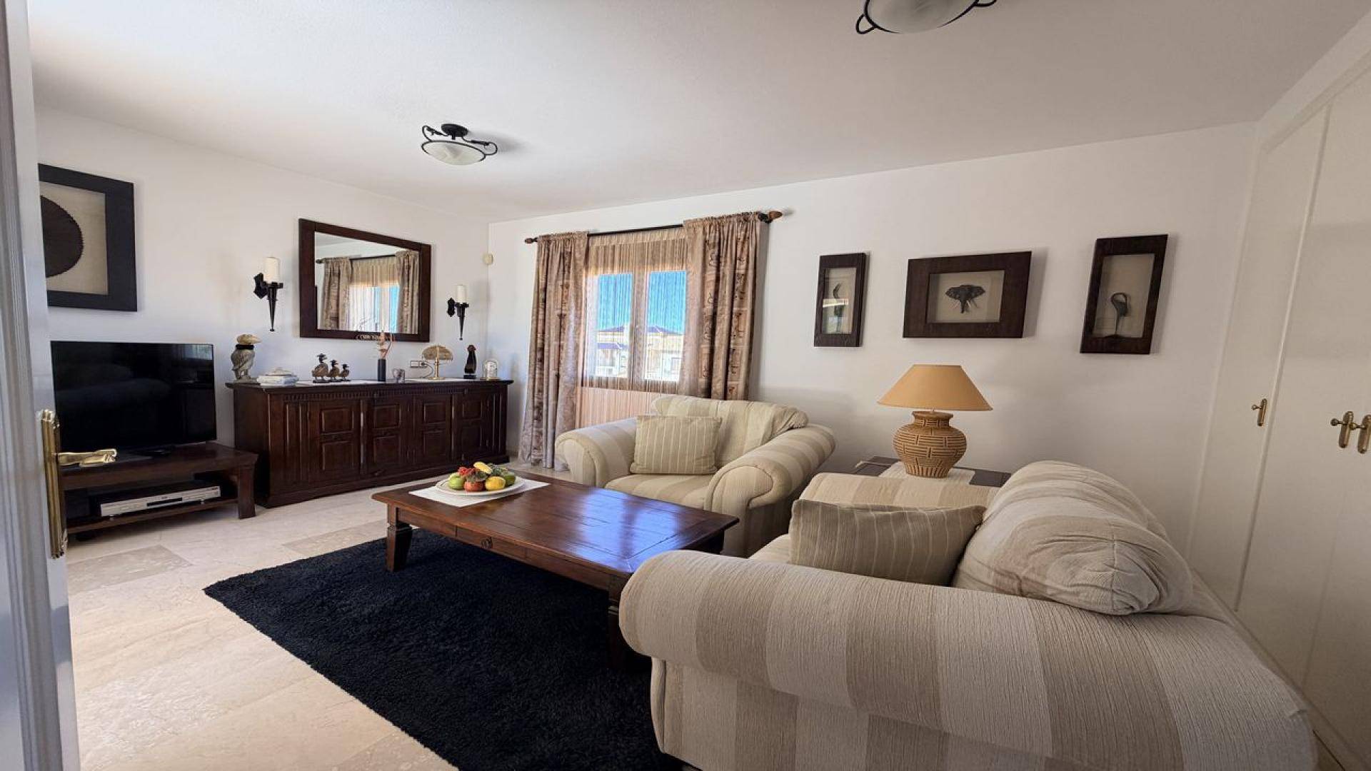 Hallo, wilt u iets bijzonders kopen aan de zuidelijke Costa Blanca? Dan is deze woning perfect voor u!Dit luxe duplex appartement werd door de projectontwikkelaar slechts twee keer gebouwd binnen het prestigieuze Las Ramblas Golf Resort, op een eerstelijns locatie, in een privé wooncomplex in traditionele Spaanse stijl.Las Ramblas Golf Resort is een exclusieve urbanisatie rond een prachtig 18-holes golfbaan, gelegen in een mooi heuvelachtig landschap met meren, mediterraan bos en fruitboomgaarden. Het biedt een unieke, rustige en toch centrale ligging. Het clubhuis met eigen restaurant ligt op slechts een paar stappen afstand. Alle exclusieve zwembaden en goed onderhouden groene zones zijn beschikbaar voor de bewoners.Door de beperkte beschikbaarheid van bouwgrond op de eerste lijn is deze woning sterk aan te bevelen als een waardevaste investering met een uitstekend waardestijgingspotentieel.De exclusieve ligging, de hoogwaardige bouwkwaliteit, ivoorkleurige marmeren vloeren in de hele woning (en ook op de badkamermuren), granieten werkbladen en wandafwerking in de elegante ingerichte keuken, evenals duurzaam steengoed op de terrassen, benadrukken de hoge waarde van deze woning. Dit maakt het niet alleen aantrekkelijk voor eigen gebruik, maar ook voor investeerders, aangezien het winstgevend verhuurd kan worden.Dankzij het stabiele klimaat kunt u het hele jaar door genieten van deze droomwoning, met meer dan 300 zonnige dagen, op de privéterrassen zonder inkijk. Ervaar de gezonde mediterrane levensstijl en sluit de dag ontspannen af met tapas en een glas wijn.De privacy op de bovenste verdieping, waar geen buren zijn, geeft u het gevoel in een vrijstaande woning te wonen, doordat de verschillende niveaus een natuurlijke scheiding van de leefruimtes mogelijk maken.Dankzij de uitstekende verbindingen met de luchthavens van Alicante en Murcia vindt u gemakkelijk directe vluchten vanuit uw thuisland.De witte zandstranden van Cabo Roig, La Zenia en Campoamor liggen op slechts 3 km afstand, evenals het populaire winkelcentrum “Zenia Boulevard”.Met deze woning bezit u een uniek huis zonder enige verplichting tot tuinonderhoud. U woont zelfstandig, hoog gelegen, zonder directe aangrenzende muren met buren.Daarnaast beschikt deze uitzonderlijke woning over een ruime privé ondergrondse parkeerplaats met een extra berging.Heeft dit uw interesse gewekt? Maak dan vandaag nog een afspraak voor een bezichtiging, want uw gevoel zegt meer dan duizend woorden!