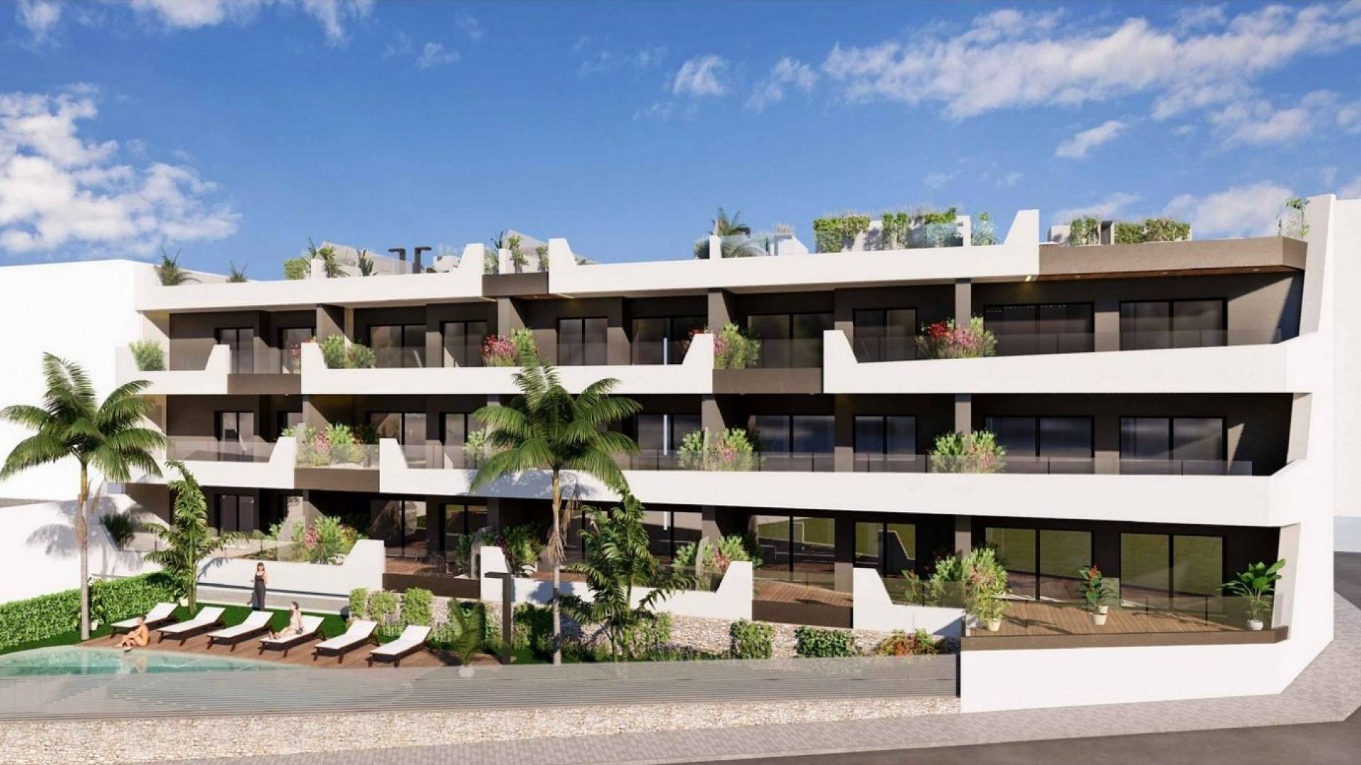 NIEUWBOUW APPARTEMENTEN IN BENIJOFAR Nieuwbouw residentieel in de rustige omgeving van Benijofar . Residentieel bestaande uit 15 woningen, 5 per verdieping, met 2 of 3 slaapkamers en 2 badkamers. De penthouses hebben ook een groot prive solarium van 75,00 vierkante meter met een toilet en pre-installatie voor een keuken, waar u kunt genieten van de prachtige zomer zonsondergangen. Daarnaast heeft de residentie een grote groene zone met een zwembad voor alle eigenaren, evenals parkeergelegenheid en berging. Benijofar is een mooi dorp met een charmante kerk en alle diensten zoals supermarkten, apotheken, banken, restaurants en natuurpark gelegen zeer dicht bij de villa's. Er zijn verschillende golfbanen in de buurt evenals waterparken in het nabijgelegen Rojales en Torrevieja. De beste stranden van Guardamar liggen op slechts 10 minuten rijden met de auto met meer dan 11 km aan witte zandduinen en kristalhelder water. Benijófar ligt op een paar minuten van de N-332 en de AP-7. Slechts 30 minuten van de luchthaven van Alicante, 10 minuten van de stranden van Guardamar en Torrevieja.