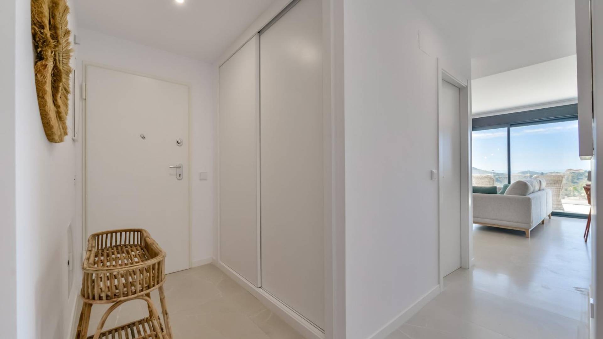 NYBYGG LUKSUS BOLIGKOMPLEKS MED HAVUTSIKT I FINESTRAT Nybygg Luksus boligkompleks med bungalowleiligheter, duplekser og toppleiligheter i Finestrat.Vakre leiligheter har 3 soverom 2 bad, åpen kjøkkenløsning med stue, garderober og terrasse. Hver eiendom har privat parkeringsplass og bod. Et kompleks med store fellesarealer: -Evighetsbasseng - Padlebaner -Dekket oppvarmet basseng - Gym -Møterom og felles arbeid -En stor gang- og sykkelvei som går gjennom alle fellesarealene. -Store vegetasjonsmasser Denne utviklingen har en perfekt beliggenhet i en naturlig enklave på Costa Blanca og tilbyr en utrolig utsikt over Benidorms silhuett, Finestrat-bukten og El Puig Campana. Benidorm ligger bare en fem-minutters kjøretur fra eiendommene og tilbyr alle tjenestene du trenger, inkludert butikker, barer, restauranter, supermarkeder, banker, apotek og flere private internasjonale skoler. Nær strendene i Levante, Poniente og Cala de Finestrat, med mer enn 6 km i lengde som er blant de beste i Europa tildelt av EU med blå flagg. Alle fritidstjenester som fornøyelsesparkene Aqua Natura, Terra Mítica, Terra Natura, Aqualandia og Mundomar, Sierra Cortina og Villaitana golfbaner, fotturer og klatring i Puig Campana en uforlignelig natur eller nyte nautisk sport. Avstand til sjøen 4 km, til flyplassen 26 km og til golfbanen 1 km. Komplekset ligger 40 minutter fra Alicante flyplass.