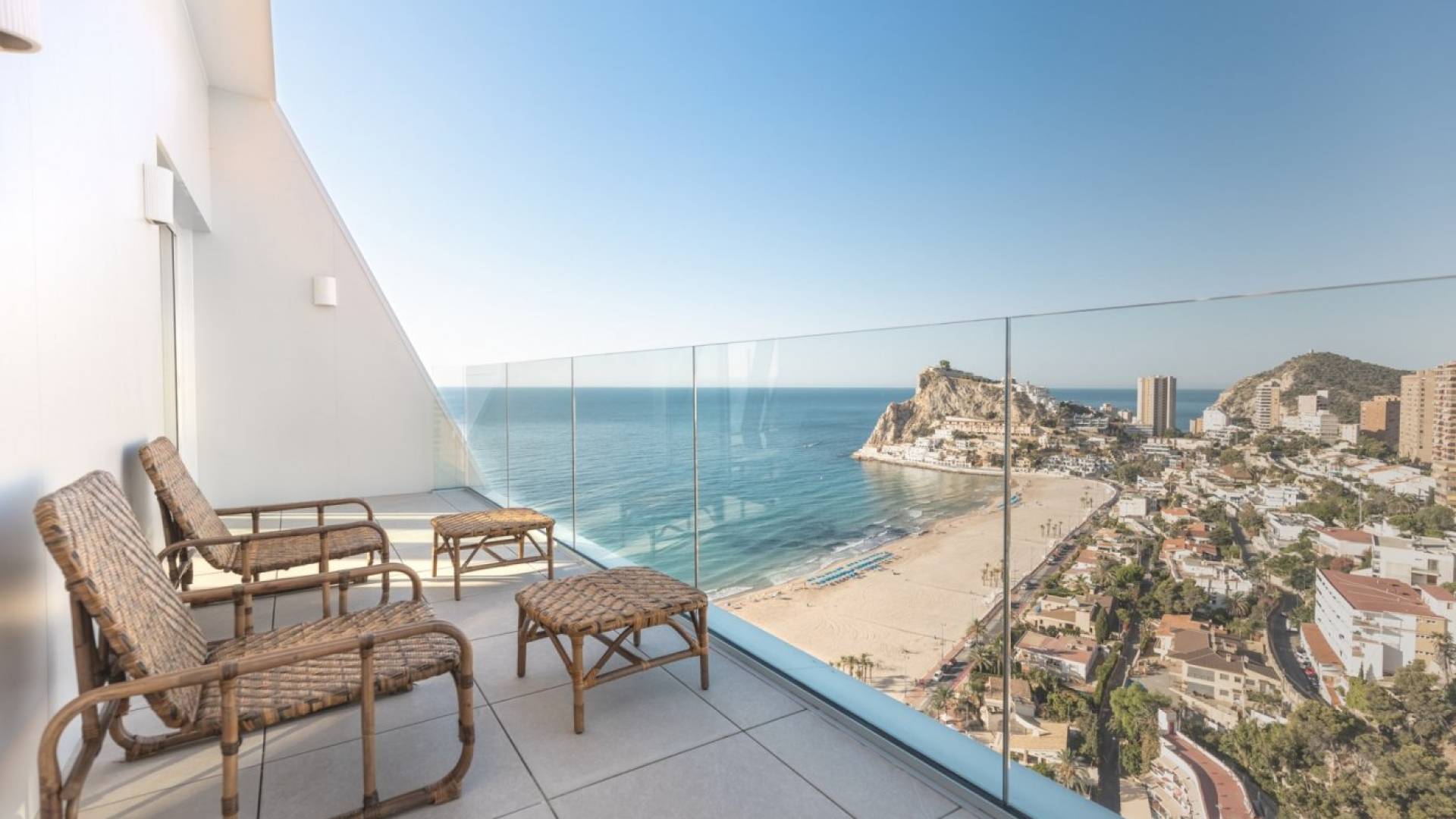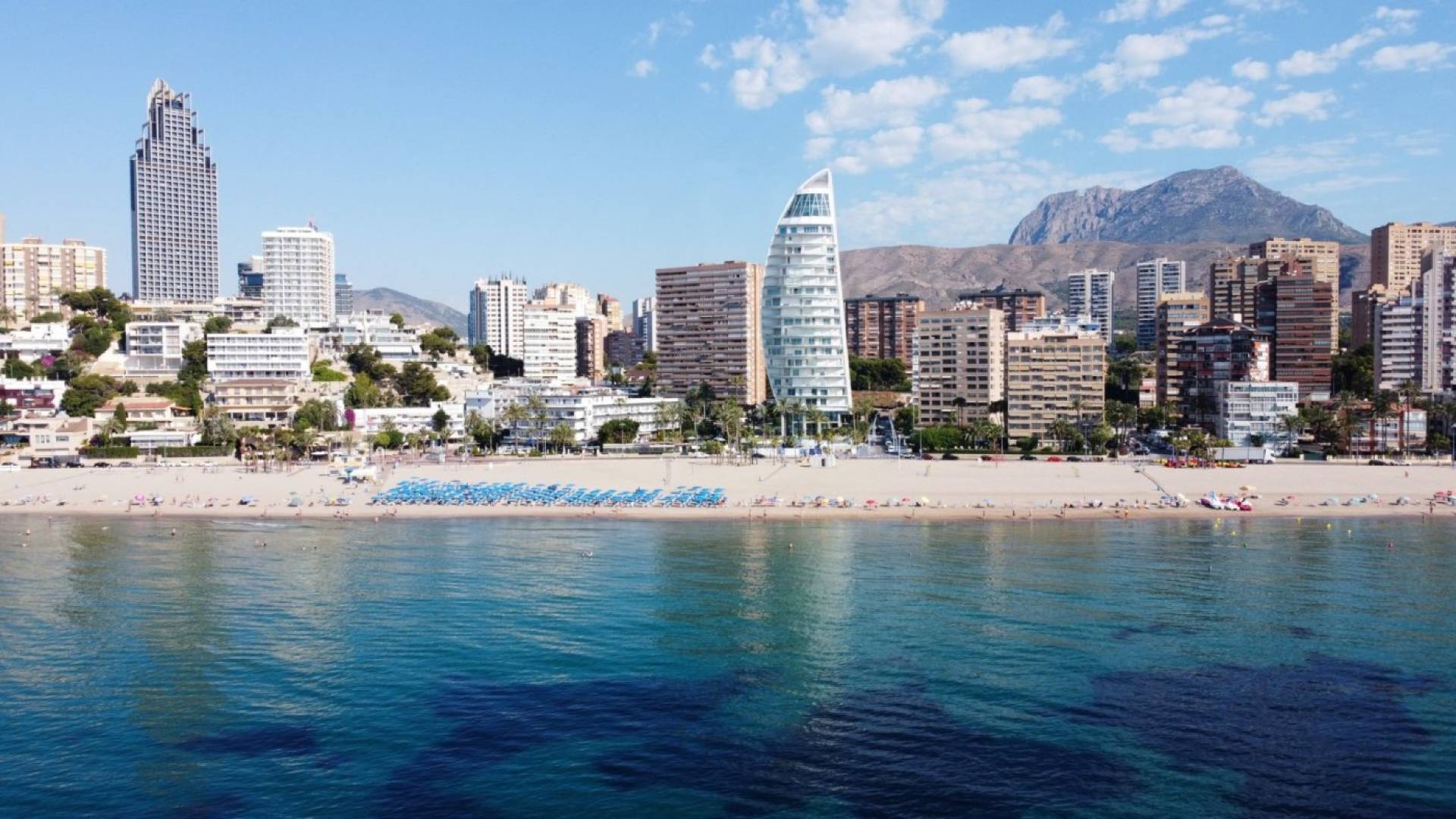 LUKSUS SEAFRONT LEILIGHETER I BENIDORM Unik nybygget Luxury Key Ready-bolig på Poniente-stranden, Benidorm. Luksusbolig med unik design og kvaliteter, består av 39 boliger med 2, 3 og 4 soverom fordelt på 20 etasjer. Alle leilighetene har store terrasser med fantastisk havutsikt, underjordisk parkeringsplass og bod. Leiligheter som ligger ved siden av det historiske Gran Hotel Delfín, i en av de mest privilegerte enklavene i Middelhavet: første linje på Benidorms Poniente-strand. Med et spektakulært design, skaper en effekt av stor letthet, og prioriterer energieffektivitet og bærekraft. Bygningen ligger ikke på kanten av havet som de fleste bygninger i Benidorm, men er tilbaketrukket for å skape en stor vegetabilsk plattform som sammen med det store evighetsbassenget klarer å smelte sammen med horisonten og skape et stort uendelig rom med Middelhavet. Designet og konstruksjonen er fokusert på en helt bærekraftig livsstil som er forpliktet til maksimal energieffektivitet. All denne innsatsen gjør at denne boligen kan oppnå "LEED Gold"-sertifiseringen utstedt av United States Green Building Council. Den har et veldig høyt nivå av finish med et nøye utvalg av materialer, et evighetsbasseng med et overflateareal på 350m2, over gatenivå, for å nyte uforstyrret utsikt over havet samtidig som du oppnår større privatliv. Eierne vil også ha treningsstudio, paddle-tennisbane, oppvarmet svømmebasseng med Social Club i etasjene 19 og 20, hagearealer med mer enn 3000 m2. Benidorm ligger i sentrum av La Marina Baixa-regionen, og er det populære spanske feriestedet Benidorm, et av de viktigste turistmålene langs Costa Blanca. Dens utmerkede strender, bredt utvalg av overnattingssteder, restauranter og mange fritidsaktiviteter. Benidorm byr på uendelige muligheter: fra å ta en spasertur langs strandpromenaden, bade i det krystallklare vannet, vannsport, en båtutflukt til øya Tabarca, eller en vandring gjennom Benidorms historiske kvarter, som ligger på en odde, er gamlebyen i stor kontrast til de brede avenyene i den viktigste turistbyen. Komplett med sine fine sandstrender, krystallklare vann, privilegerte klima og flott infrastruktur har alle gitt Benidorm denne regionen – også utstyrt med en flott infrastruktur av høykvalitetstjenester – dens velfortjente berømmelse. Det er mange mesterskapsbaner i og rundt Benidorm som tilbyr en god utfordring for både seriøse og uformelle golfspillere. Alicante flyplass ligger 60 km unna.
