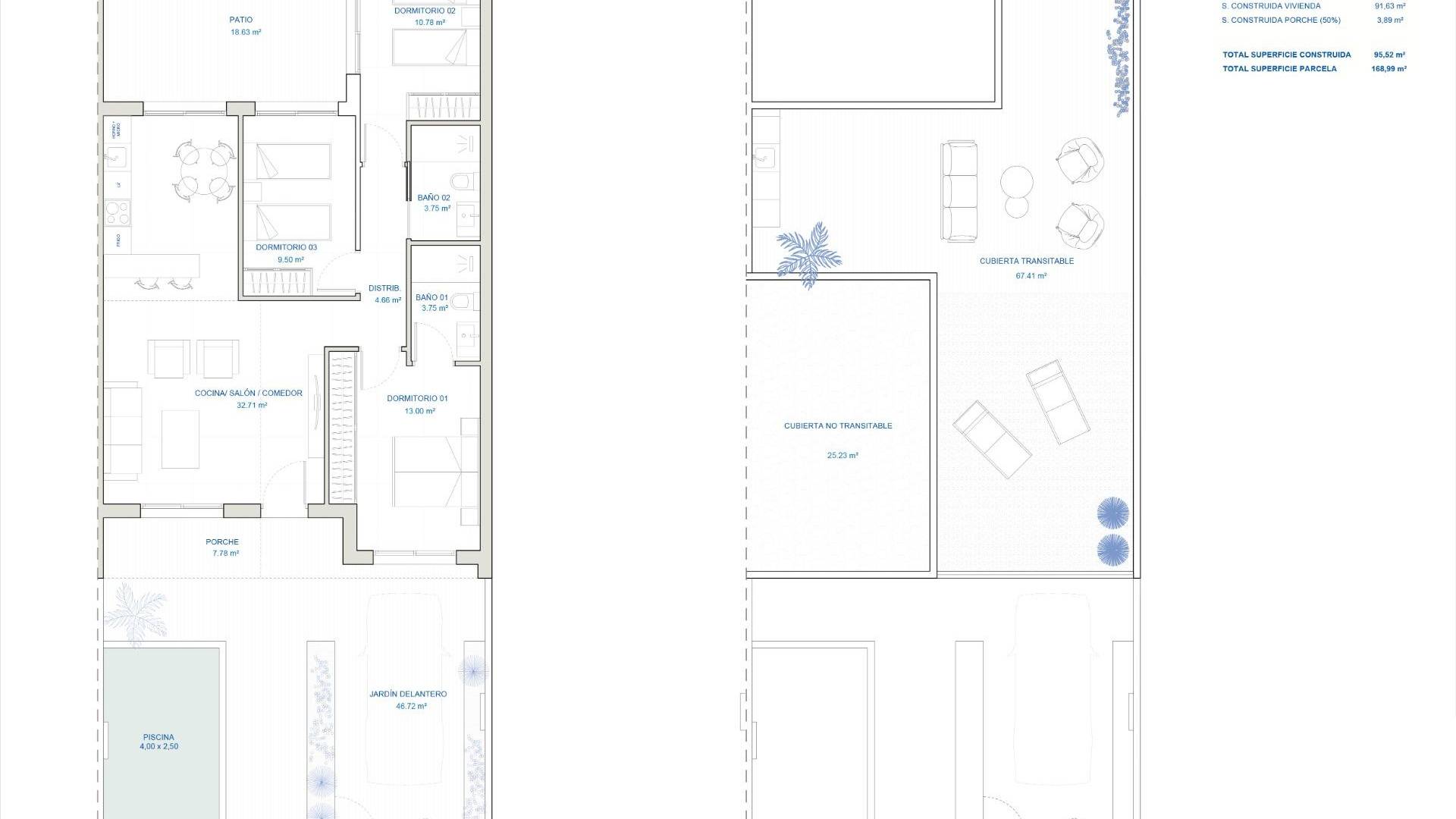 NYBYGDE REKKEHUS I BALSICAS Nybygget storslått kompleks opprinnelig bestående av 3 rekkehus på ett plan, hvert med sitt eget private basseng. Alle eiendommene er i første etasje, med terrasseområde og et romslig solarium, som gjør det mulig å nyte sollys hele året. Det er2 rekkehus med 2 soverom, 2 bad og 1 rekkehus med 3 soverom, 2 bad. De er eksepsjonelle egenskaper med høye kvaliteter, som forhøyet stuetak og integrert vannfall i bassenget. Balsicas er en blomstrende by med mange barer, restauranter og butikker og har utmerkede offentlige transportforbindelser. Balsicas sentralstasjon ligger en 10-minutters spasertur fra denne eiendommen, og gir deg enkel tilgang til Murcia og Cartagena. Strendene i Mar Menor ligger en 15-minutters kjøretur unna, og flyplassene i Corvera og Alicante er 20 minutter og 1 time unna.